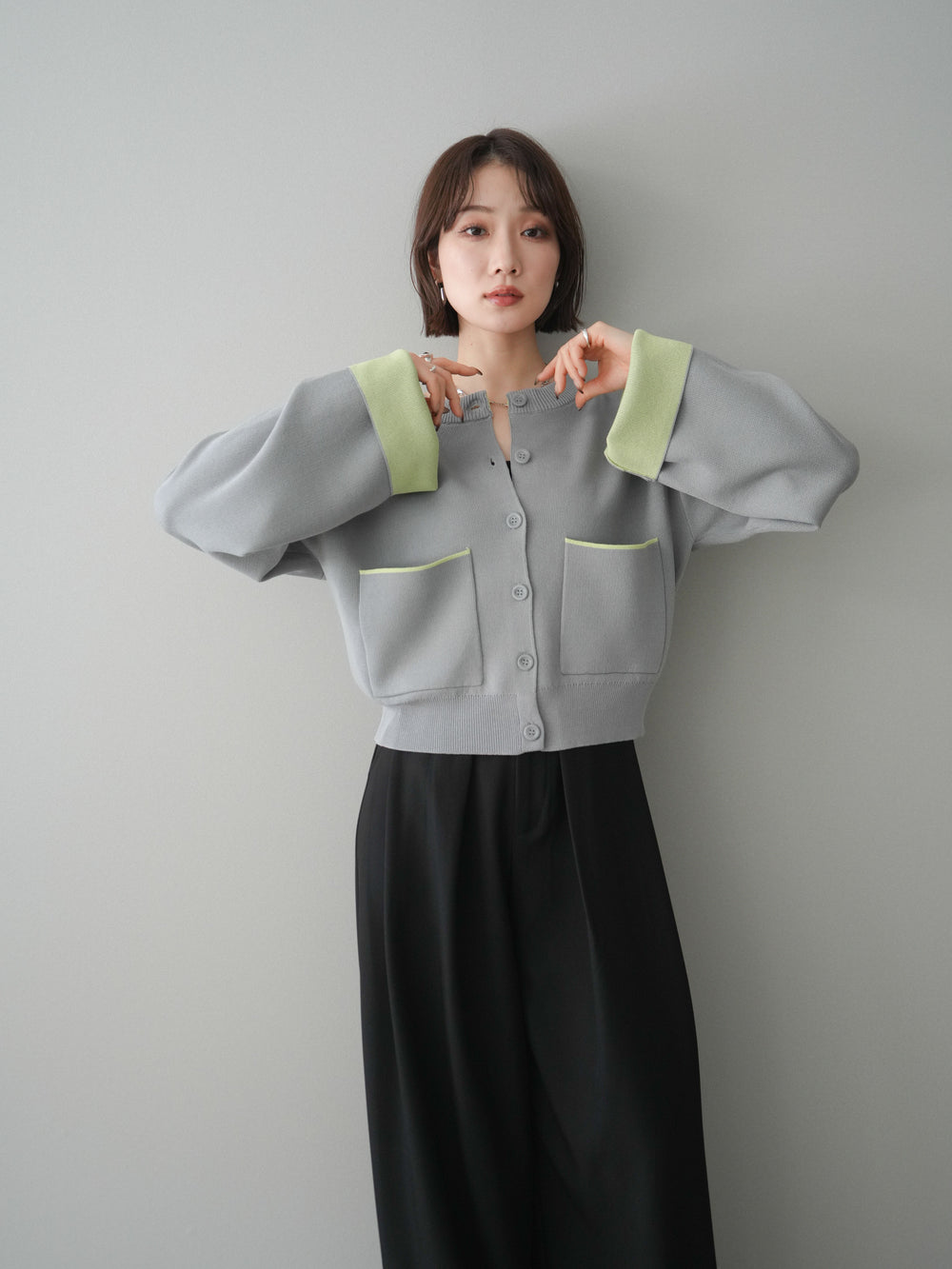 [予約]配色レイヤードカットリブカーディガン/lightgreen