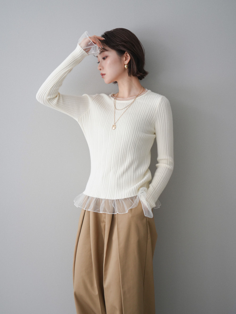 [予約]チュールレイヤードリブニットトップス/ivory
