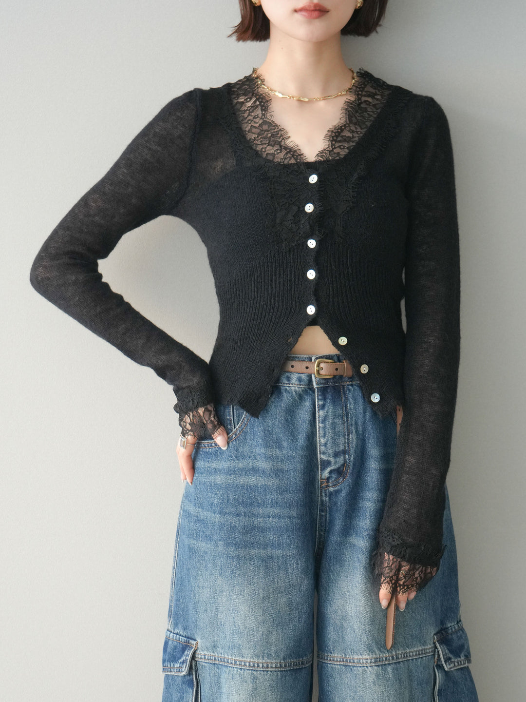 [予約]モヘアタッチレースニットカーディガン/black