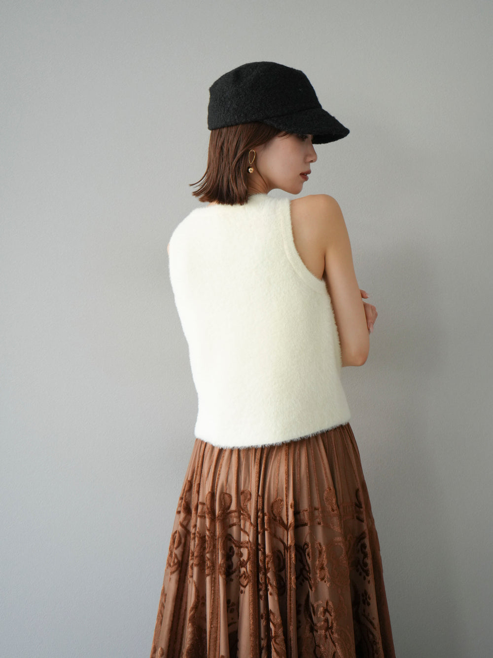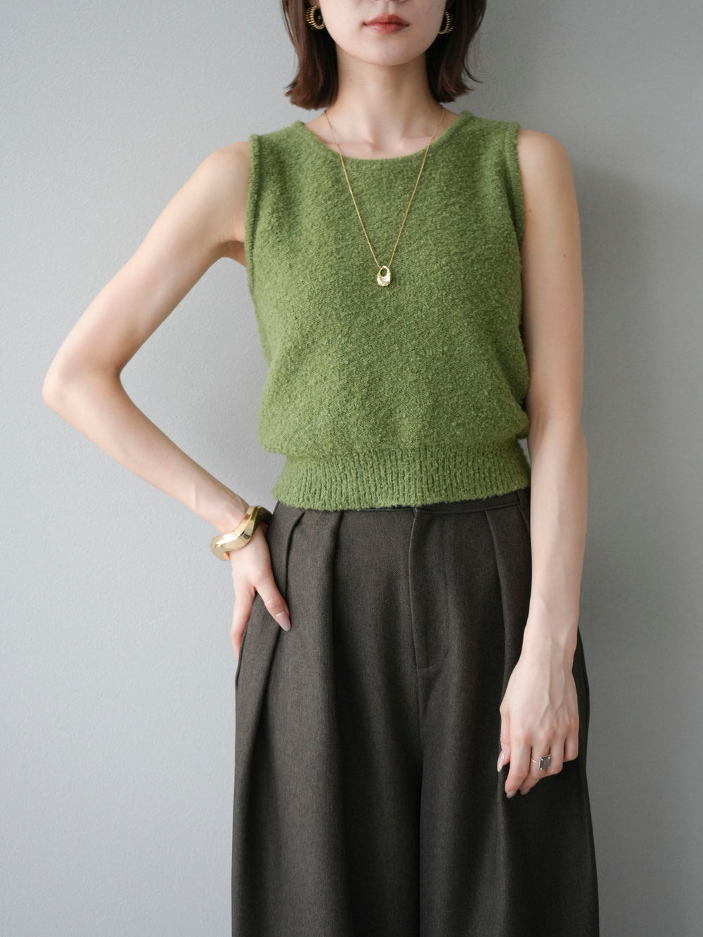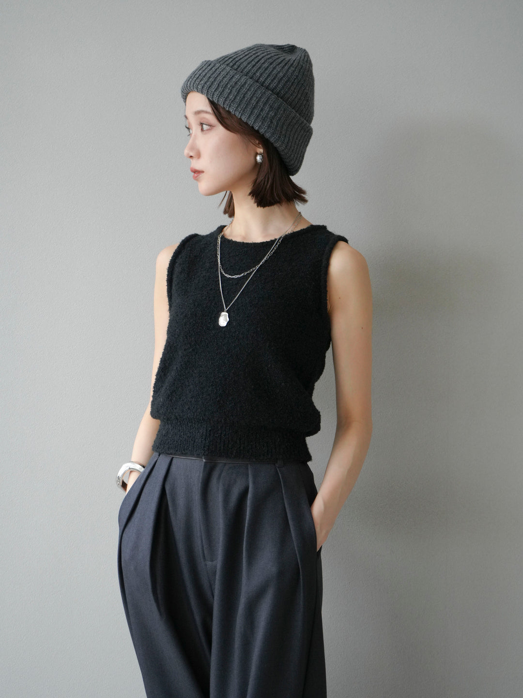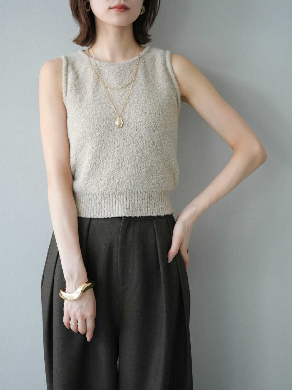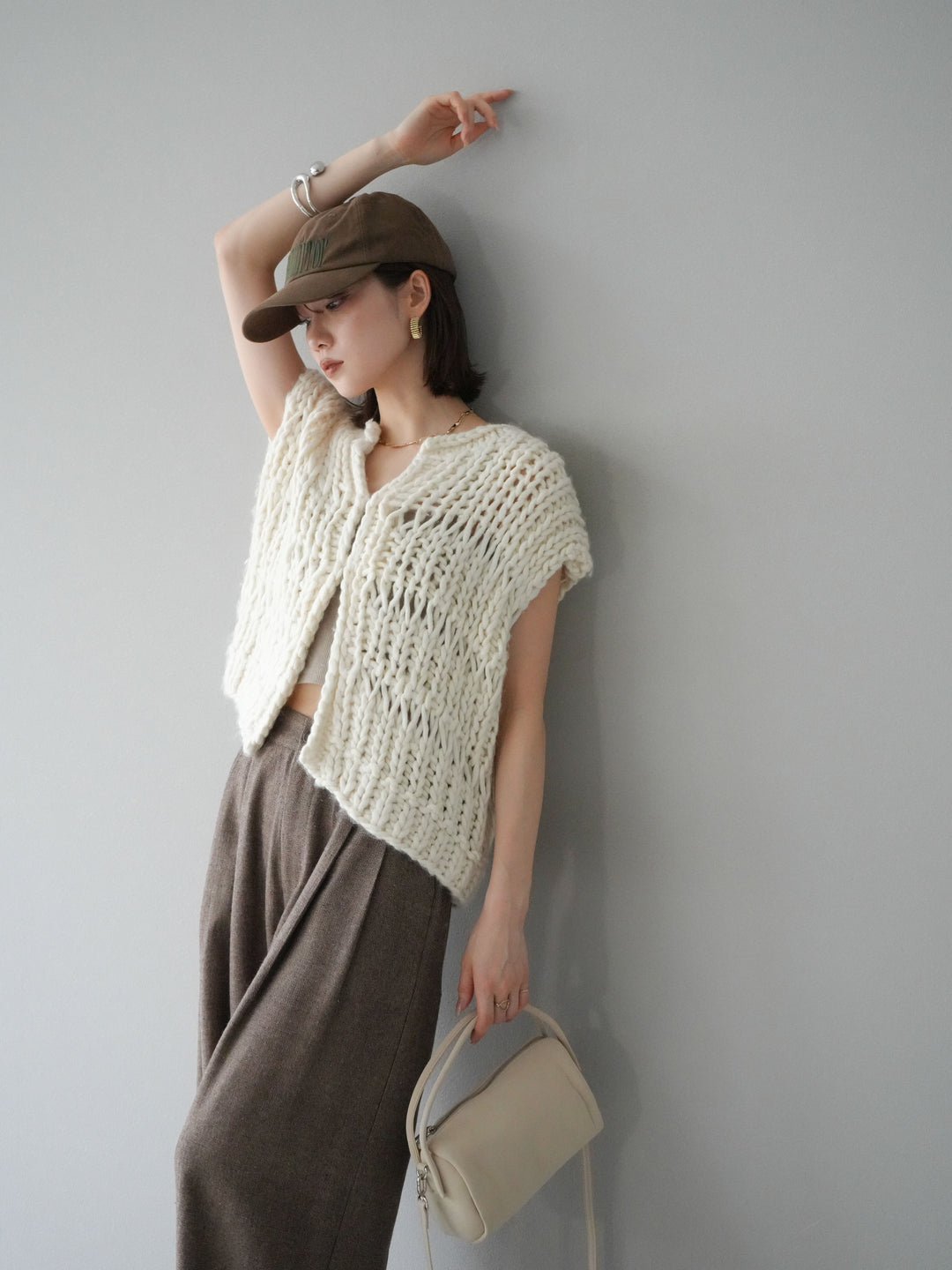 [予約]ボトルネックワッフル編みノースリーブニットトップス/オフホワイト
