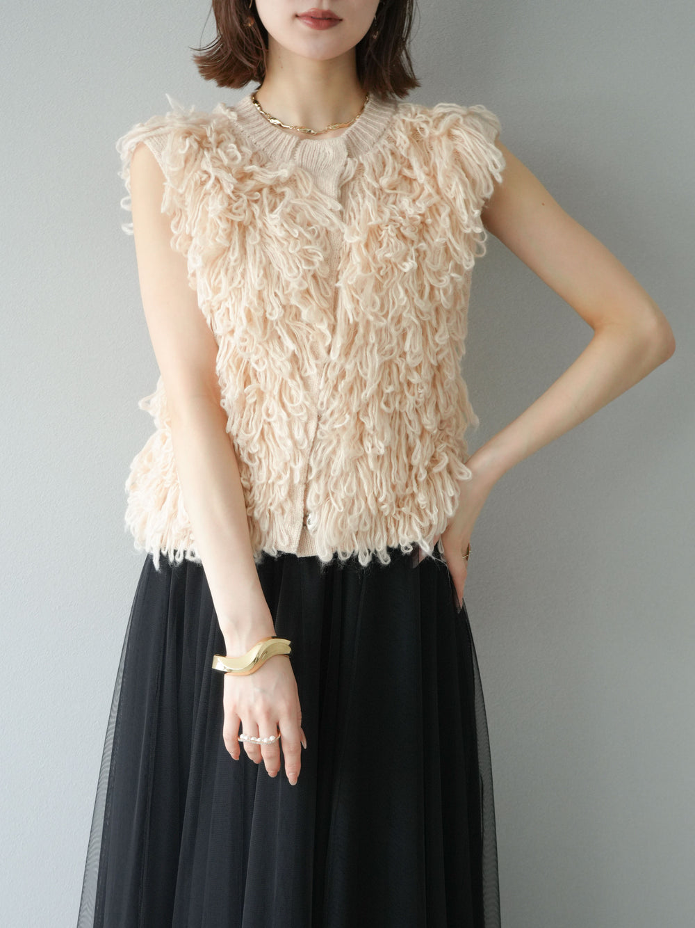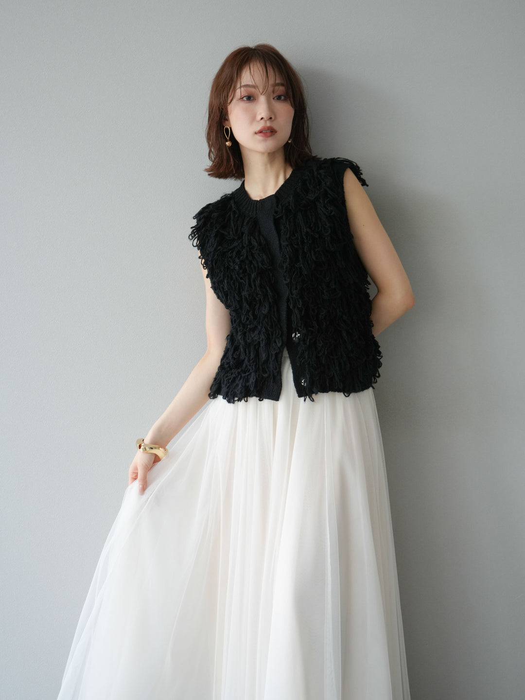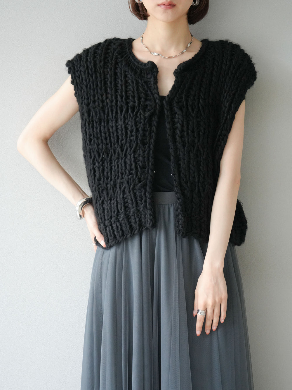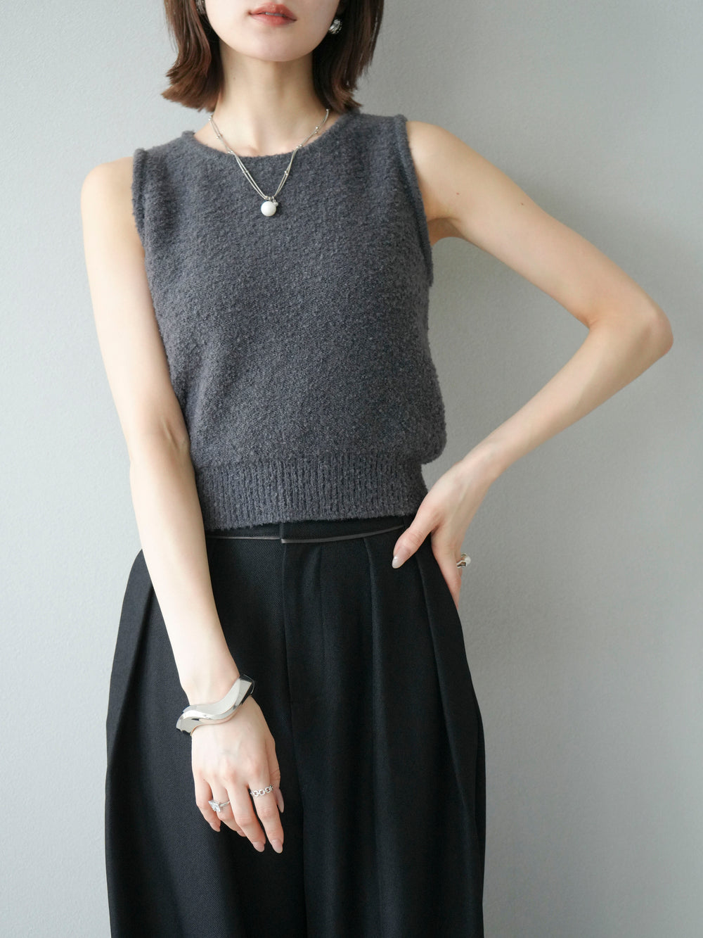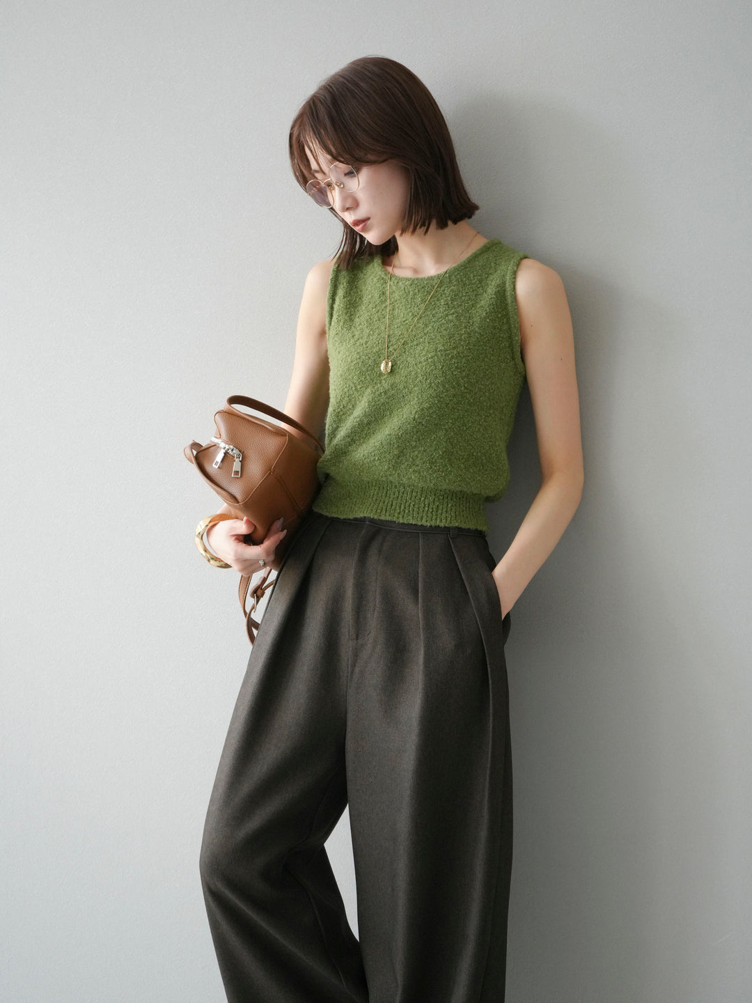 [予約]ボトルネックワッフル編みノースリーブニットトップス/オフホワイト