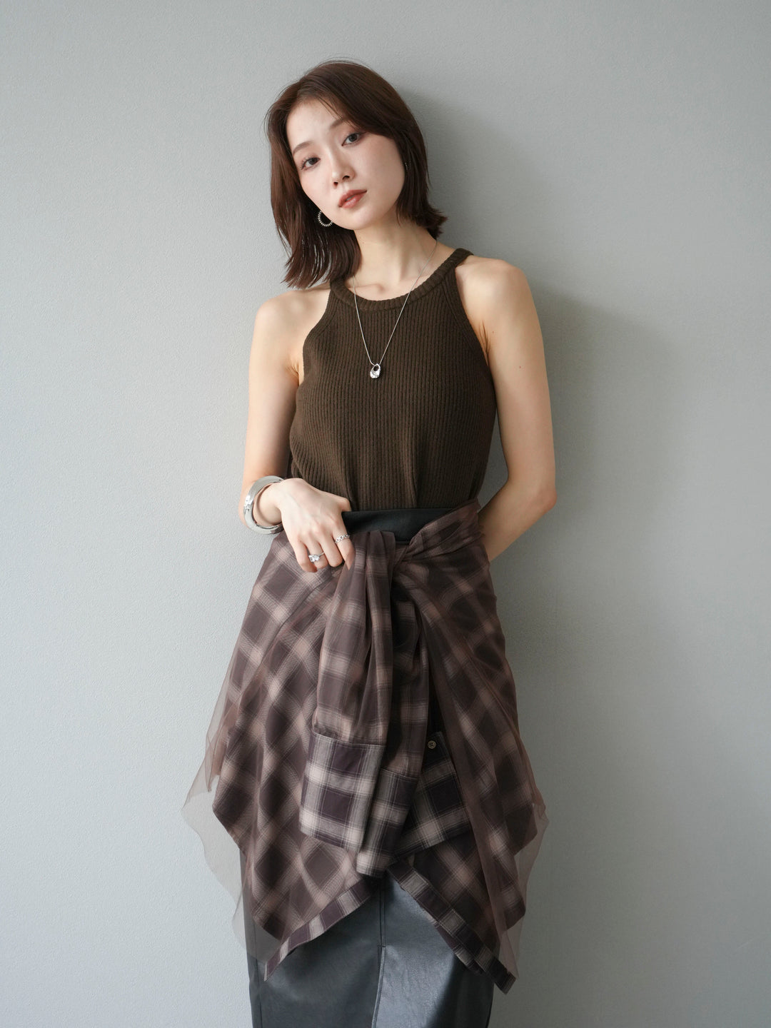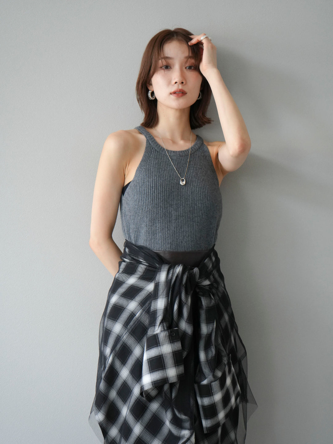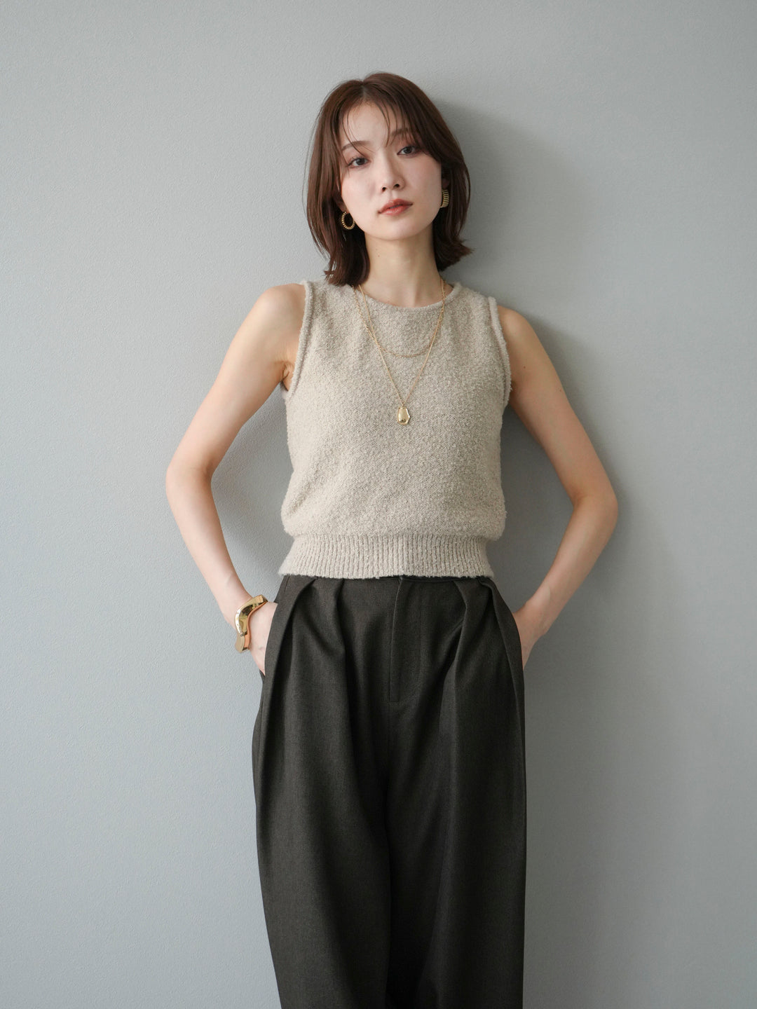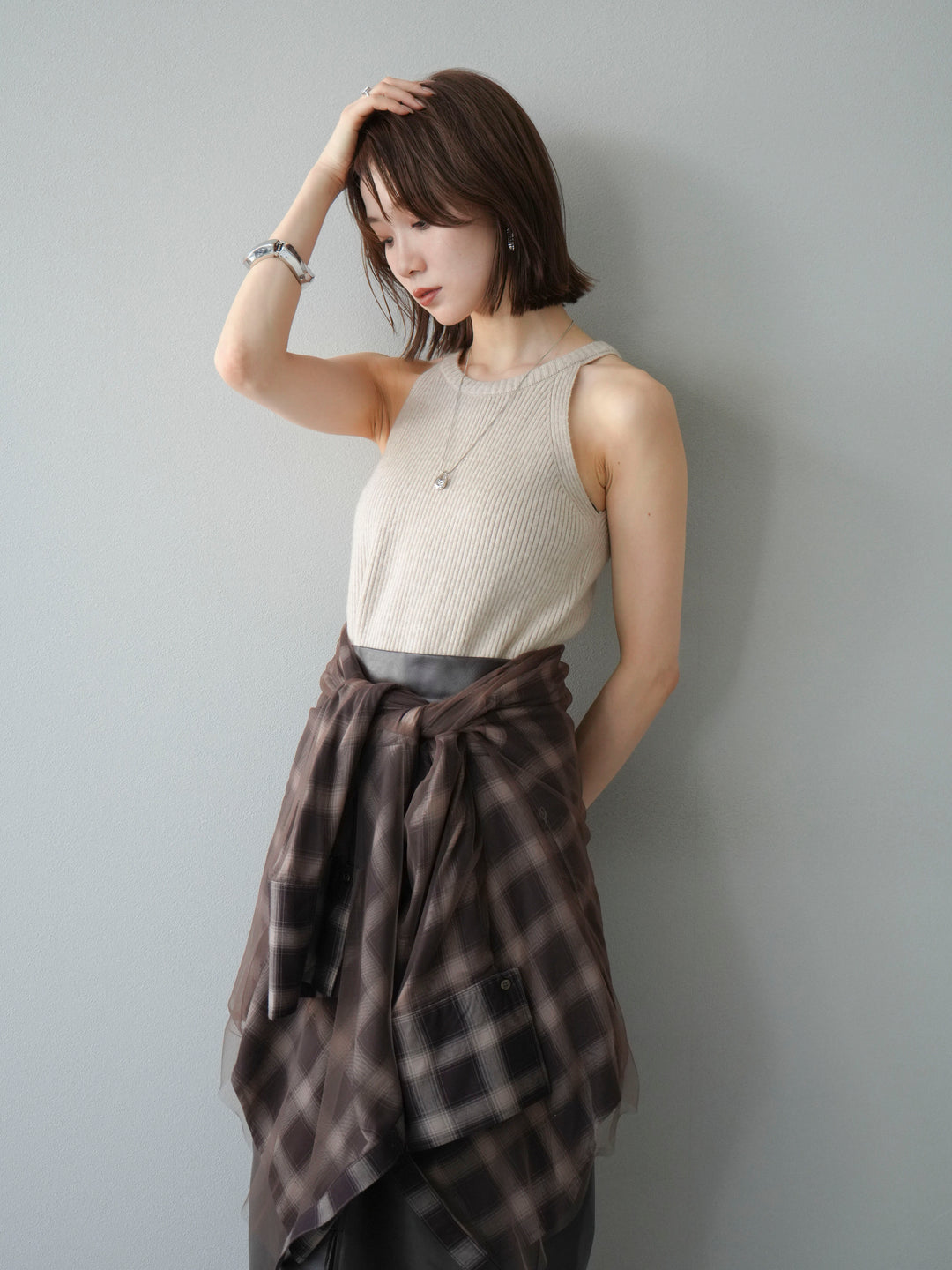 [予約]リブニットアメスリタンクトップ/ベージュ