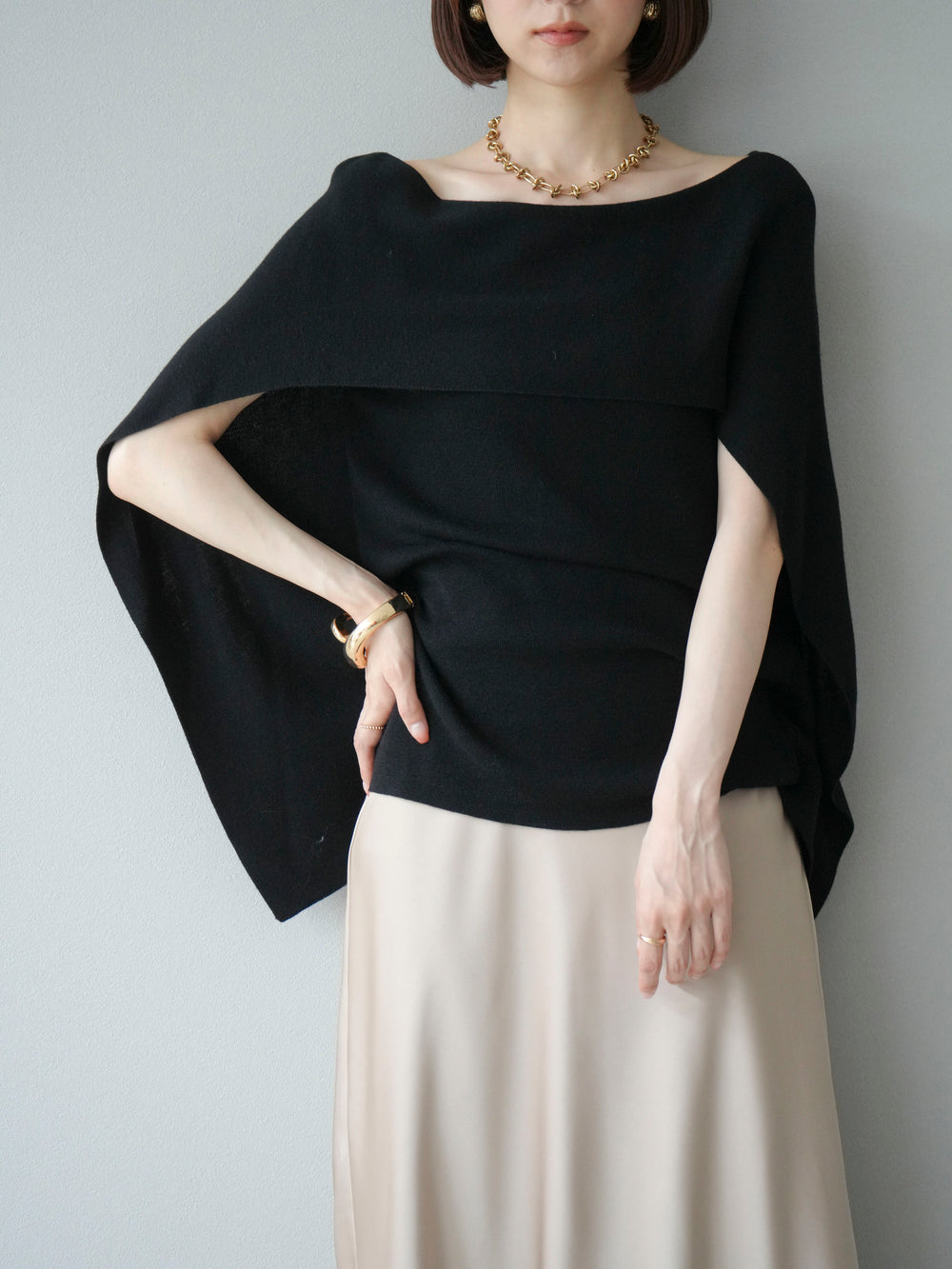 [予約]マントデザインスリットドルマンニット/アイボリー