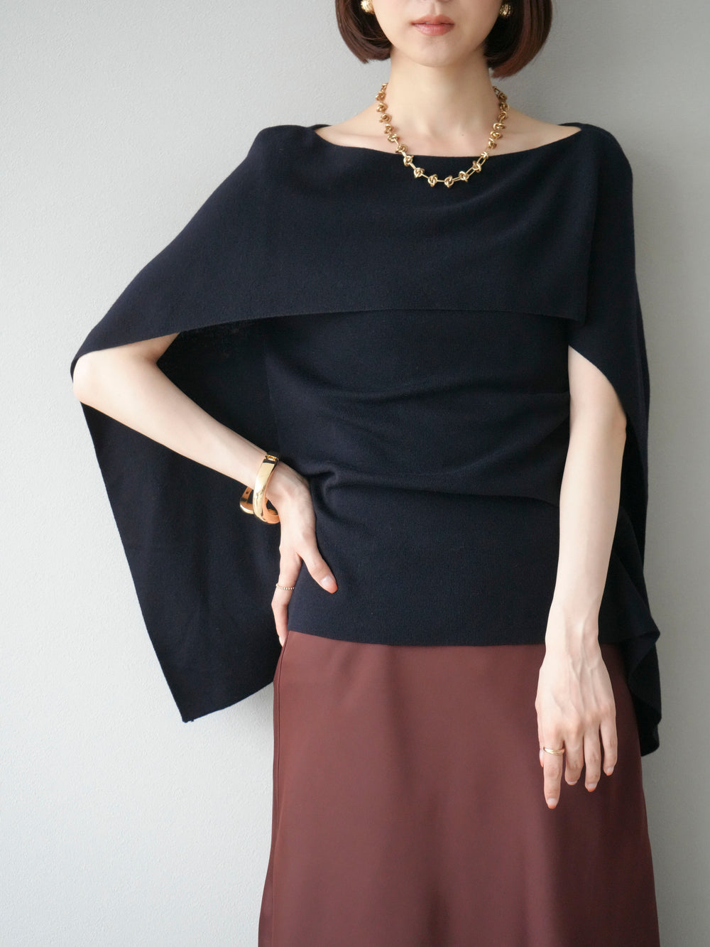 [予約]マントデザインスリットドルマンニット/ネイビー