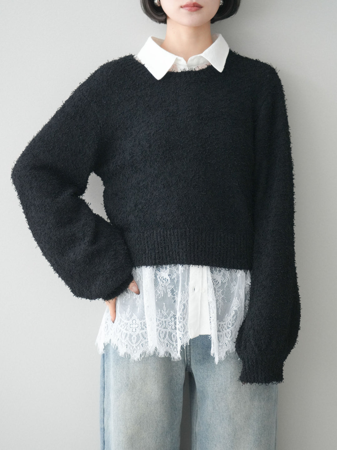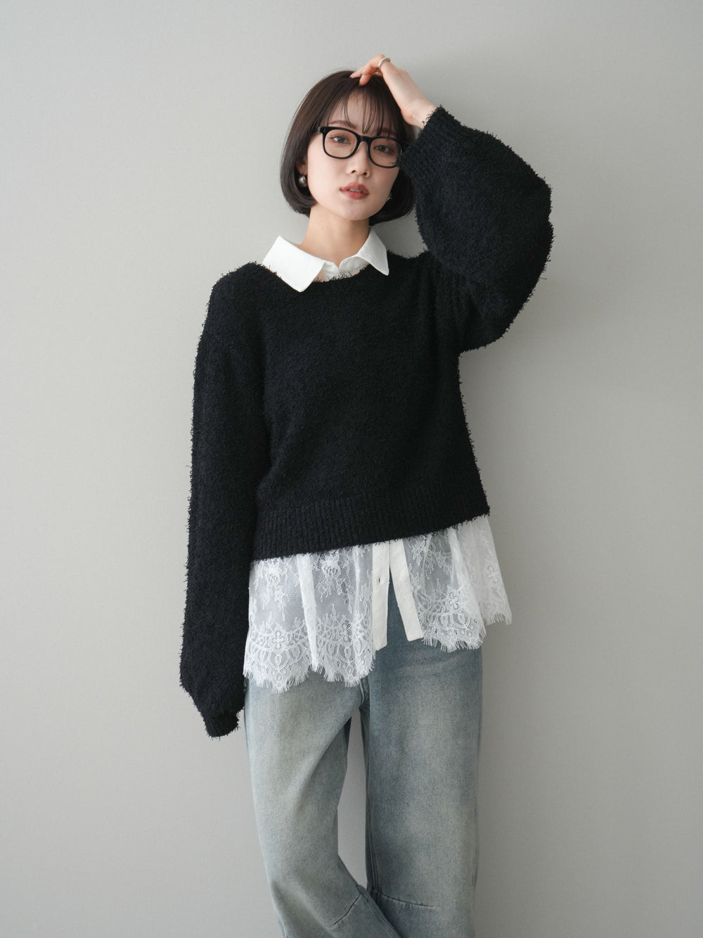 [予約]ボリュームスリーブフリンジニットプルオーバー/black