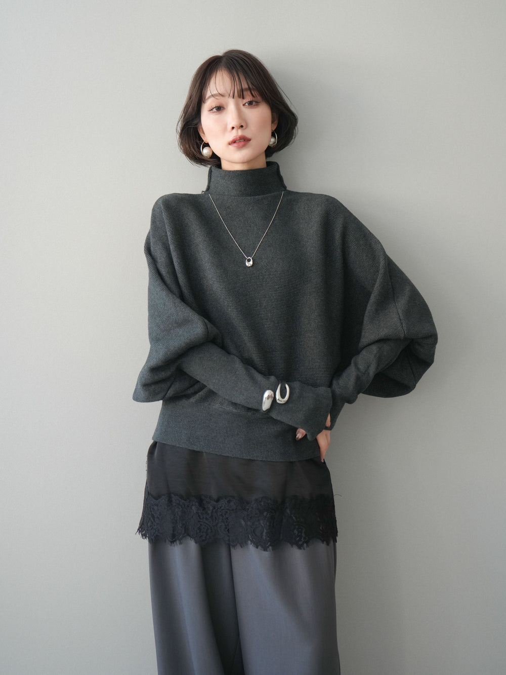 [予約]ボリュームドルマンタートルニットプルオーバー/charcoal