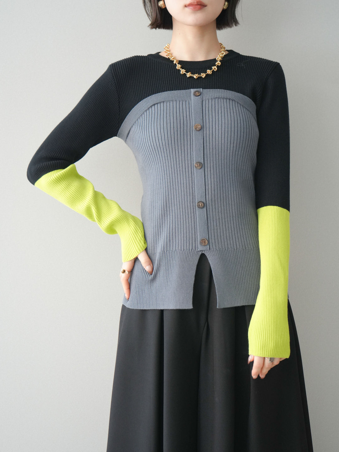 [予約]配色ビスチェドッキングリブニットトップス/black