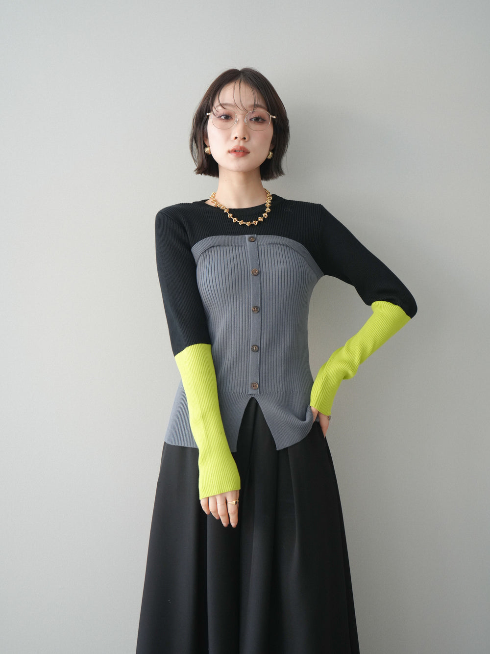 [予約]配色ビスチェドッキングリブニットトップス/gray