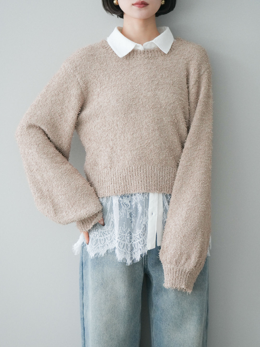 [予約]ボリュームスリーブフリンジニットプルオーバー/beige