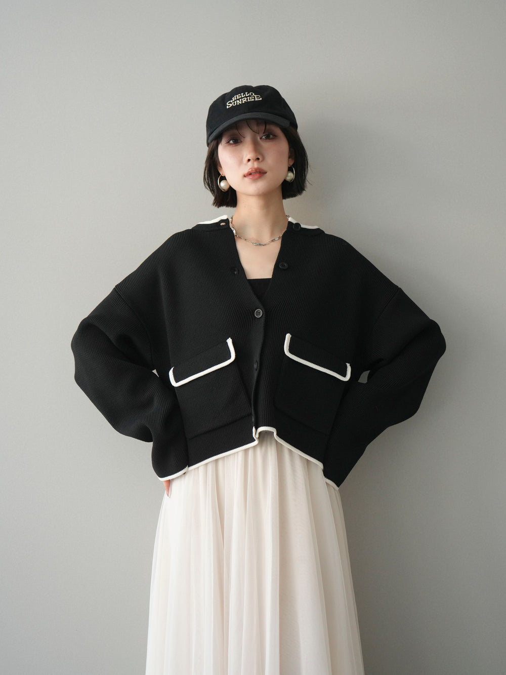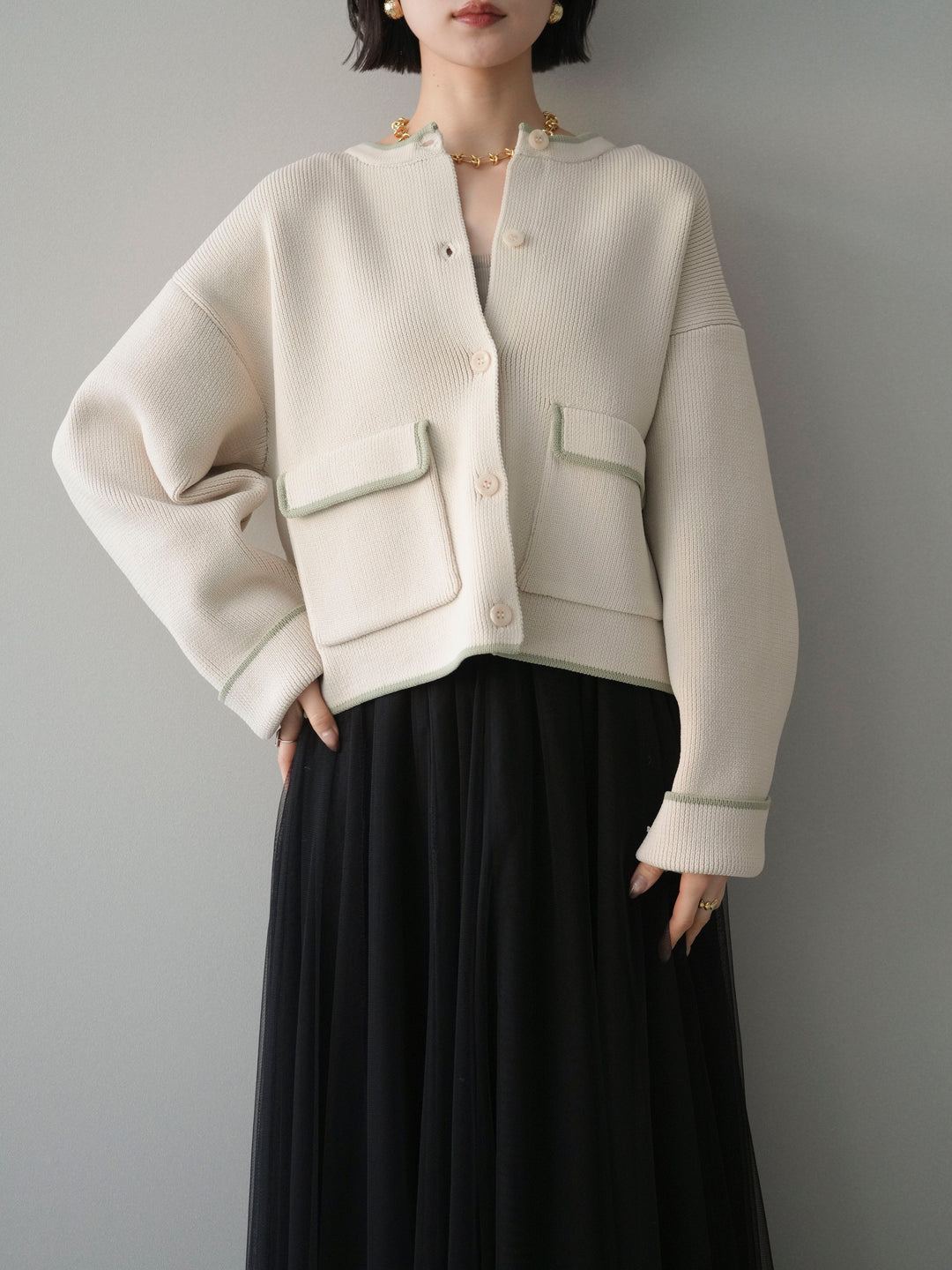 [予約]ポリエステル配色ニットカーディガン/ivory2