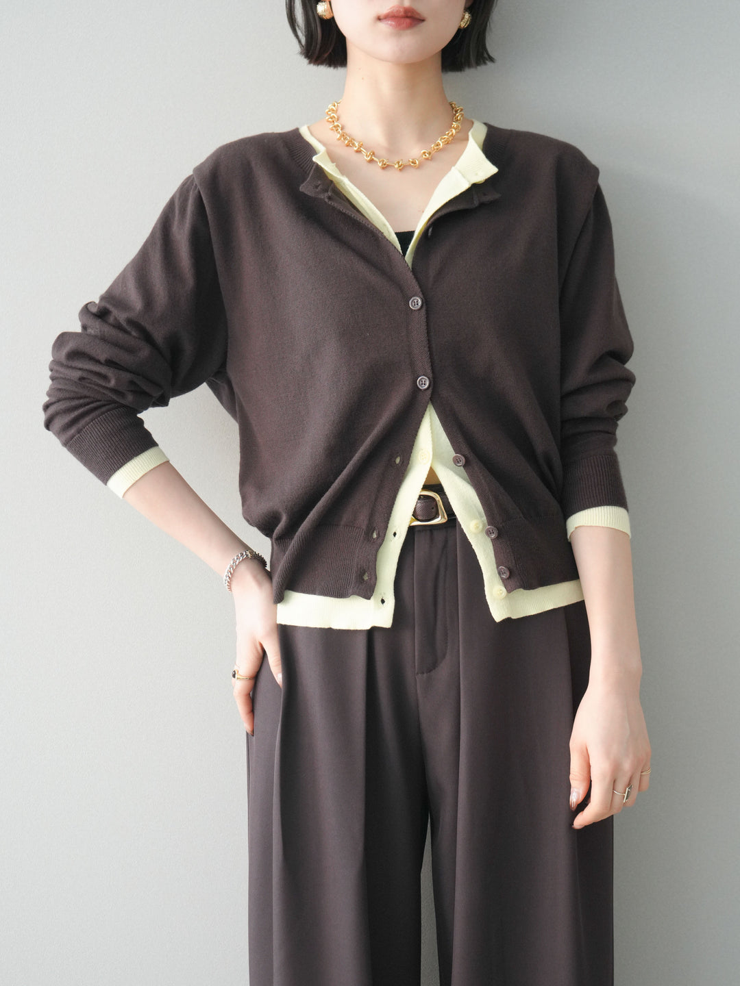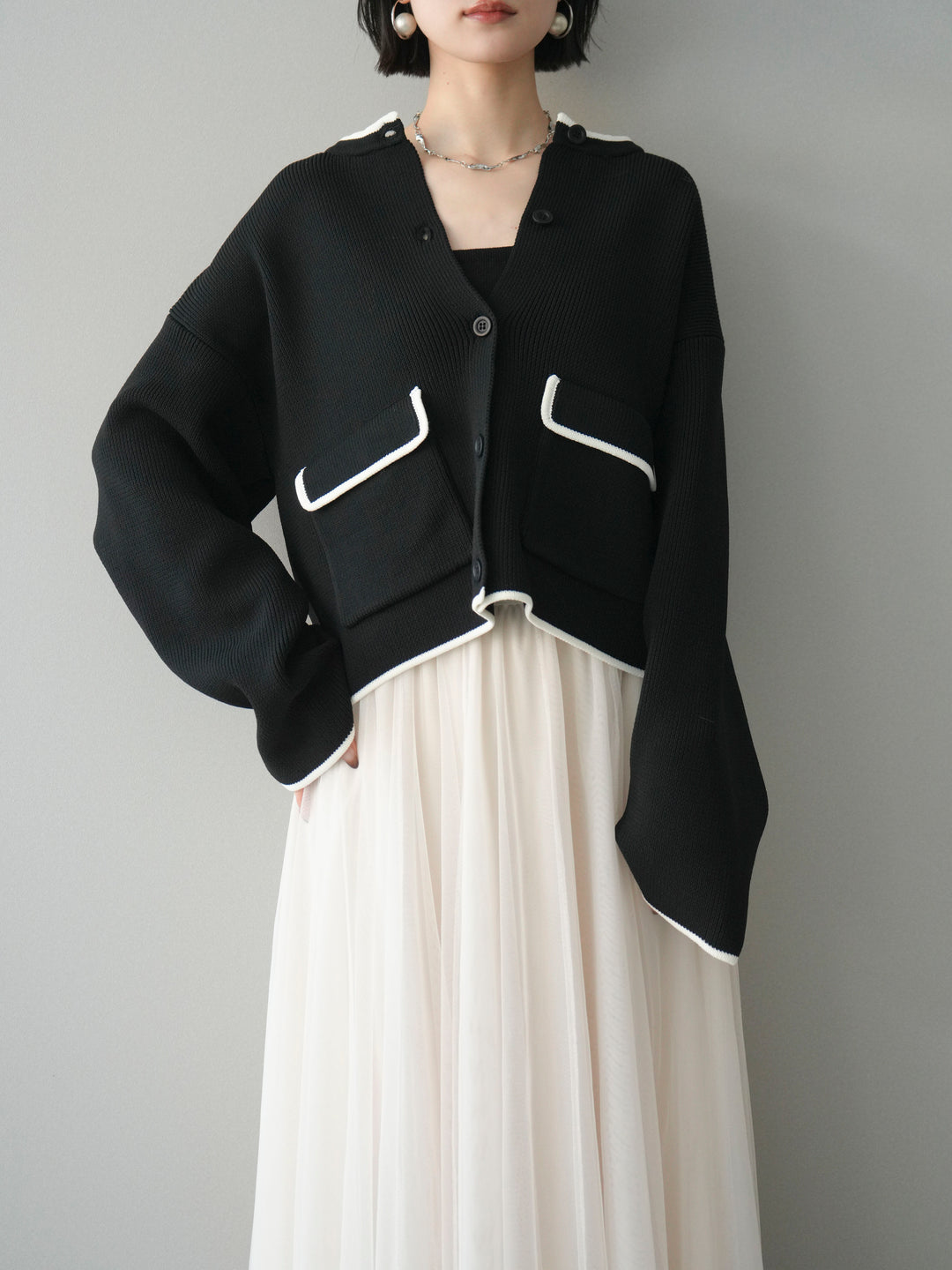 [予約]裾シフォンプリーツニットカーディガン/ivory