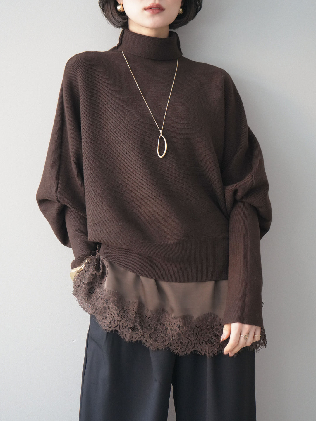 [予約]ボリュームドルマンタートルニットプルオーバー/brown