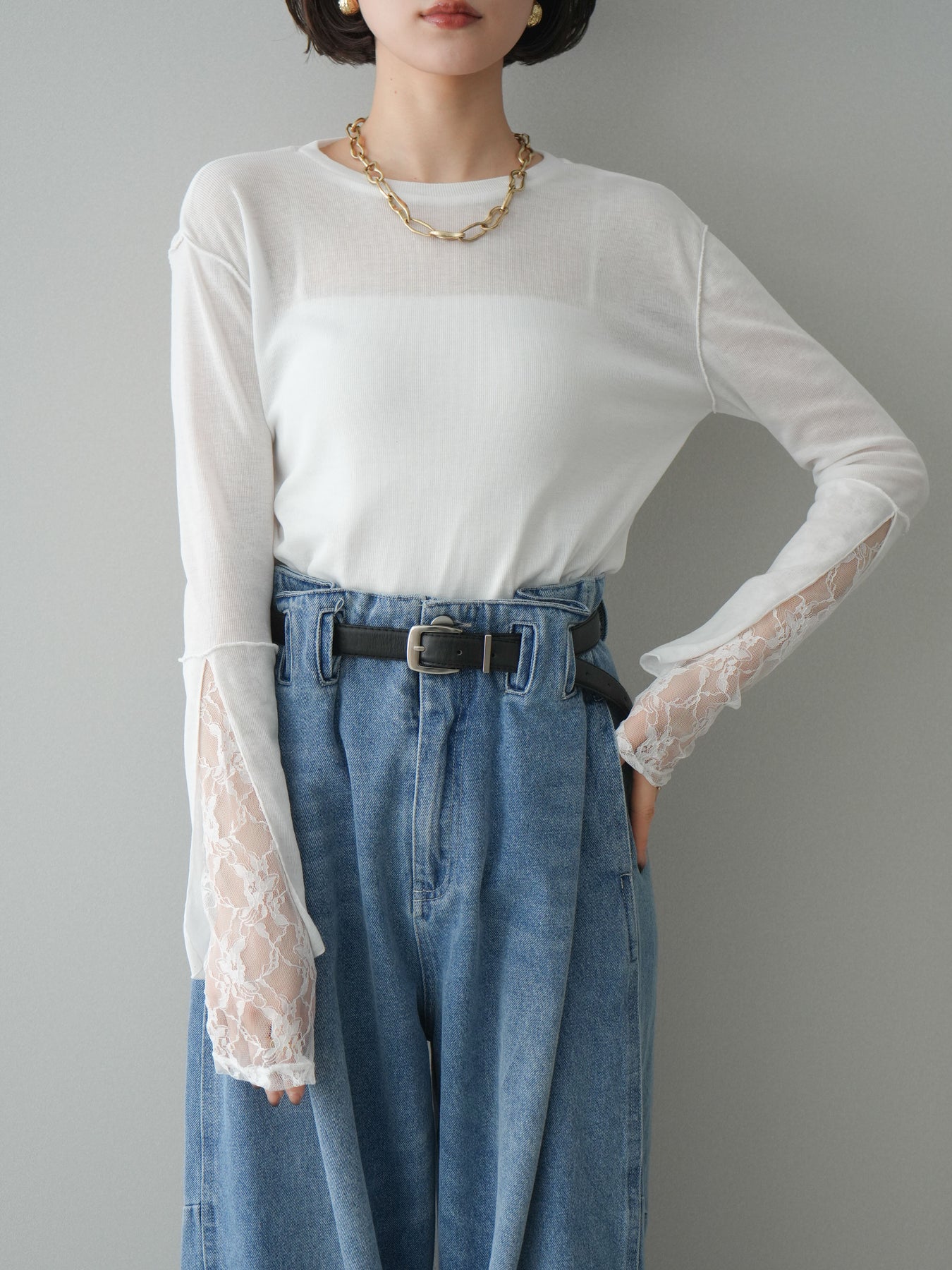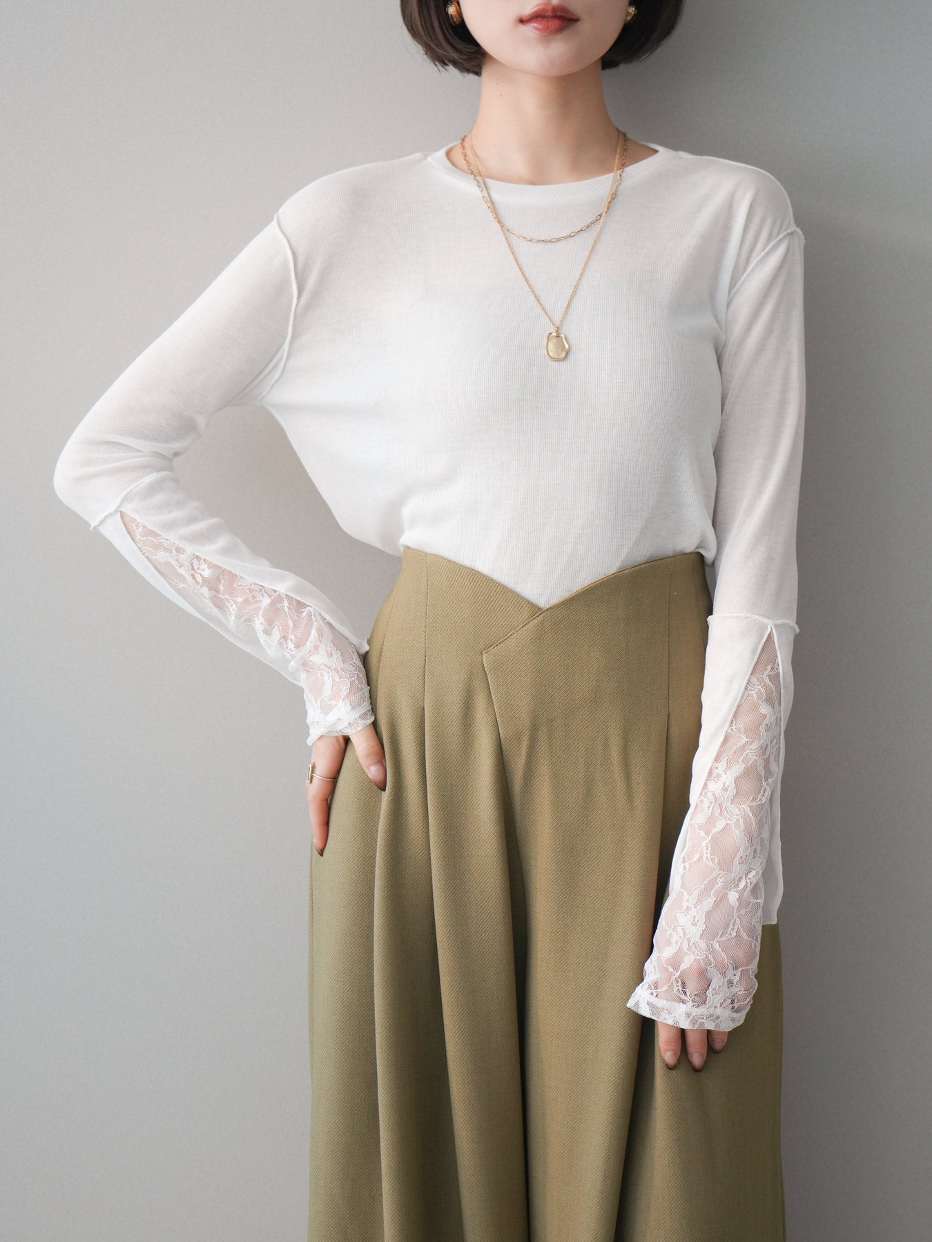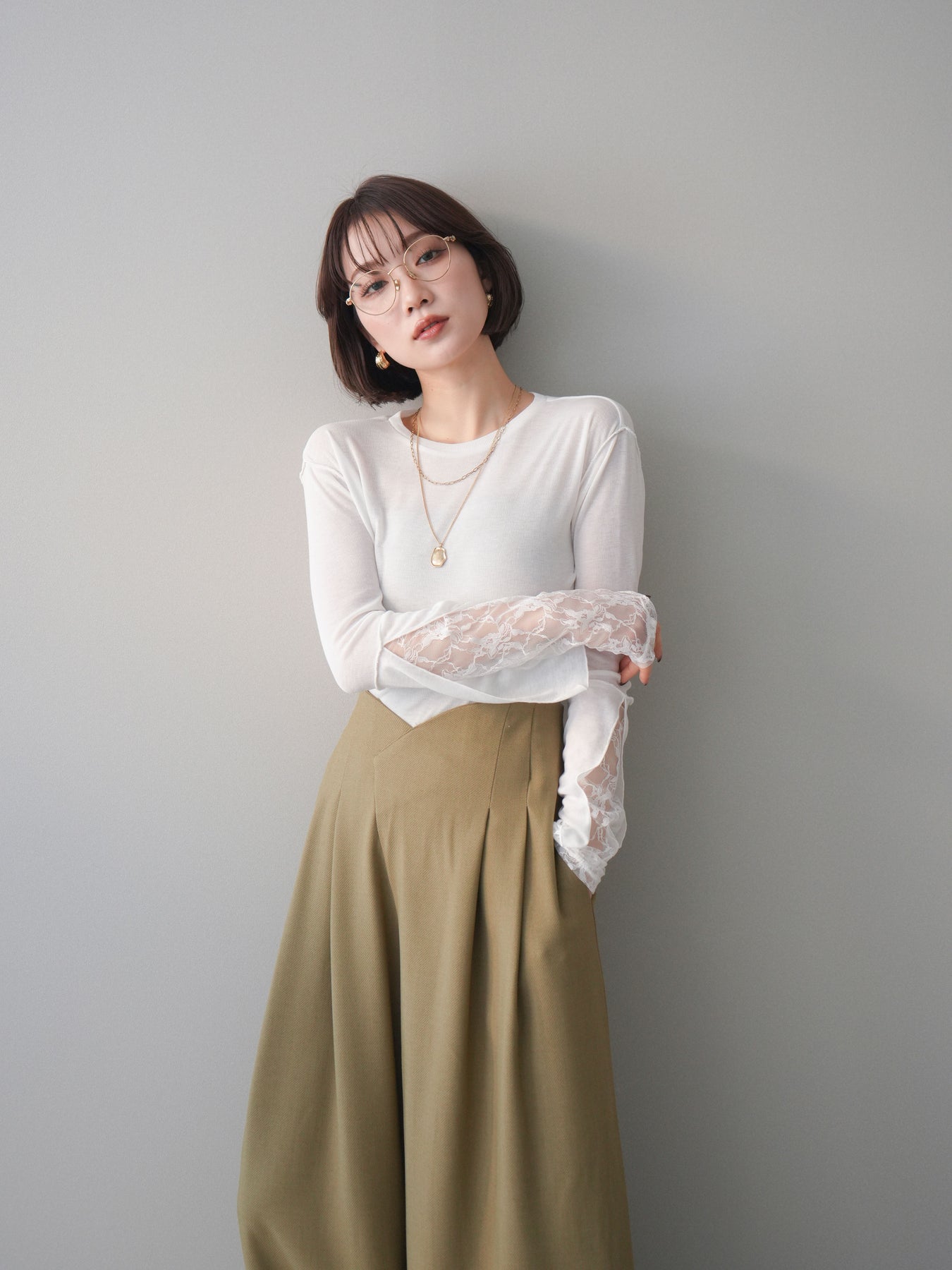◆ [予約]袖レースレイヤードデザインメロートップス