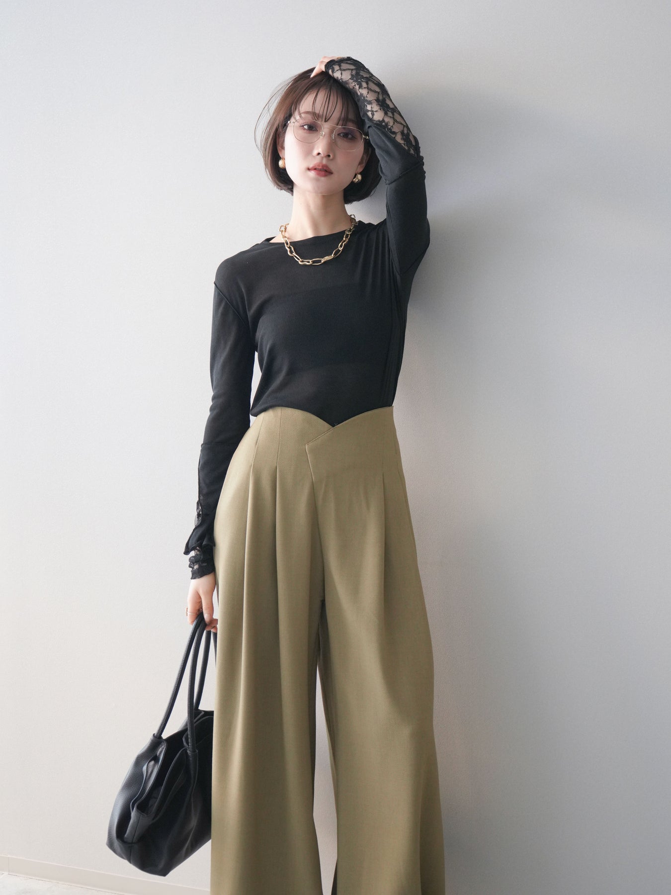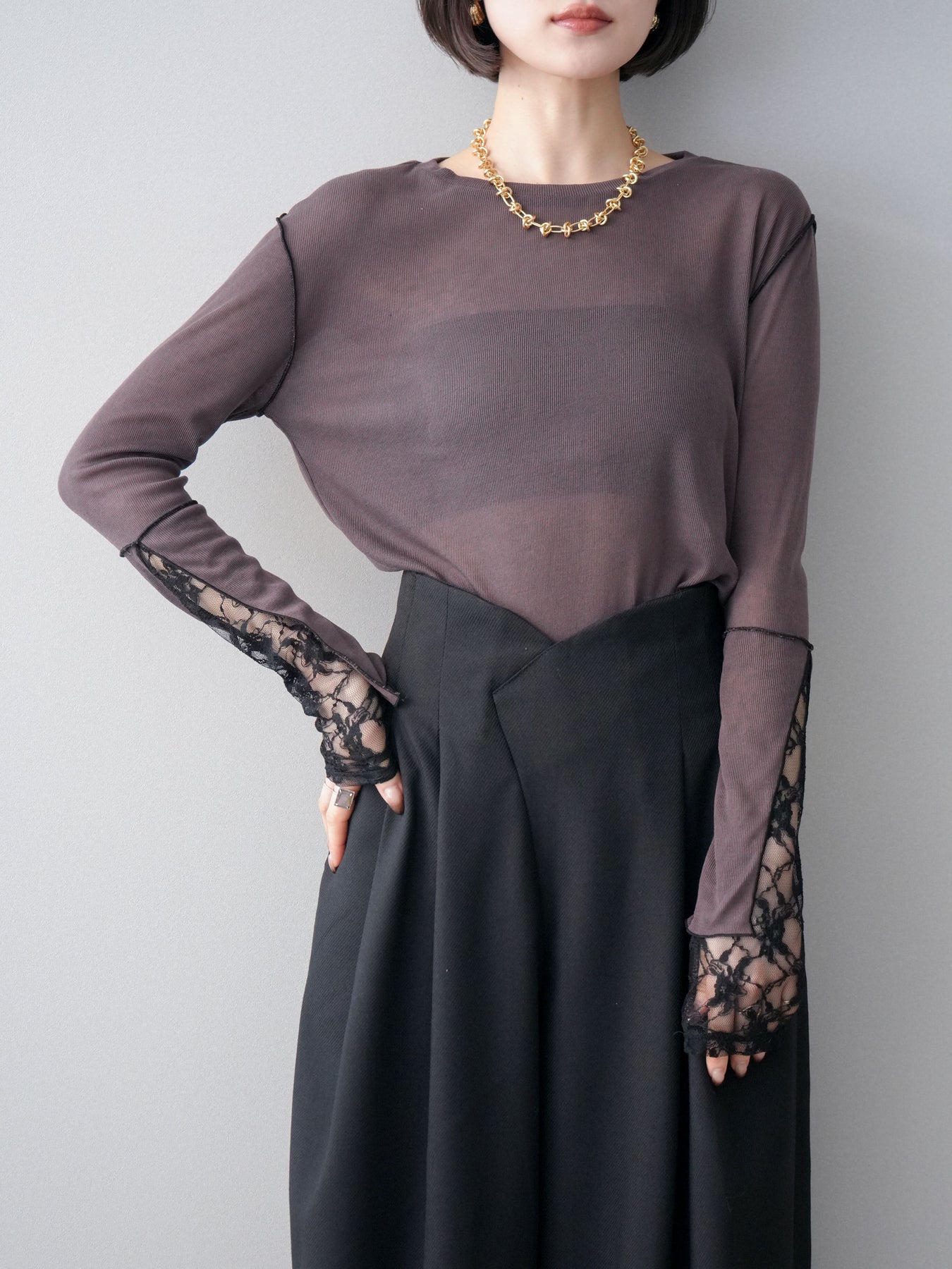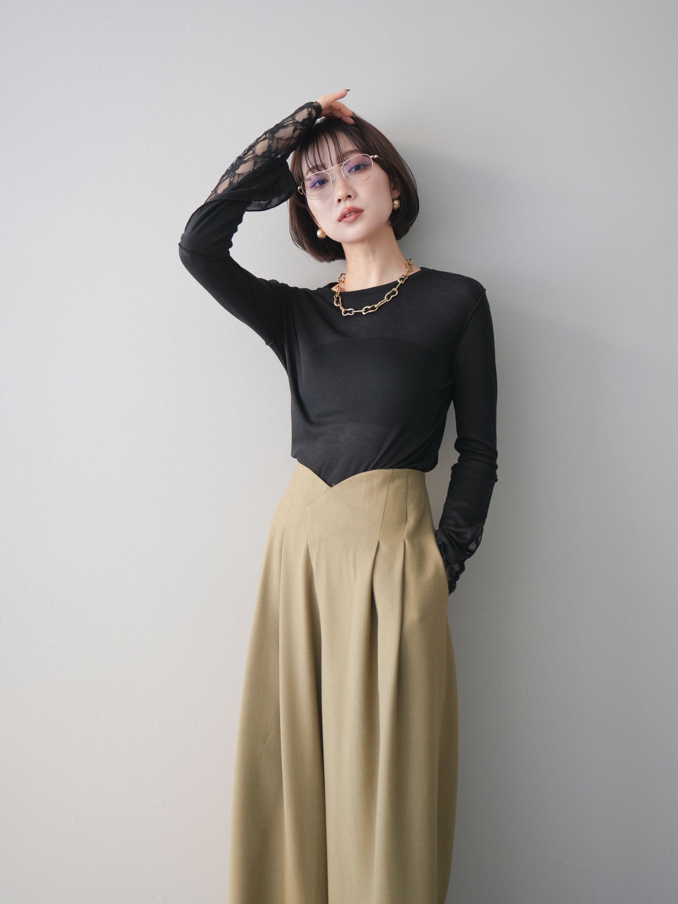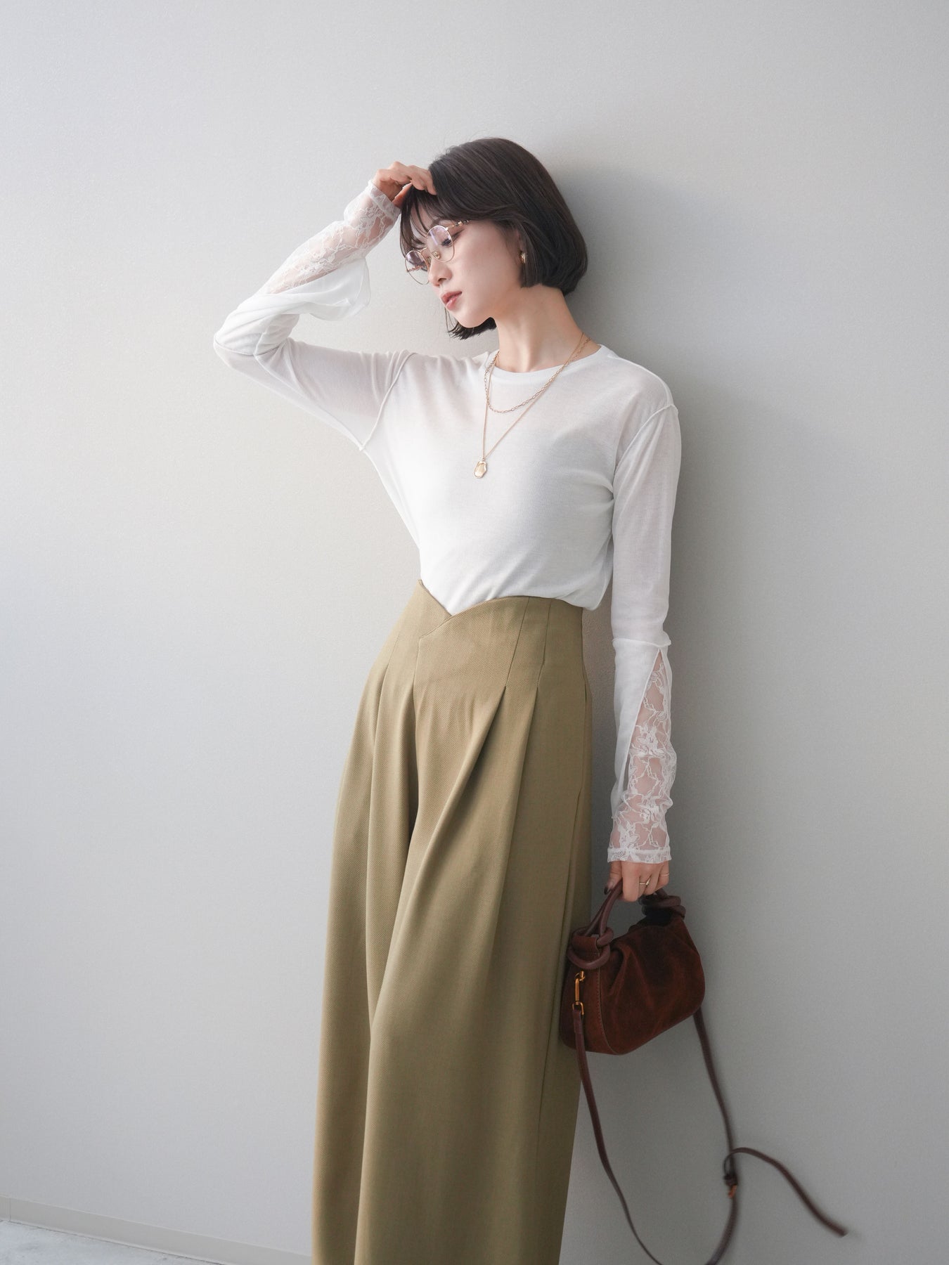 ◆ [予約]袖レースレイヤードデザインメロートップス