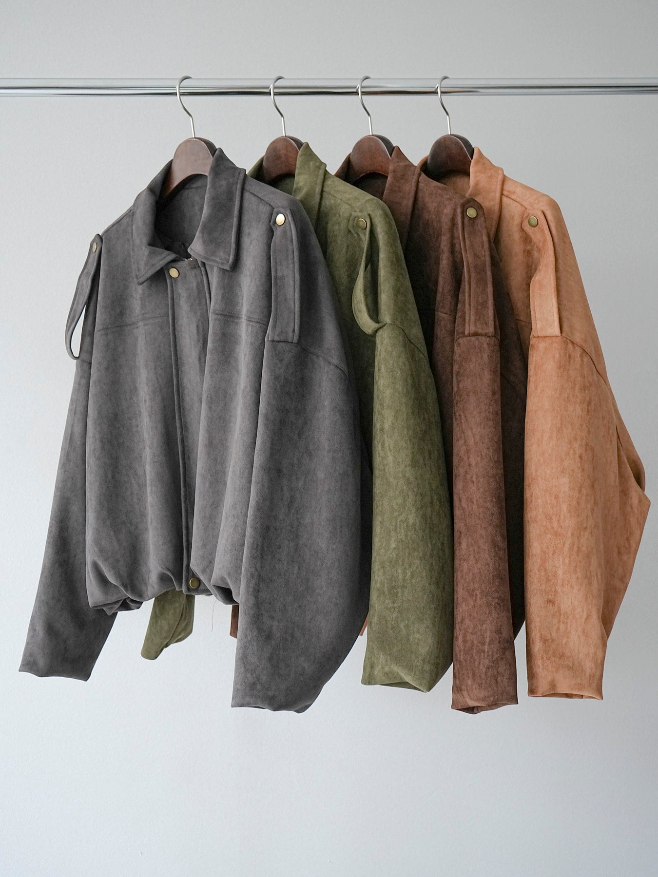 這款超大廓形外套採用柔軟的絨面革材質製成。柔軟的質感更顯優雅,寬鬆的輪廓則營造出輕鬆愜意的氛圍。肩部肩章式細節為簡約的設計增添了一抹精緻感。落肩設計與寬大衣身使其易於疊穿,百搭的設計可與厚針織衫和運動衫相得益彰。這款夾克兼具日常休閒風格與精緻質感,必將成為本季的經典外套單品。 *所有商品(下裝和吊帶背心(內衣)除外)均不含內衣。