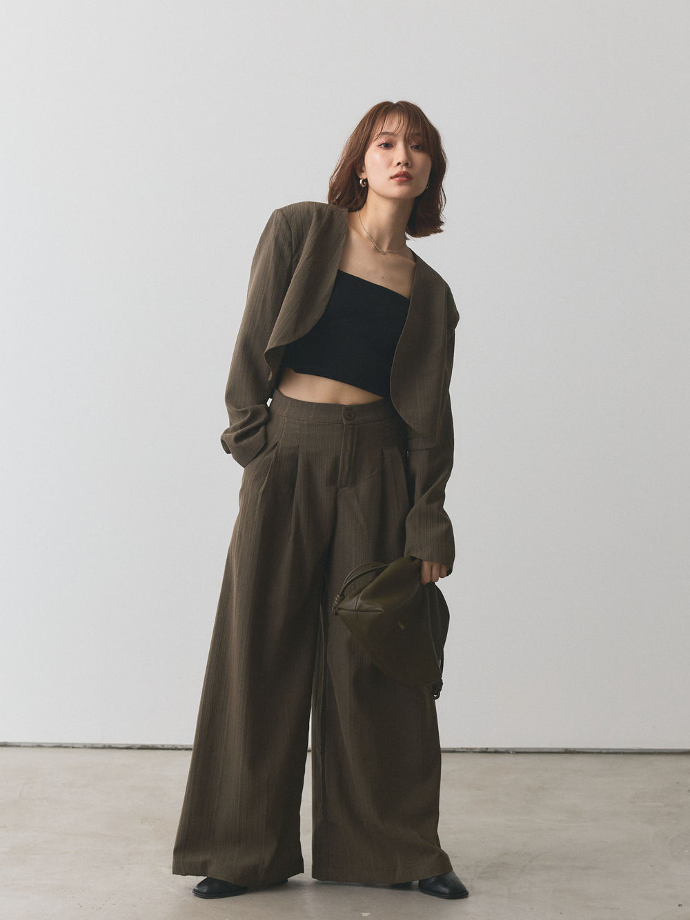 【Allure】[SET]ヘリンボーンショートジャケット&ワイドパンツSET UP+ヘリンボーンショートジャケット&ワイドパンツSET UP(2set)