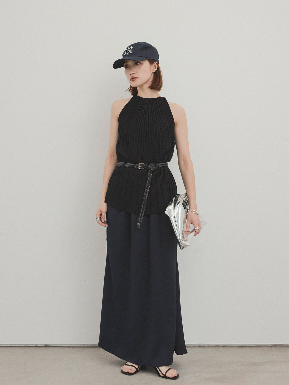 [SET] 褶襉針織吊帶背心+寬鬆窄裙(2件組)