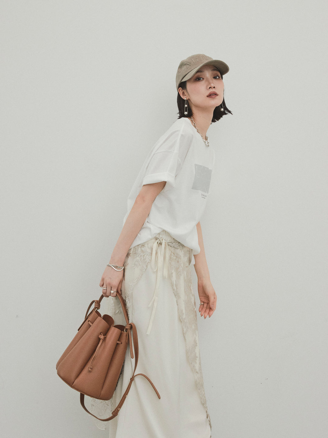 [SET] 燙金印花乾爽棉質 TEE + 薄紗提花裹身長裙 (2 套)