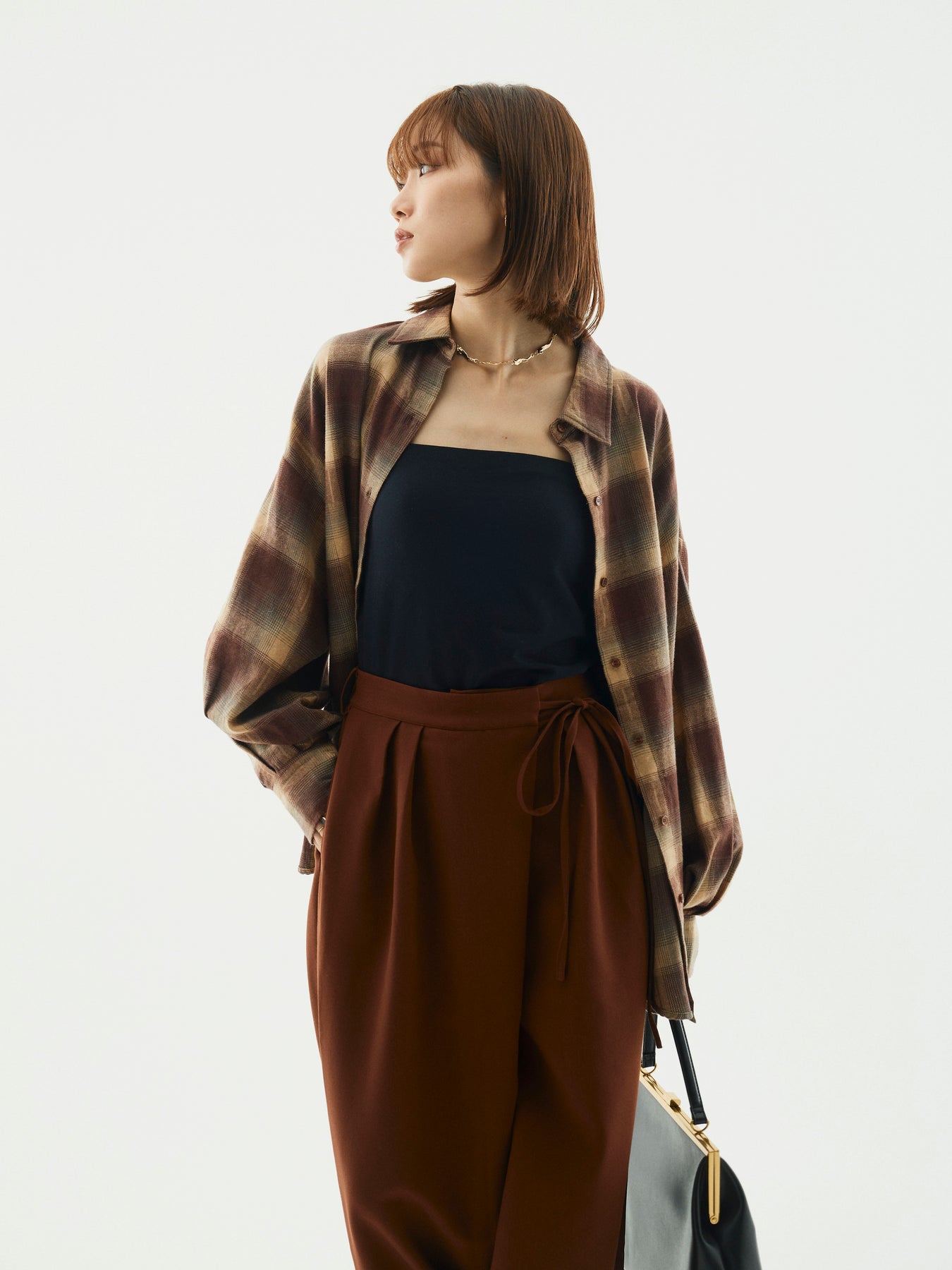 柔らかなオンブレチェック柄が目を惹くゆったりとしたオーバーシャツ。ボリューム袖とドロップショルダーでラフさを演出しつつ、程よい丈感がバランスの取れた着こなしに。羽織としても活躍し、シーズンを問わず着回せる万能アイテムです。