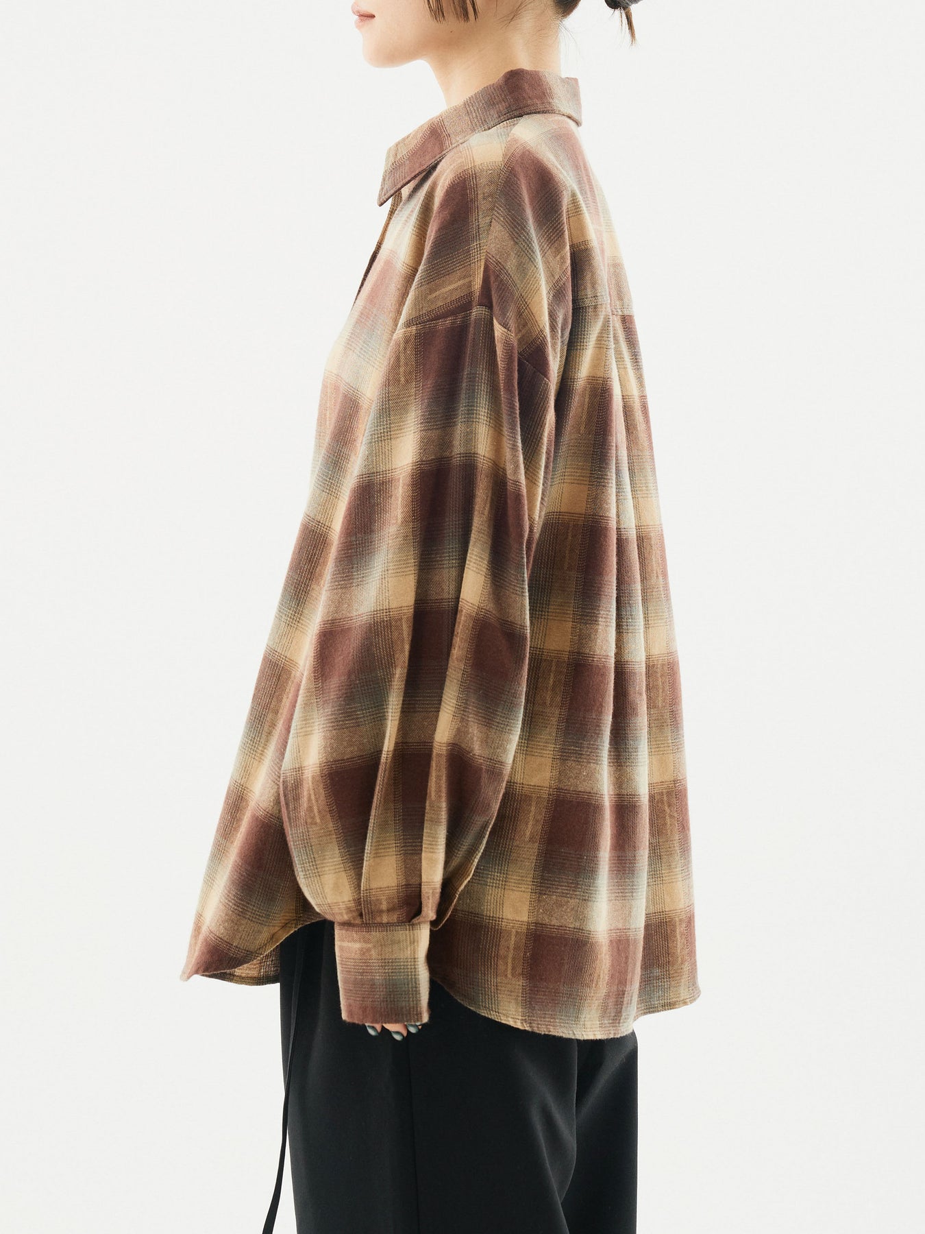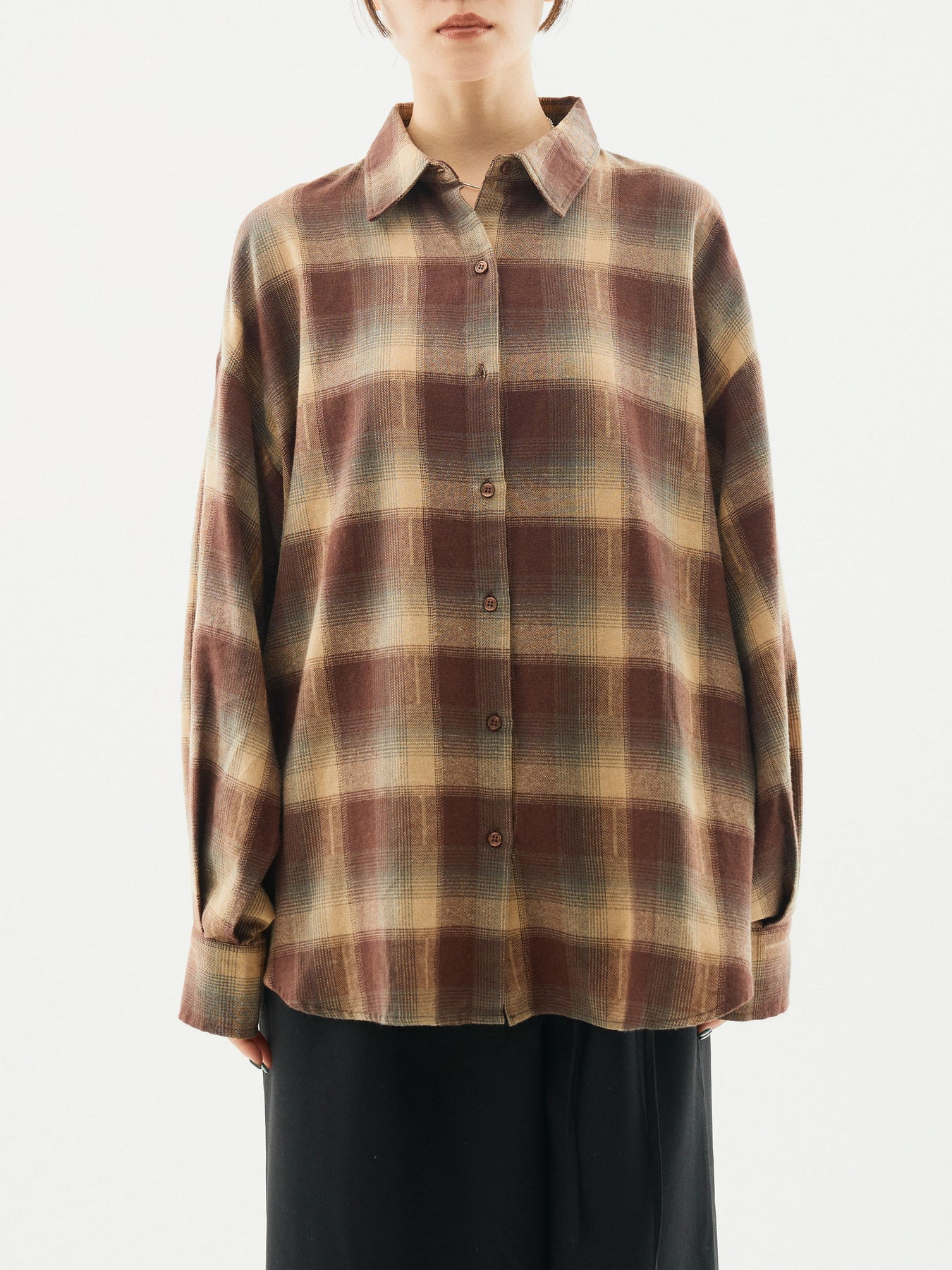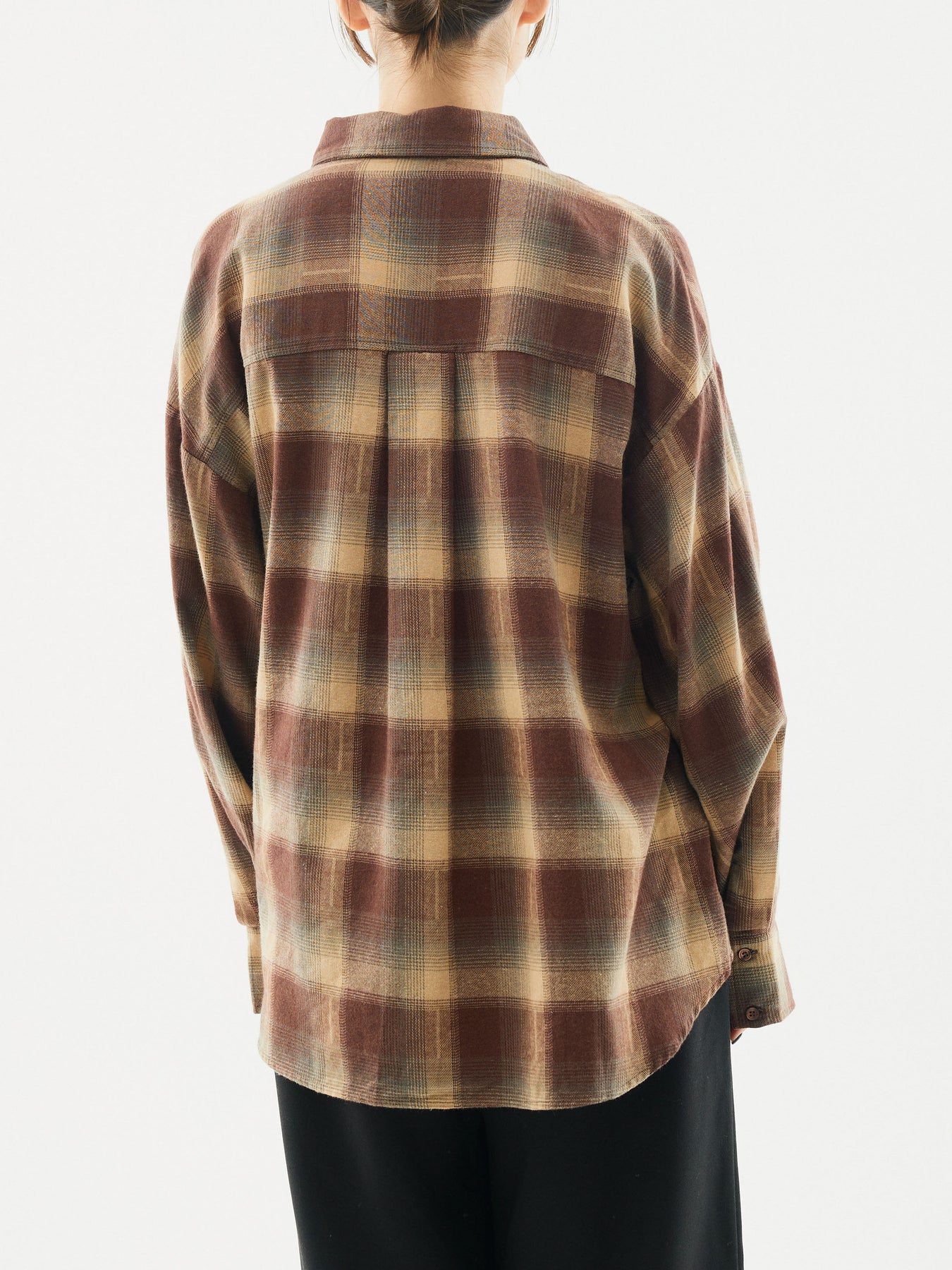 [予約]オンブレチェックオーバーシャツ/ブラウン