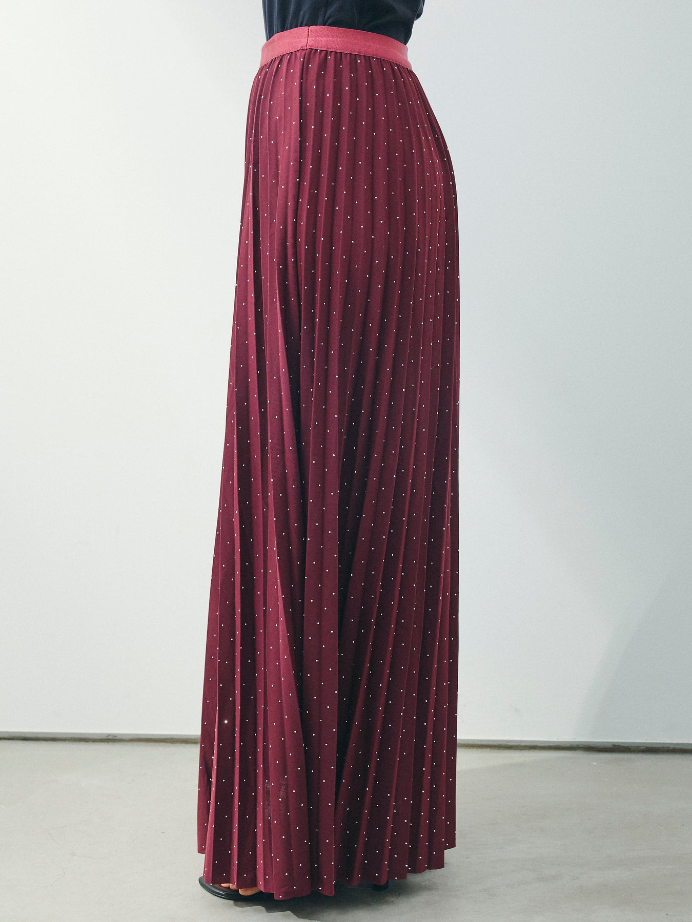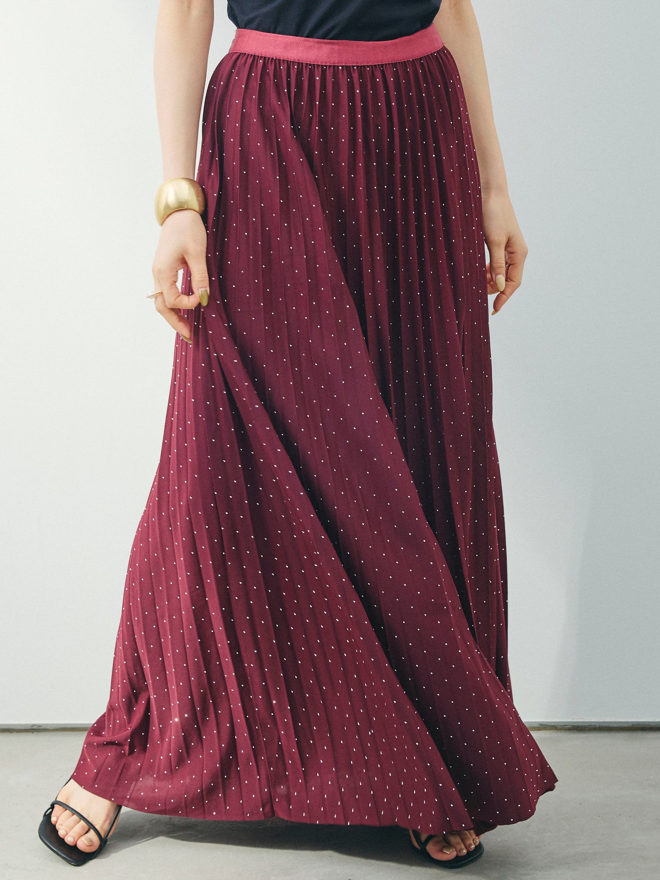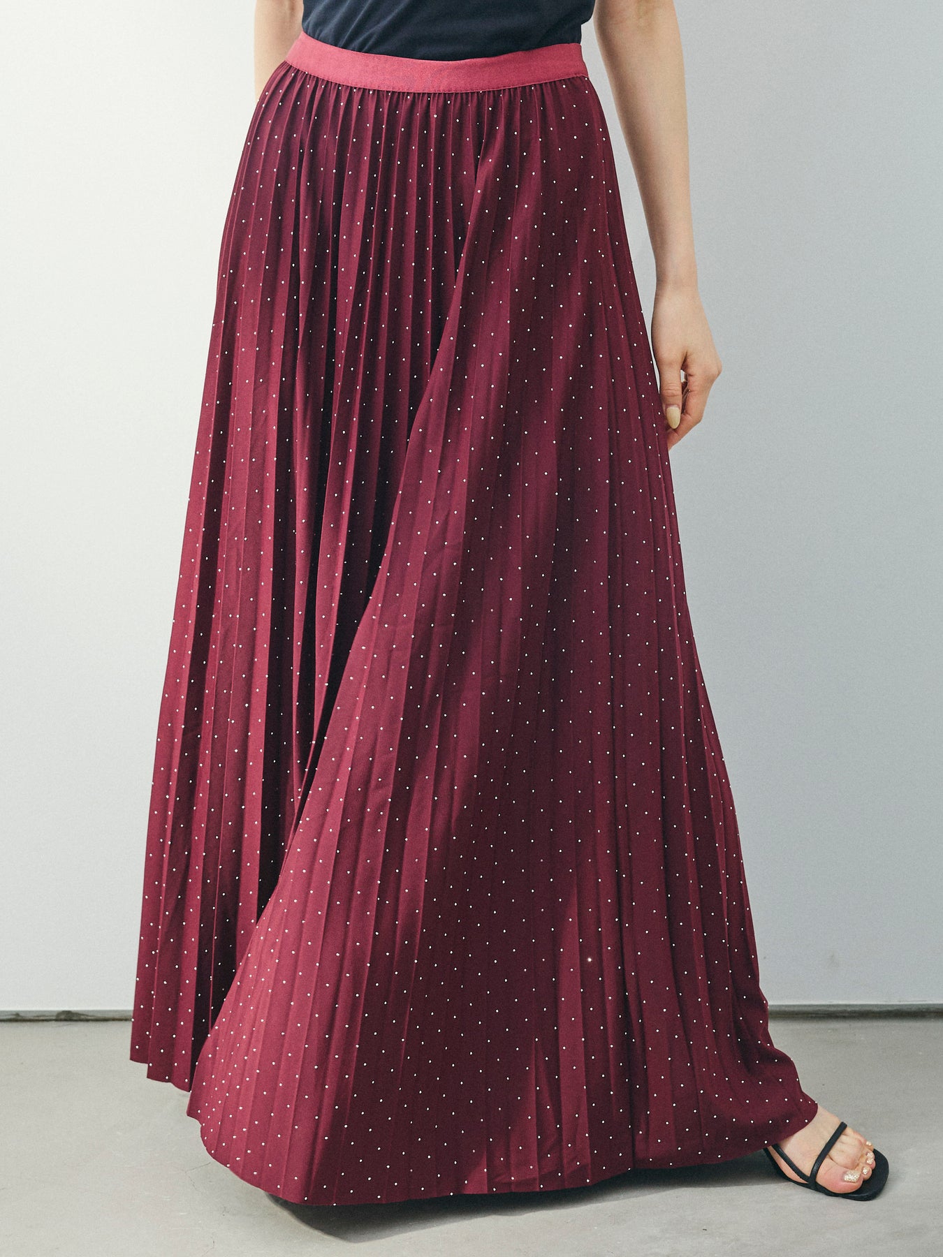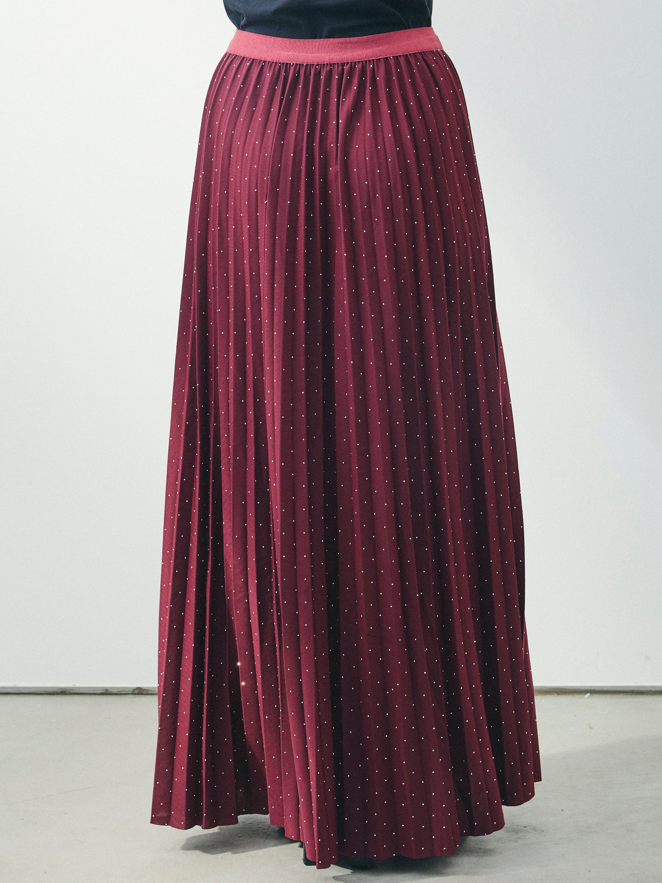 [予約]ラインストーンプリーツスカート/バーガンディー