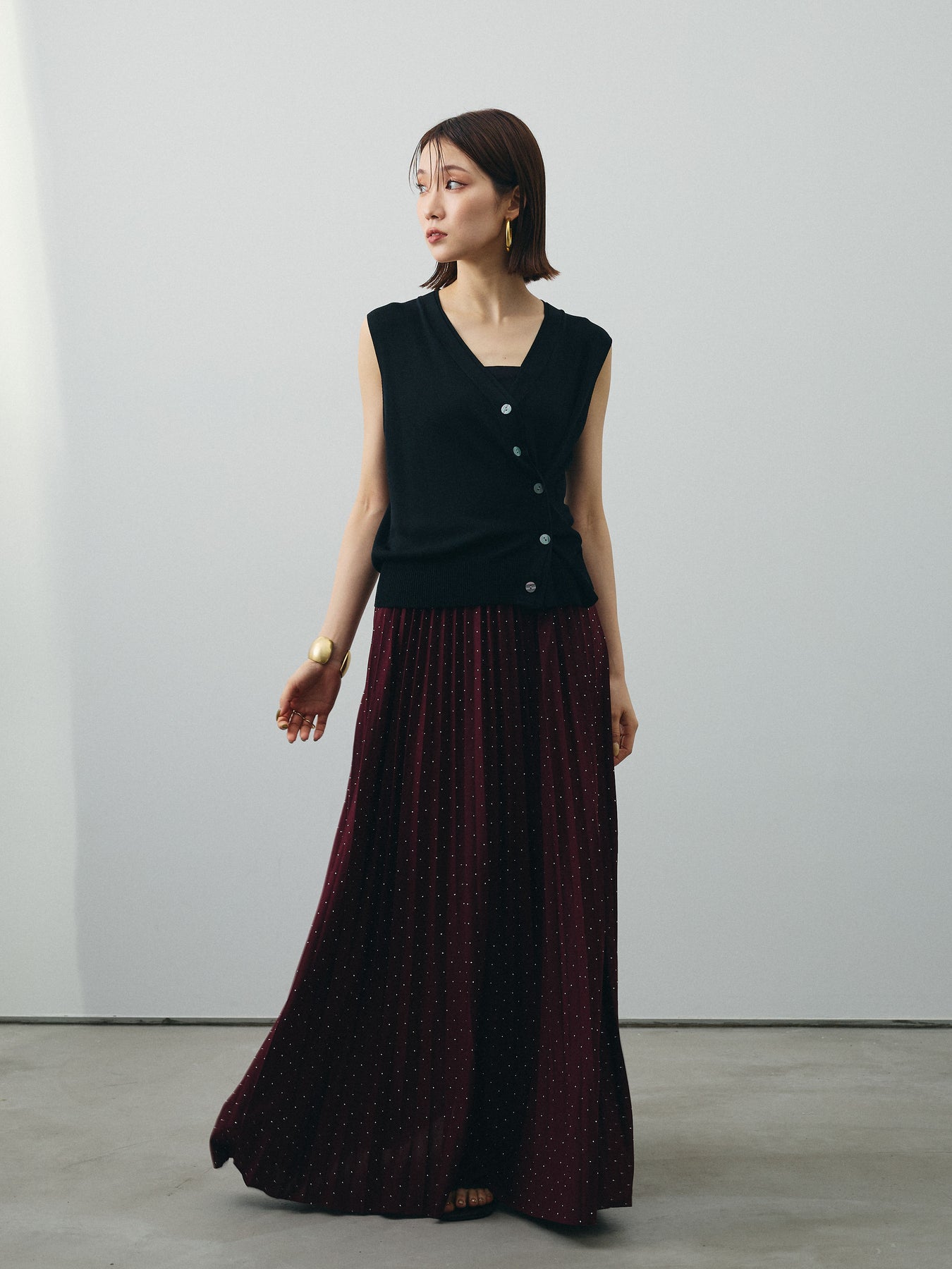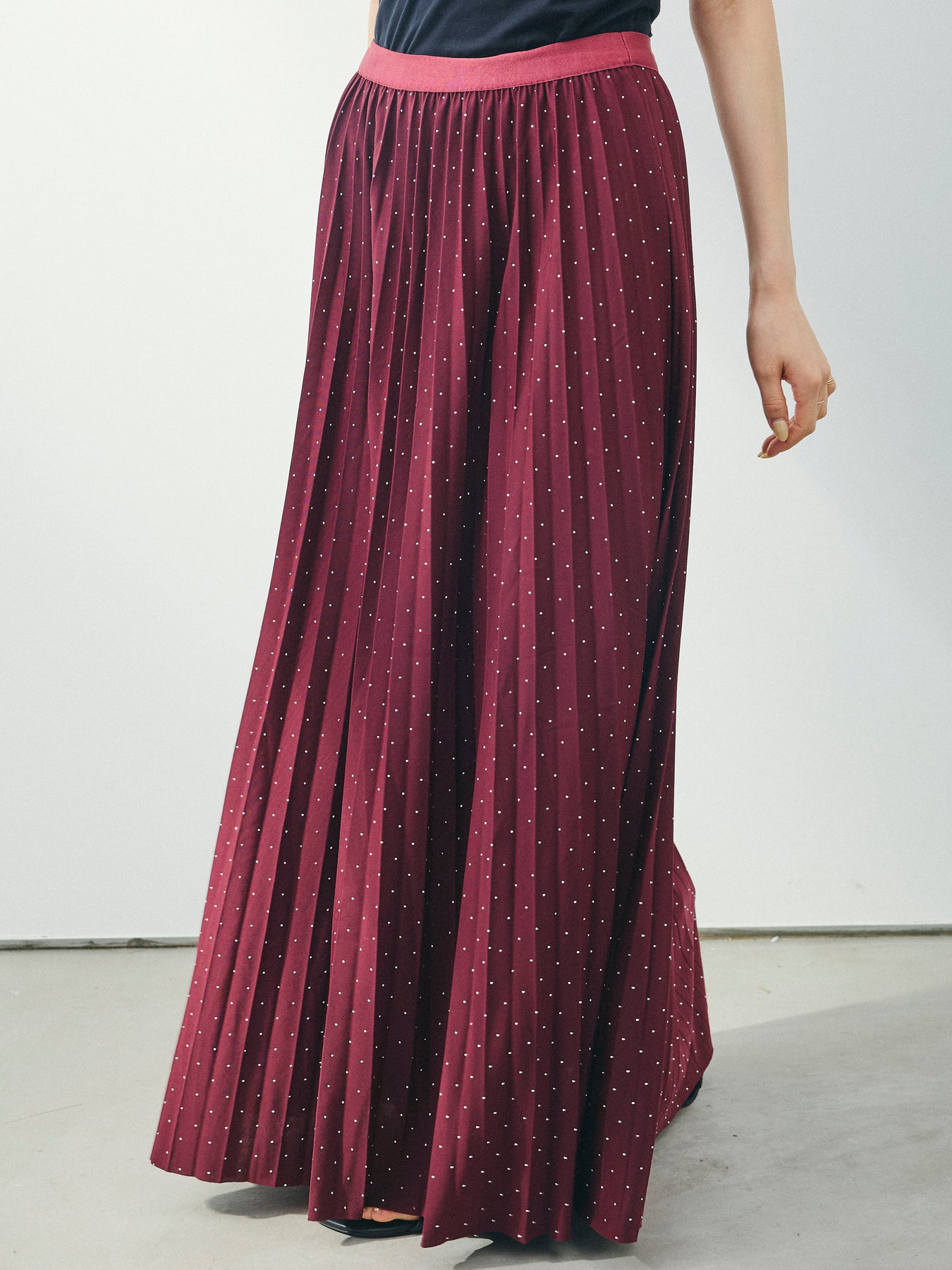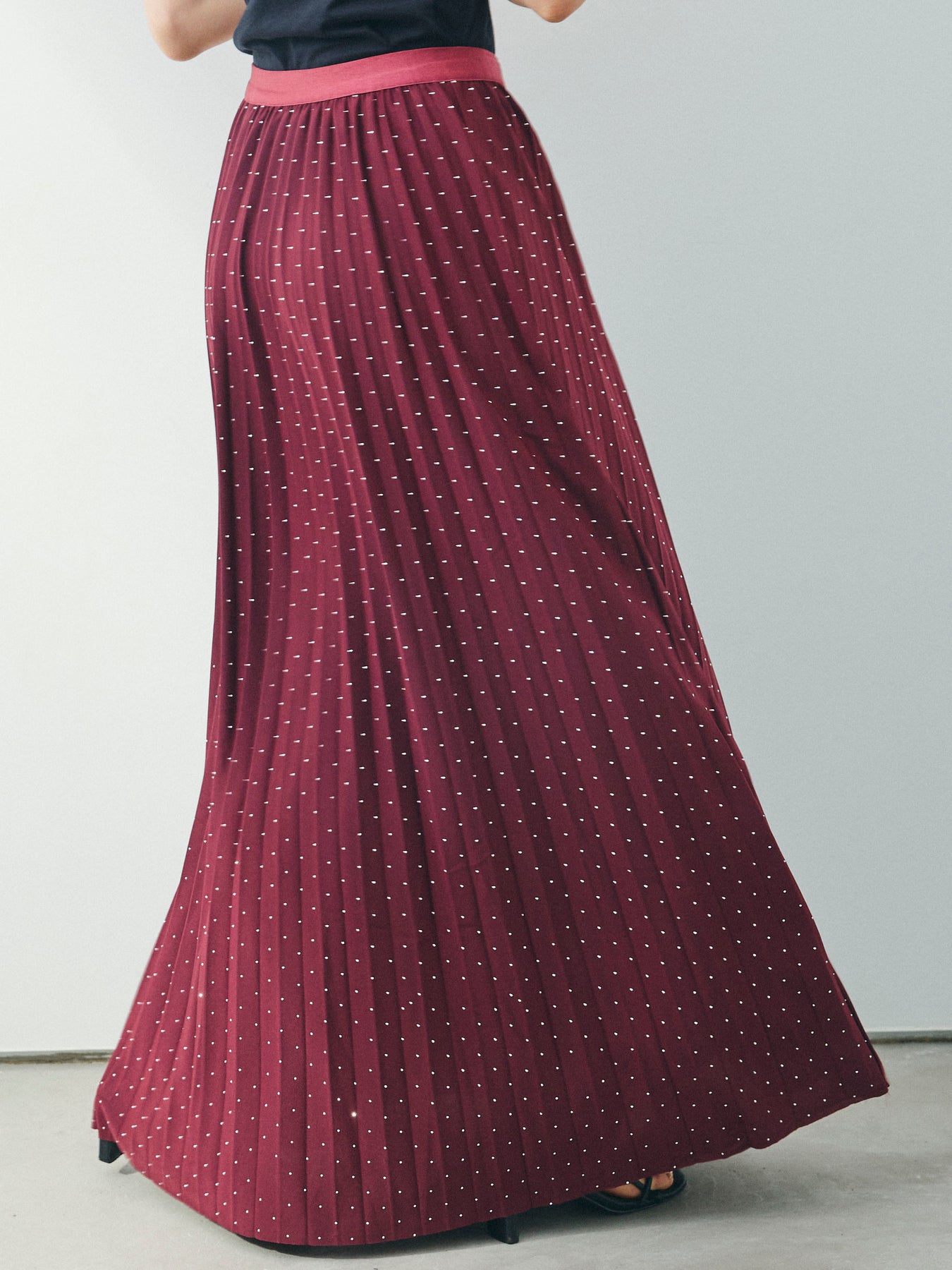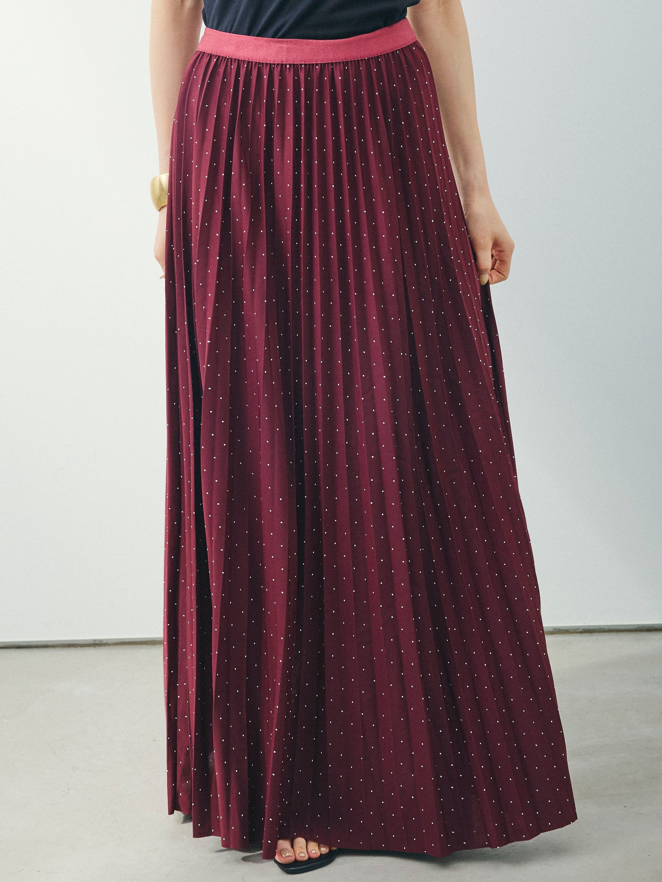 [予約]ラインストーンプリーツスカート/バーガンディー