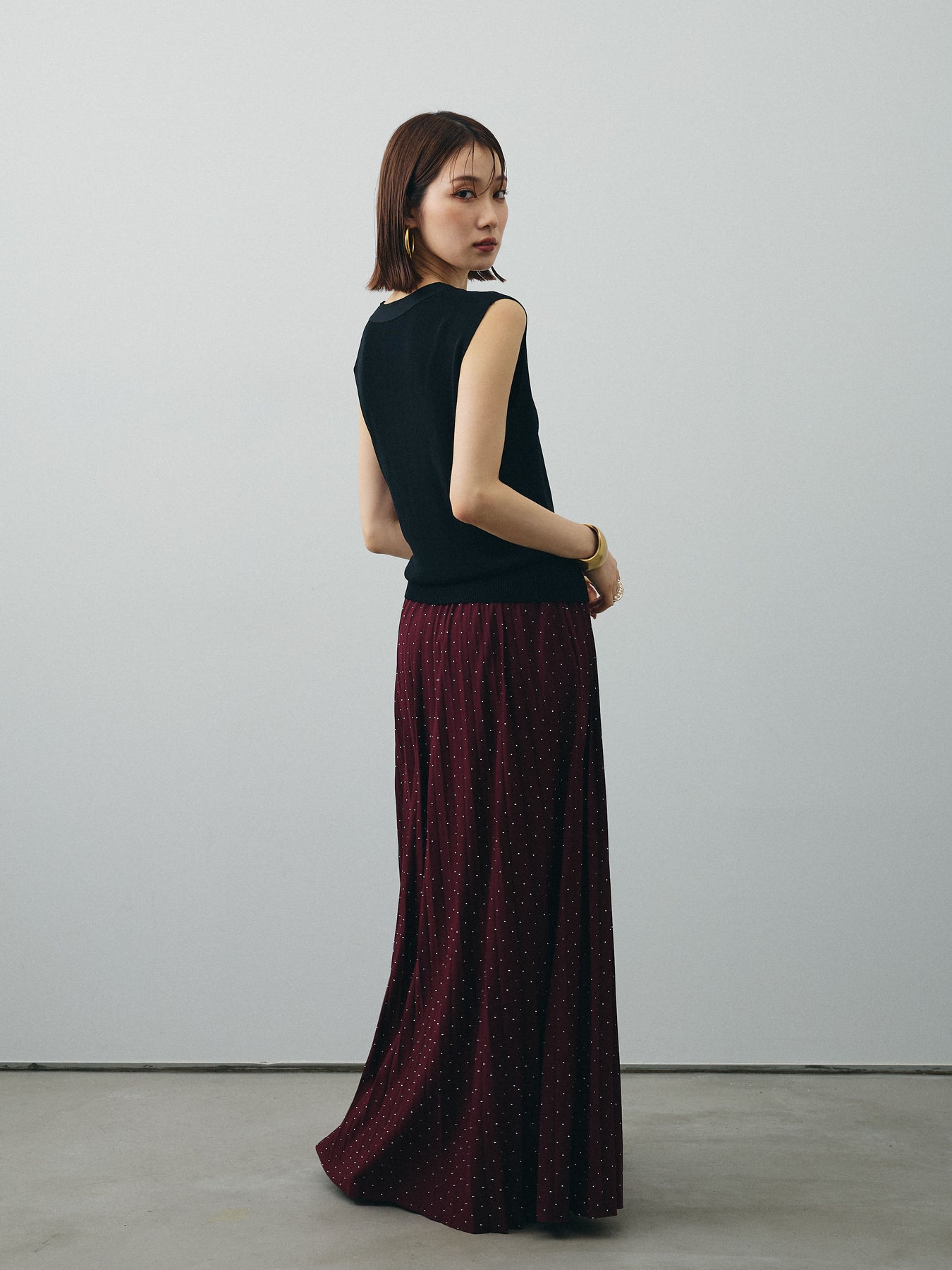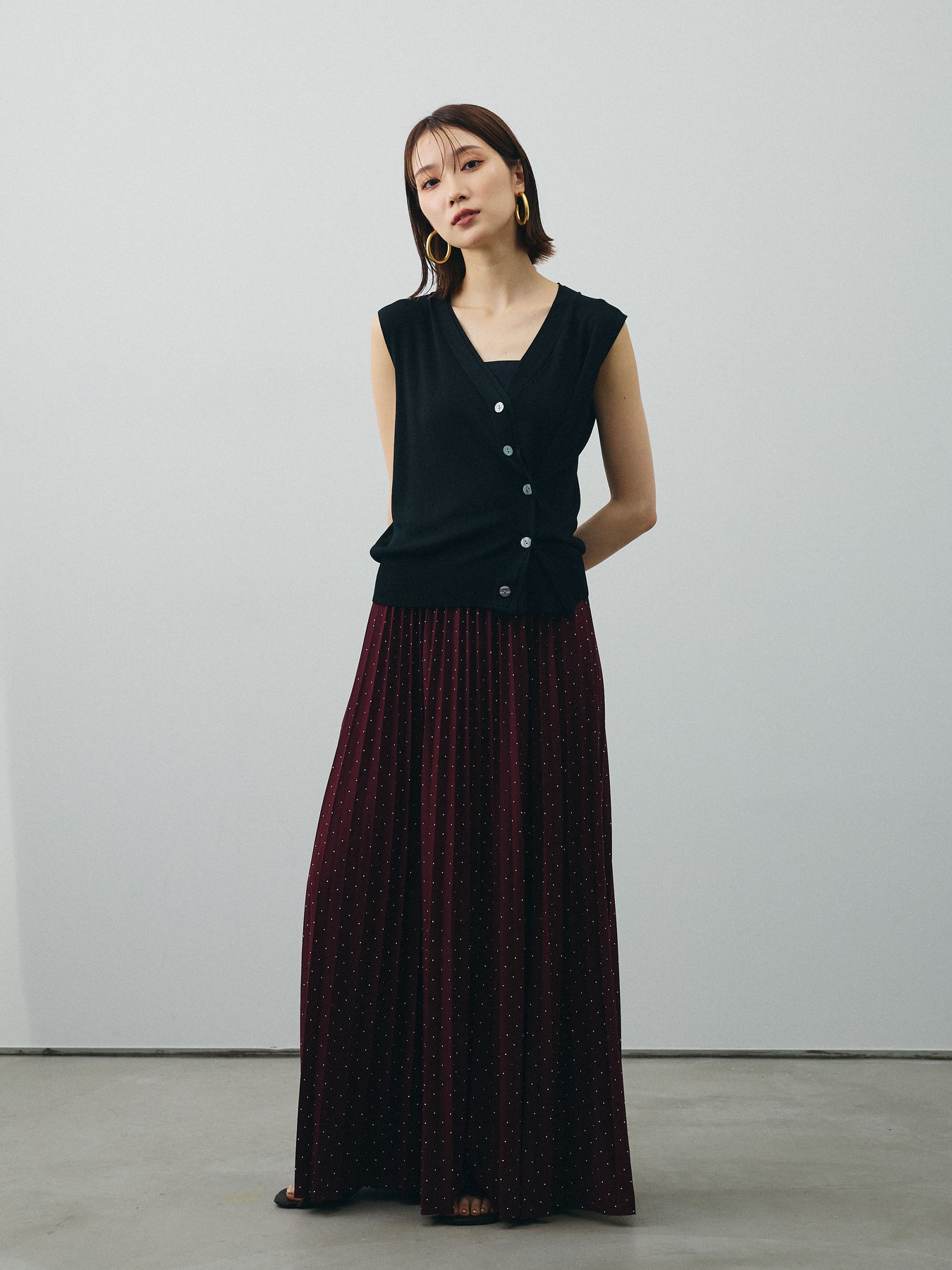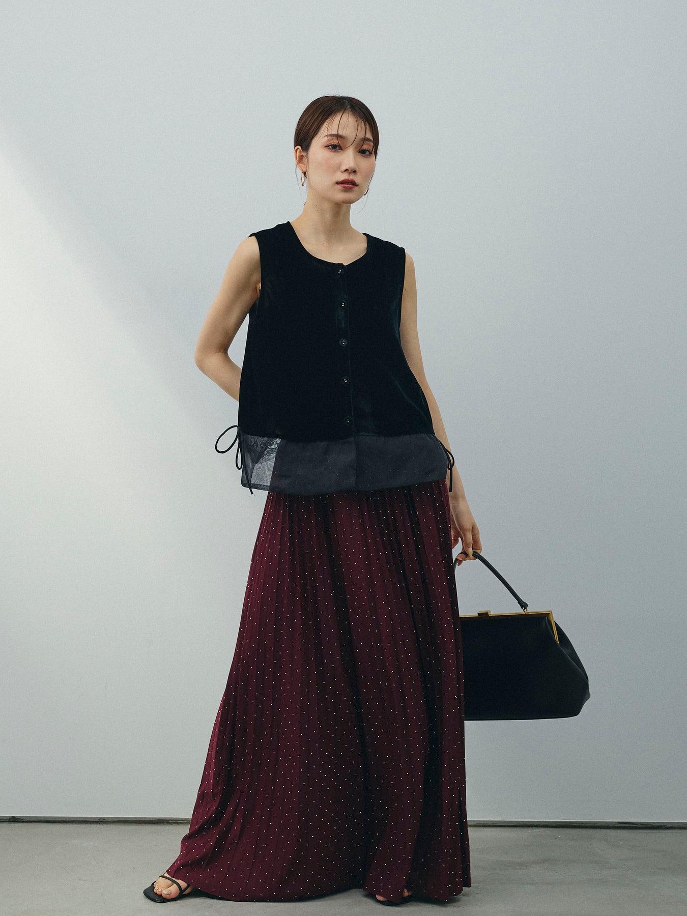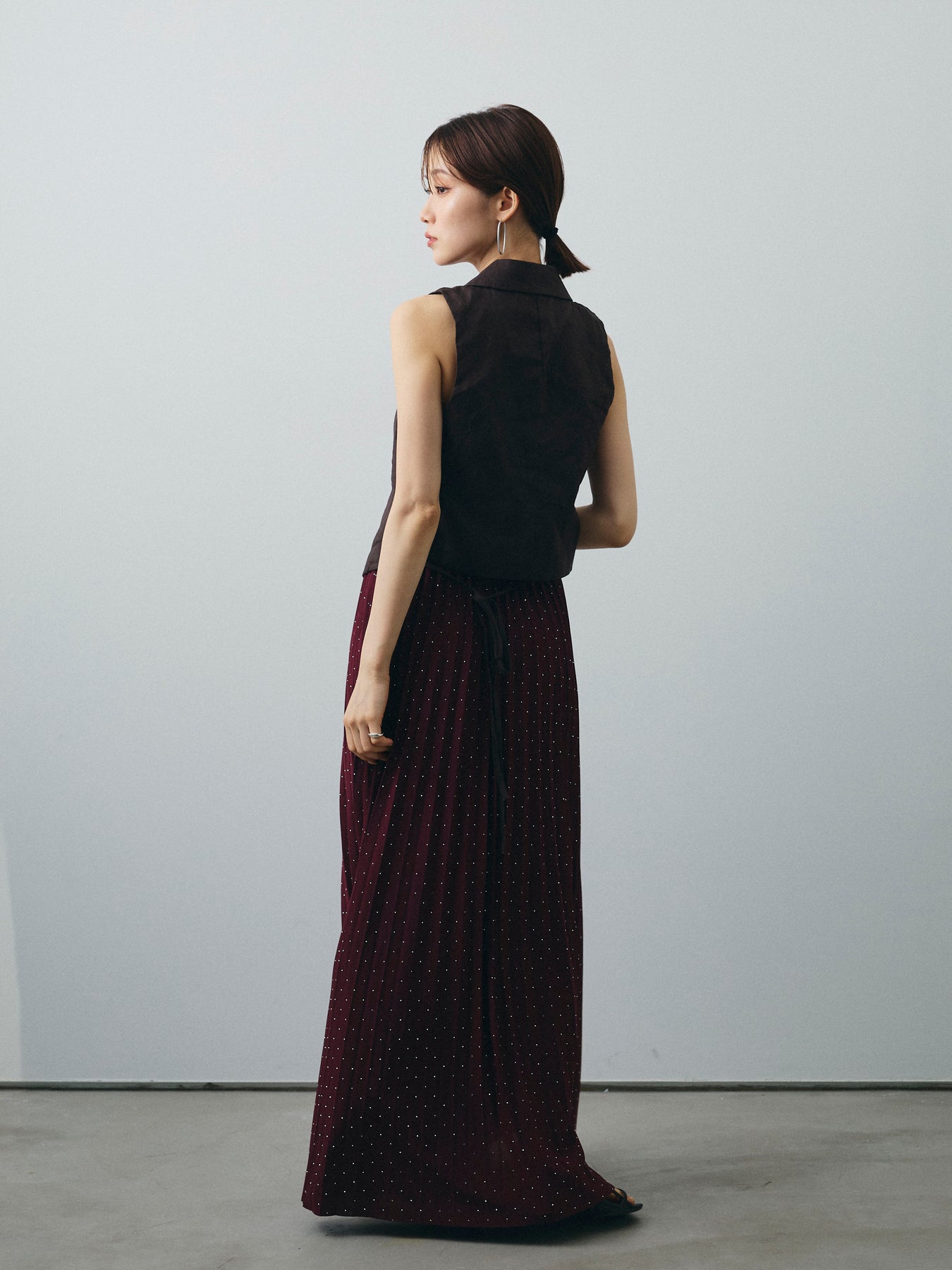 [予約]ラインストーンプリーツスカート/バーガンディー