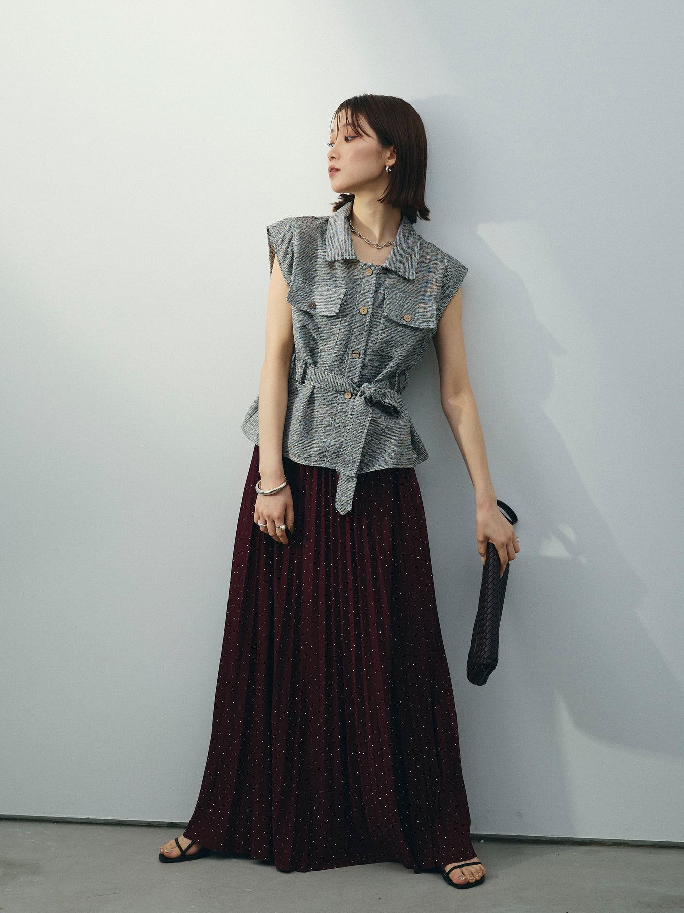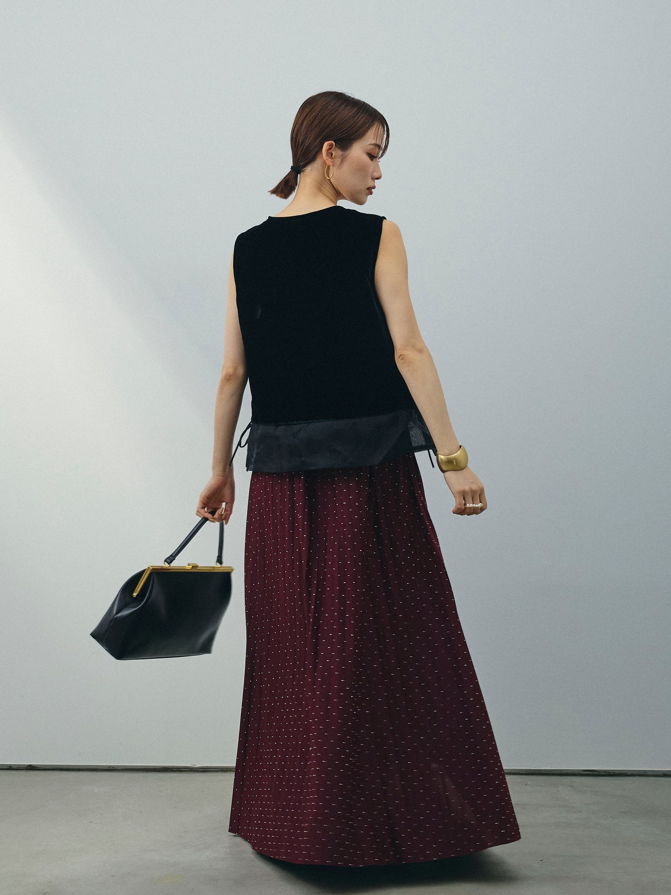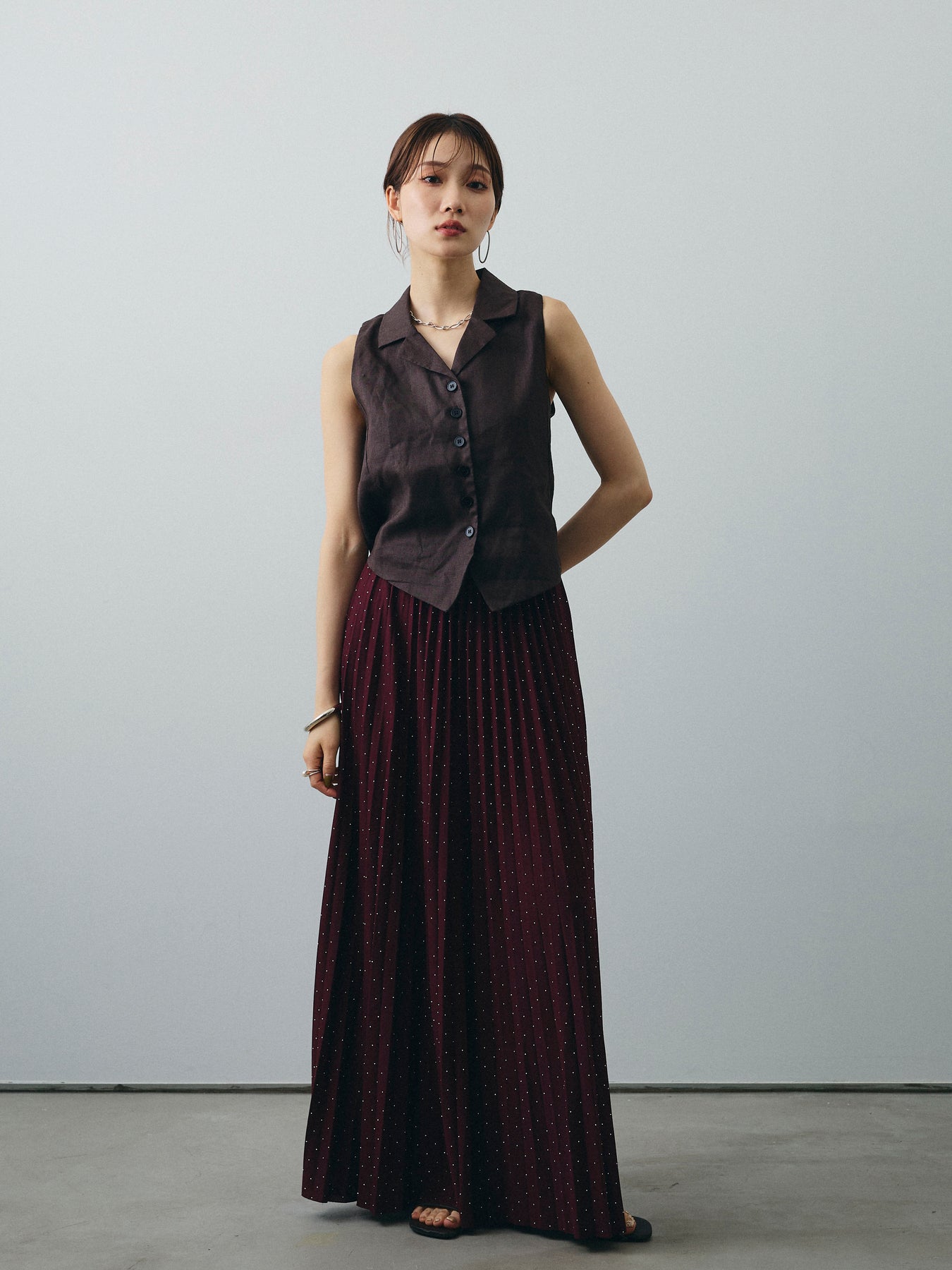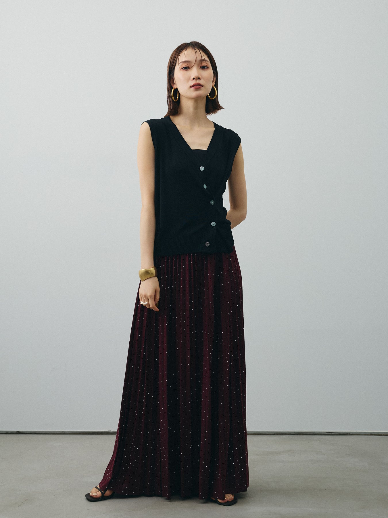 [予約]ラインストーンプリーツスカート/バーガンディー