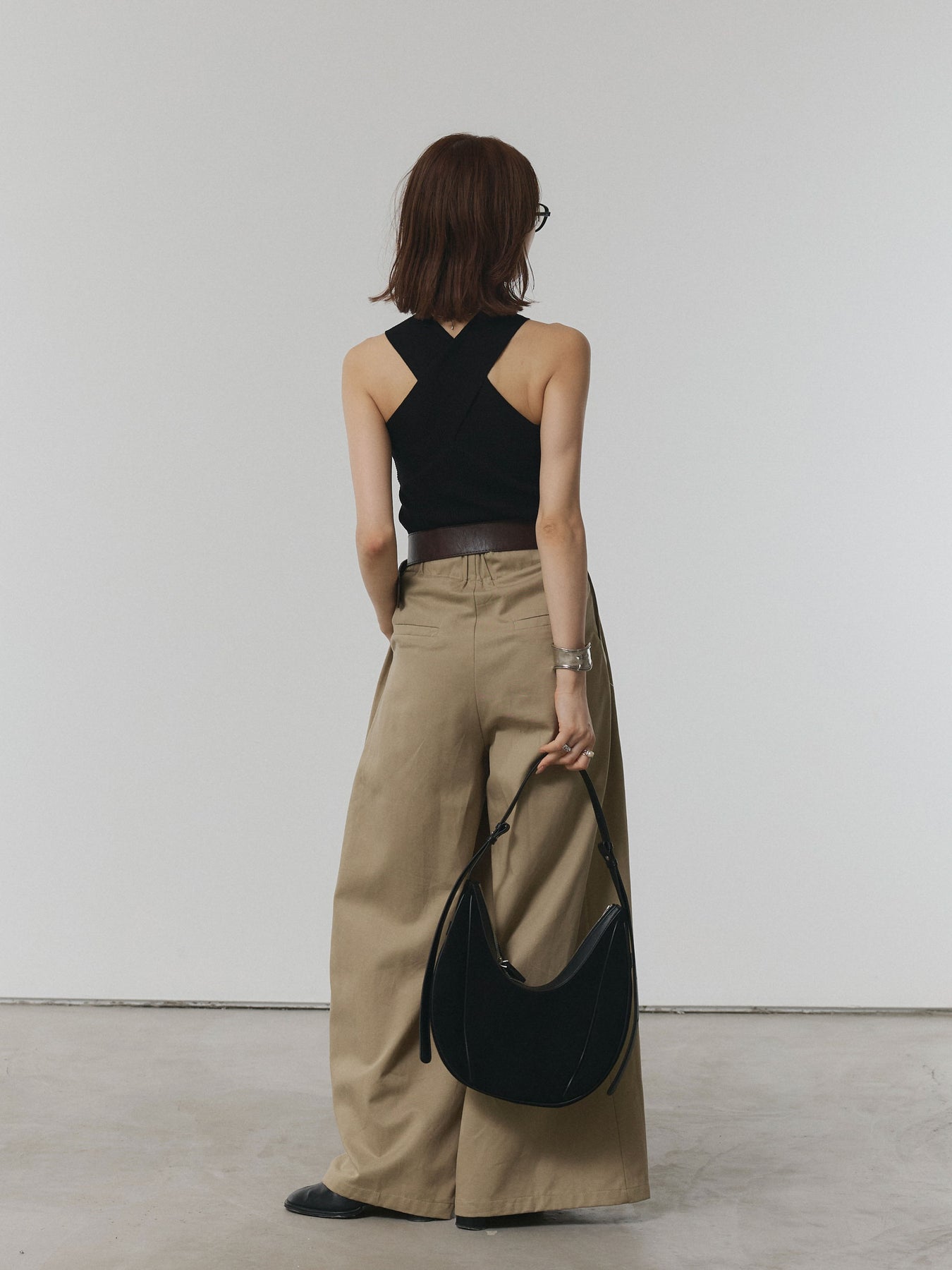 [予約]ベルト付ダブルループワイドパンツ/ベージュ