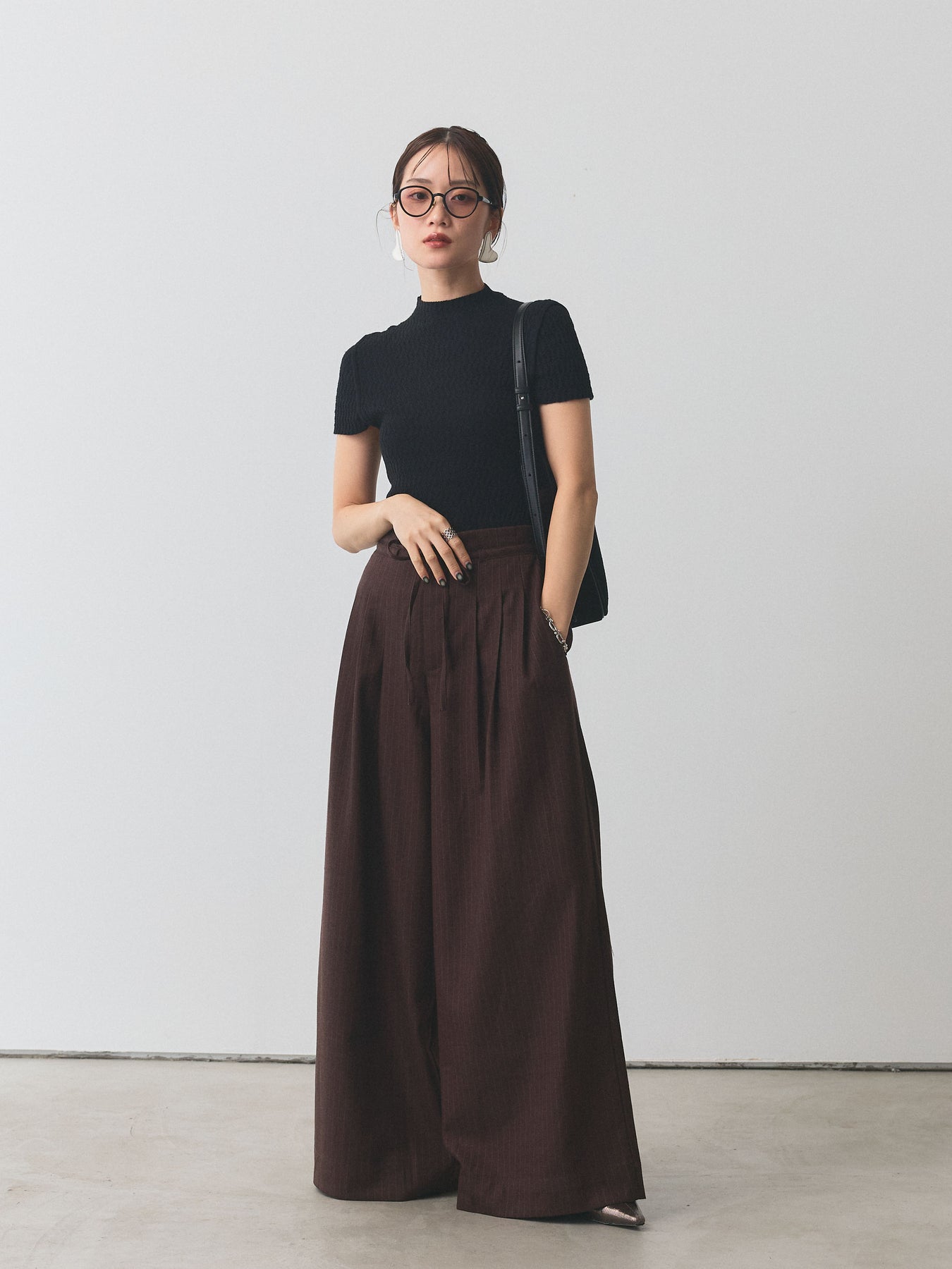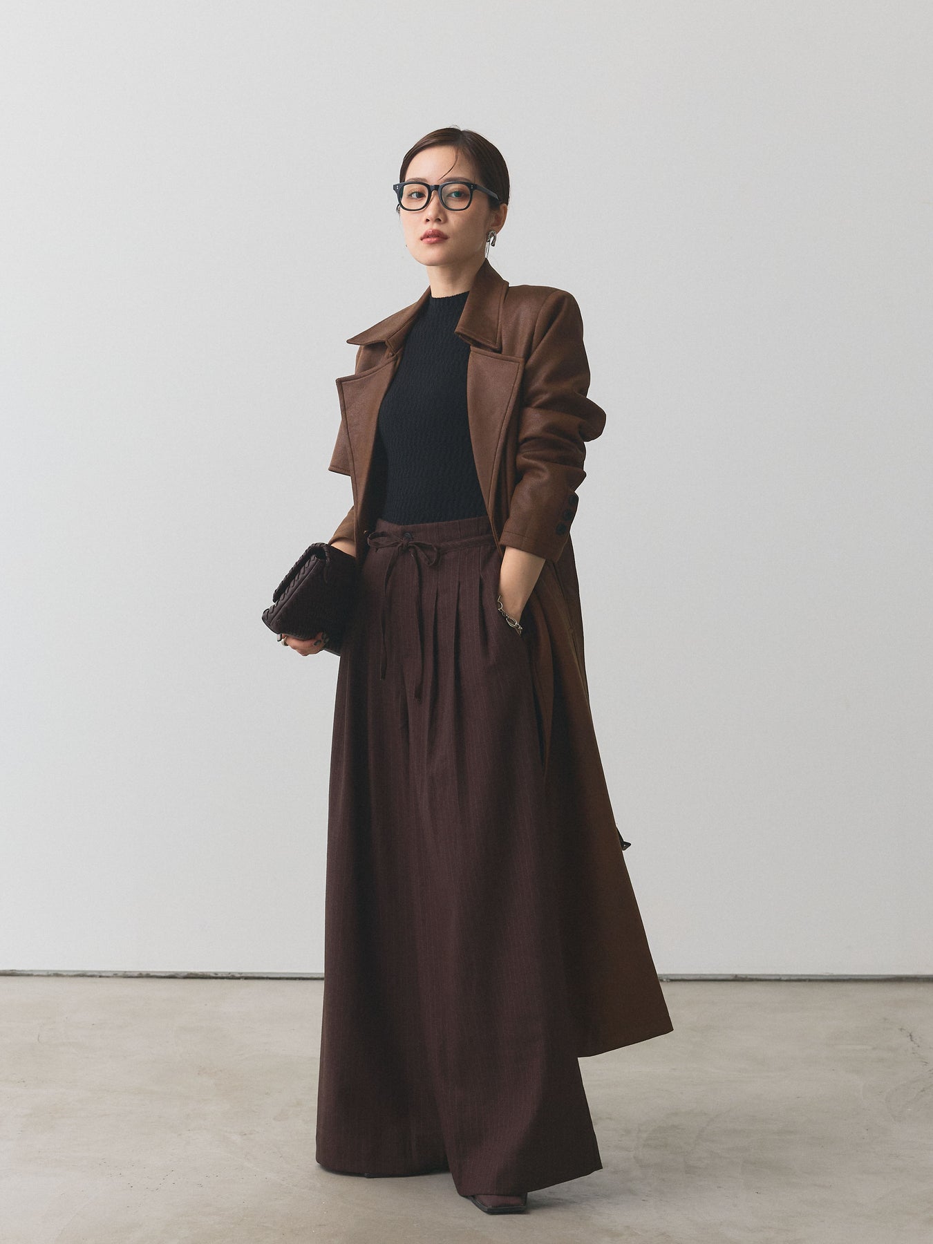 [予約]ウールライクストライプワイドパンツ/ブラウン