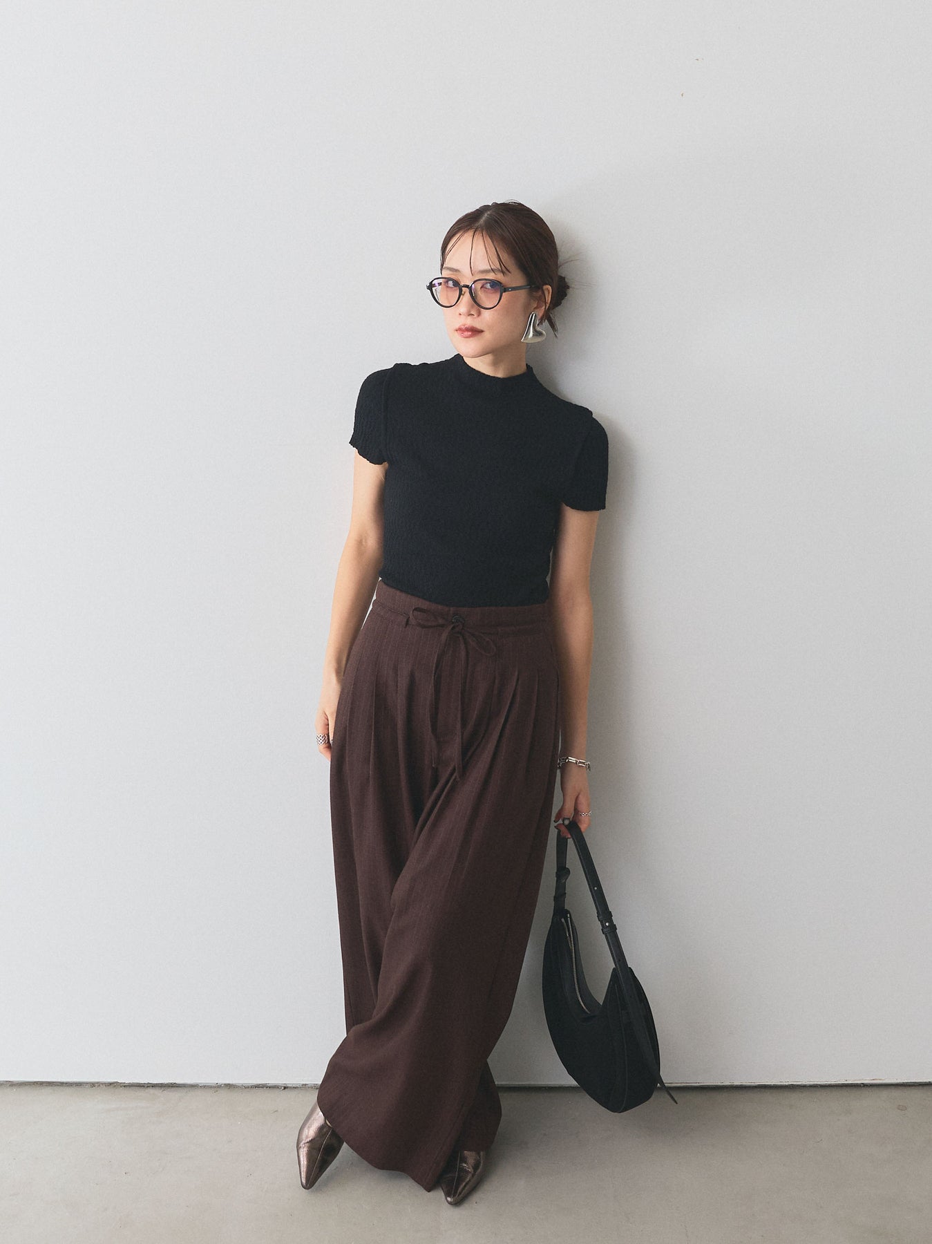 ウールライクな風合いと細かなストライプ柄が上品な印象を与えるワイドパンツ。フロントに施したタックとドローストリング仕様のウエストで、リラクシーな穿き心地ときちんと感を両立しています。落ち感のあるシルエットが美しいラインを描き、シンプルなトップスと合わせるだけでスタイリングが決まる一本。オフィスからデイリーまで幅広いシーンで活躍する万能アイテムです。