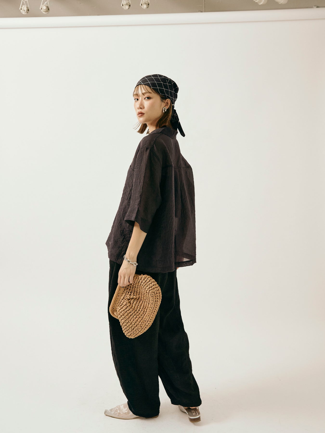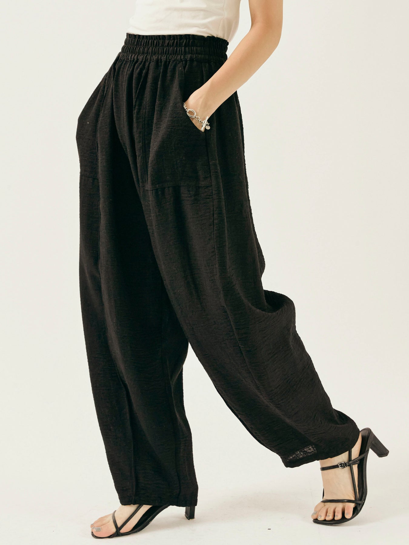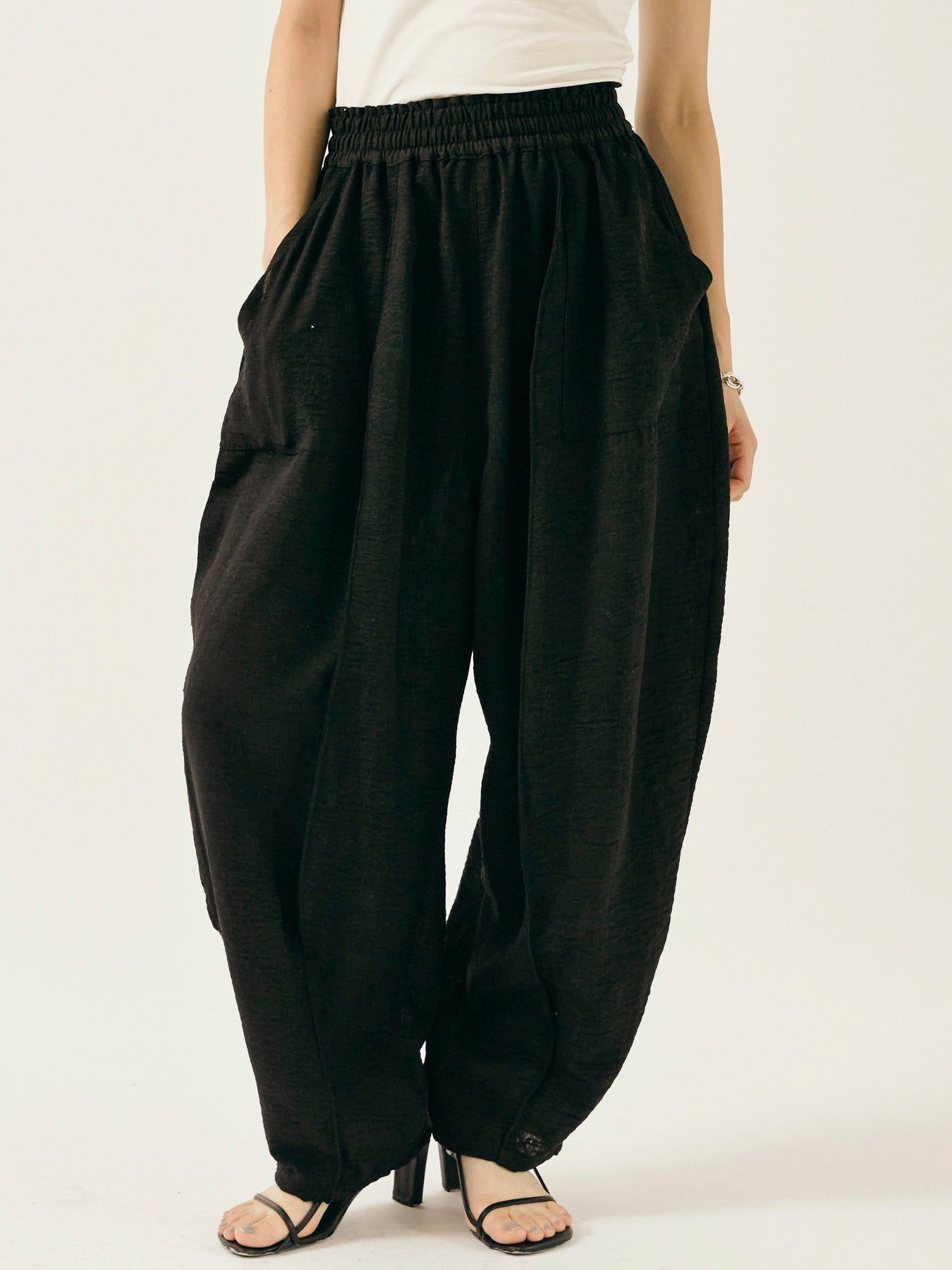 [予約]リネンライクベイカーバルーンパンツ/ブラック