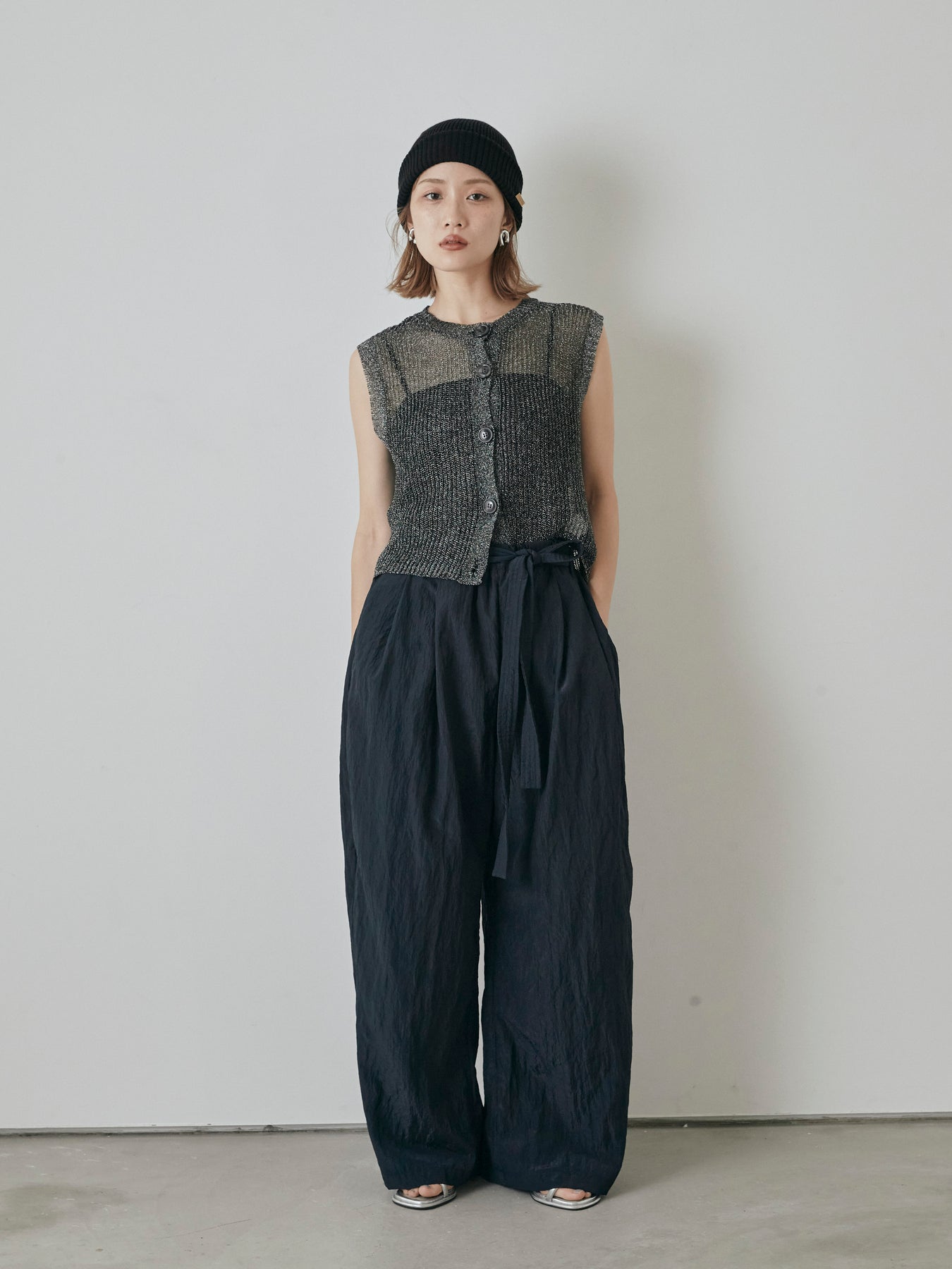 這款舒適的褲子採用輕質尼龍材質製成,並經過天然水洗處理,呈現出輕鬆、成熟的外觀。 它質地光滑,貼膚舒適,即使在炎熱的天氣穿著也很舒適。 腰部採用鬆緊帶設計,並配有相同面料製成的絲帶腰帶,穿著舒適,外觀時尚。 寬大的輪廓恰到好處地垂落到下擺,給人一種輕鬆而優雅的印象,但又不會太過粗魯。 它可以與 T 卹或背心隨意搭配,也可以與襯衫搭配以打造更時尚的外觀。 這是一款用途廣泛的物品,非常適合旅行或一英里的行走時穿著。