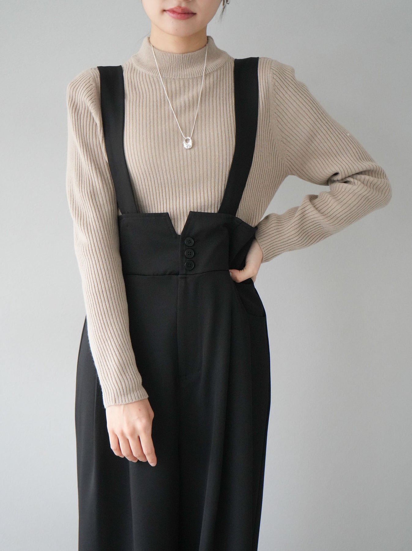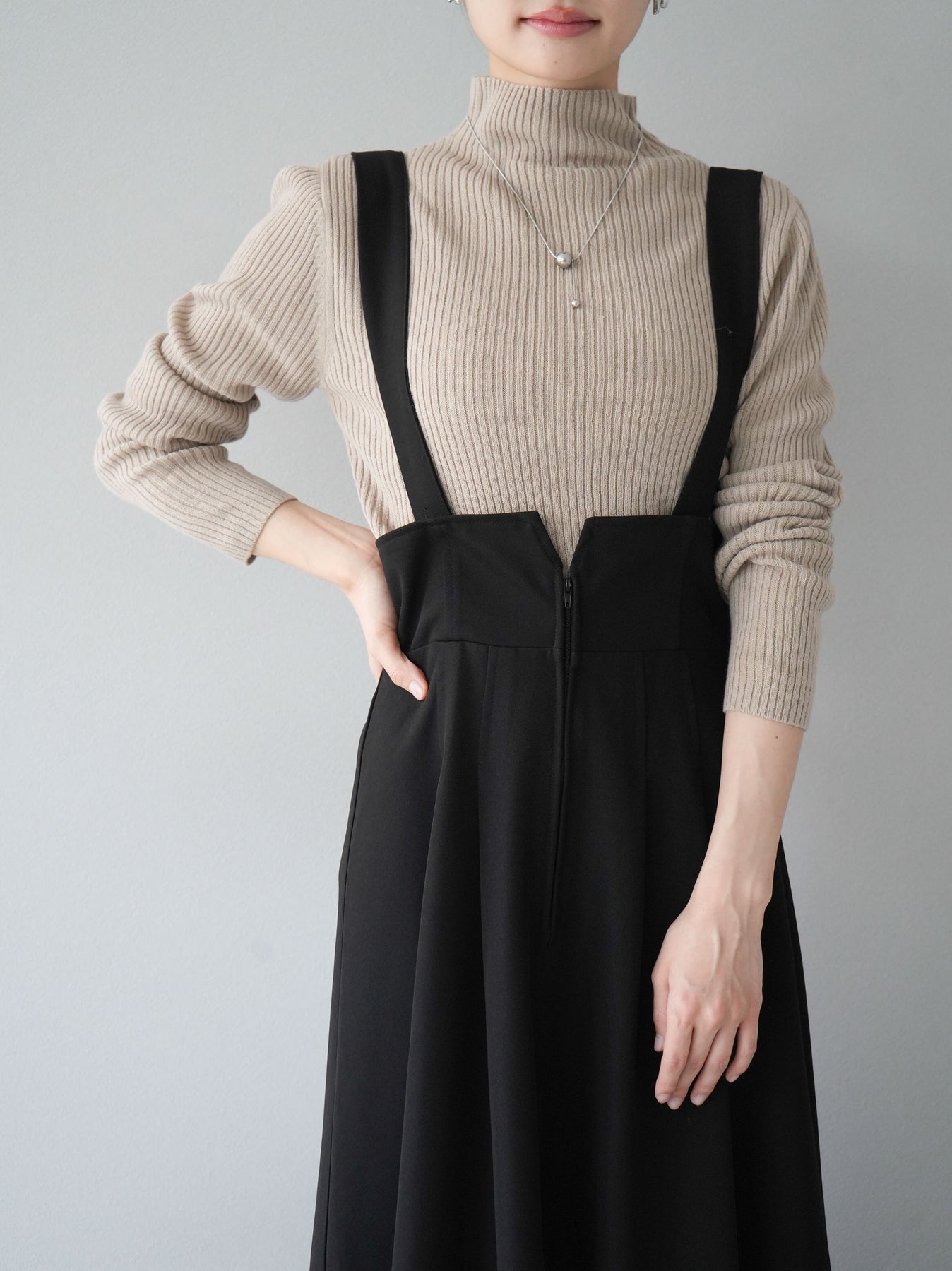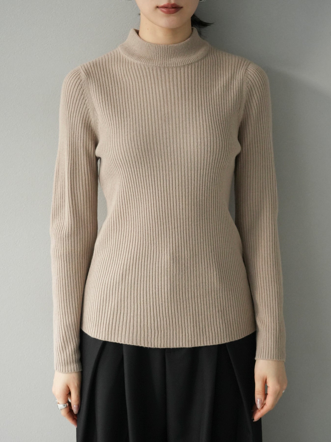 瓶頸式羅紋針織上衣,設計精美、精緻。完美的貼合創造出美麗的輪廓,並且多種流行的顏色使您可以隨心所欲地設計風格。柔軟而有彈性的材質使其穿著舒適。 ※除下裝、吊帶背心(內衣)以外的所有商品均不包含內衣。