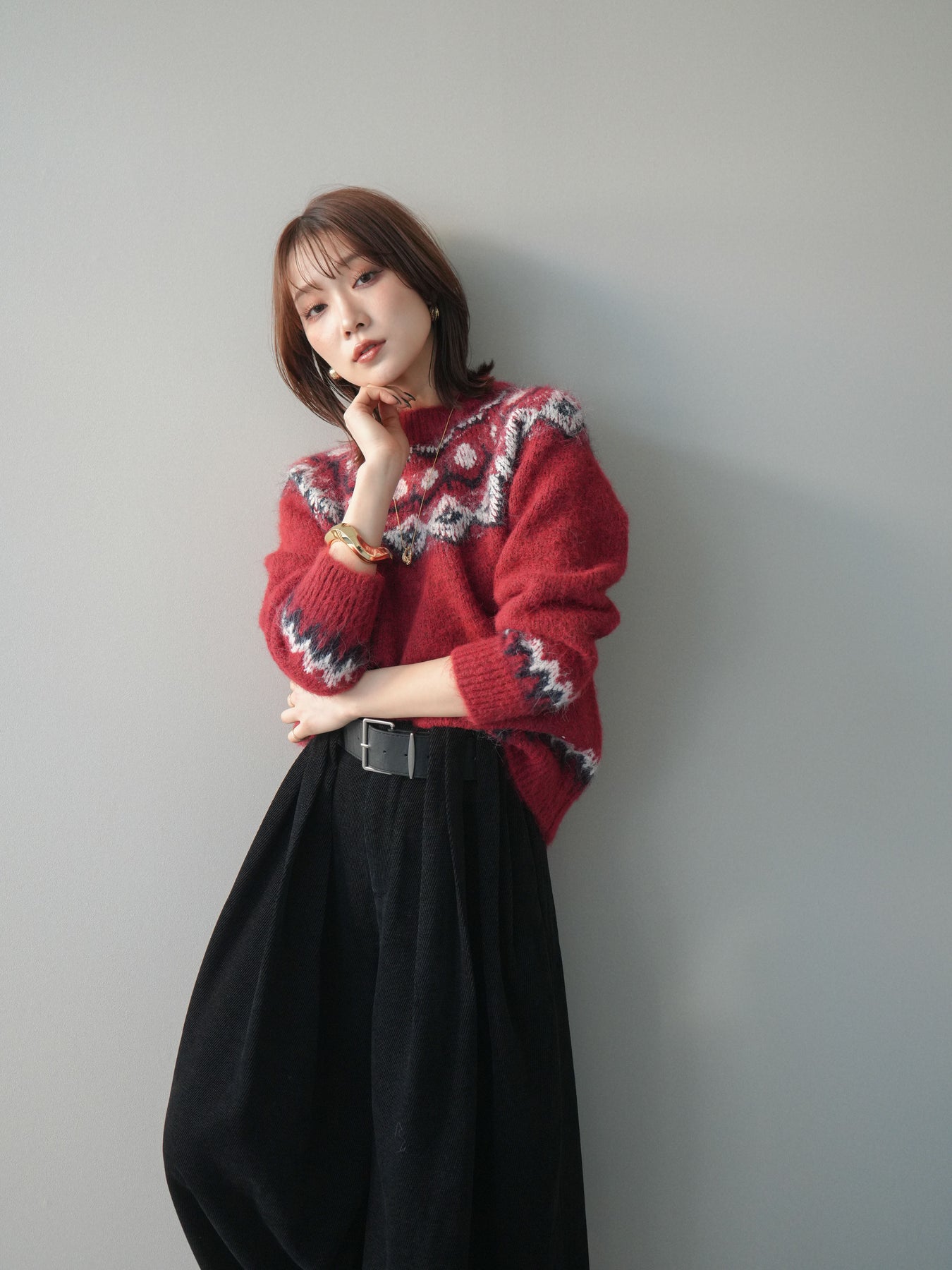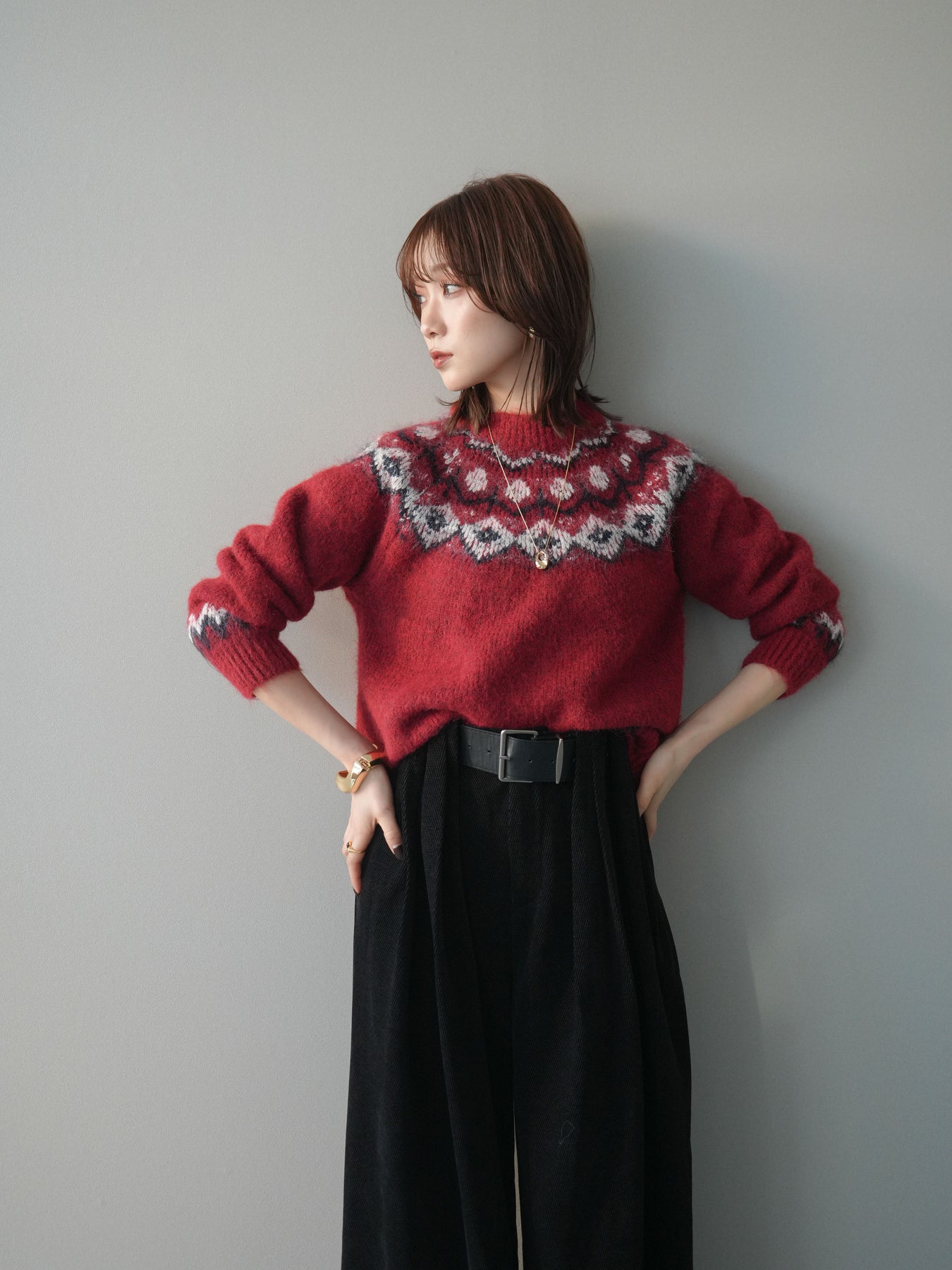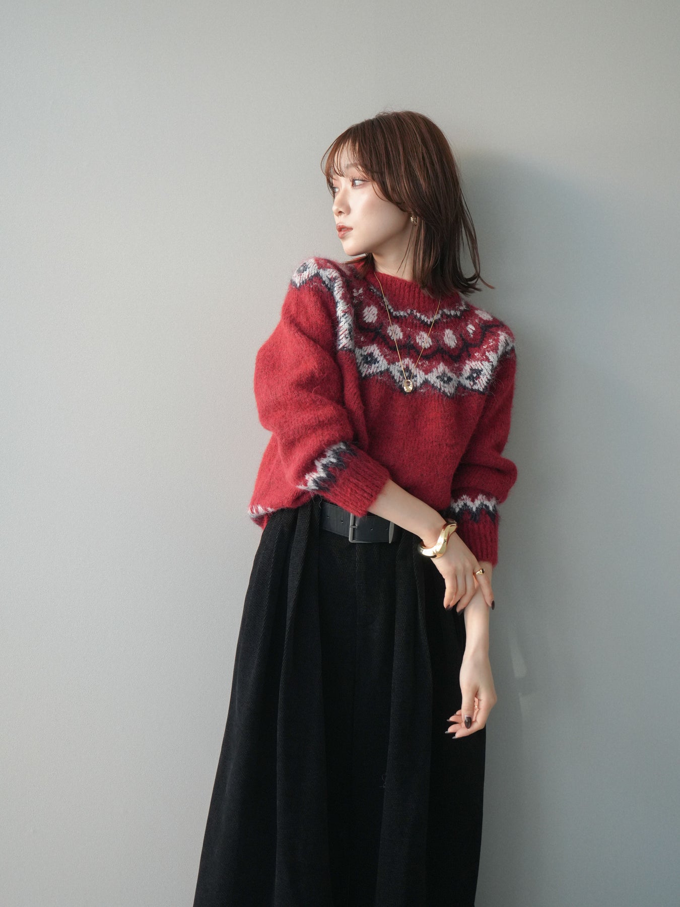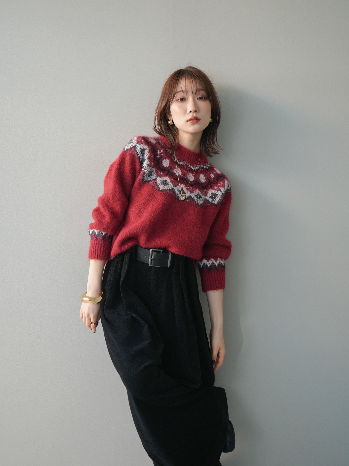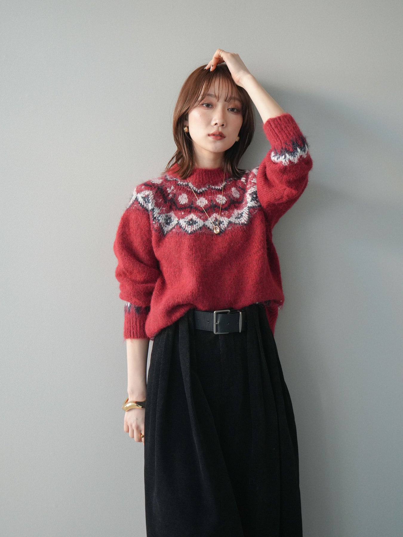 [予約]ソフトタッチ求心柄ニットプルオーバー/red