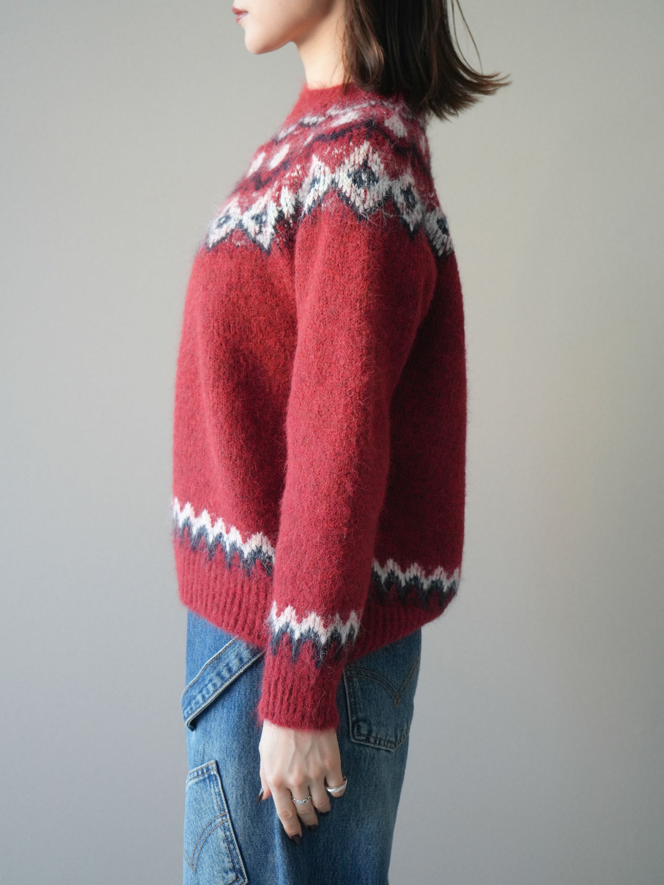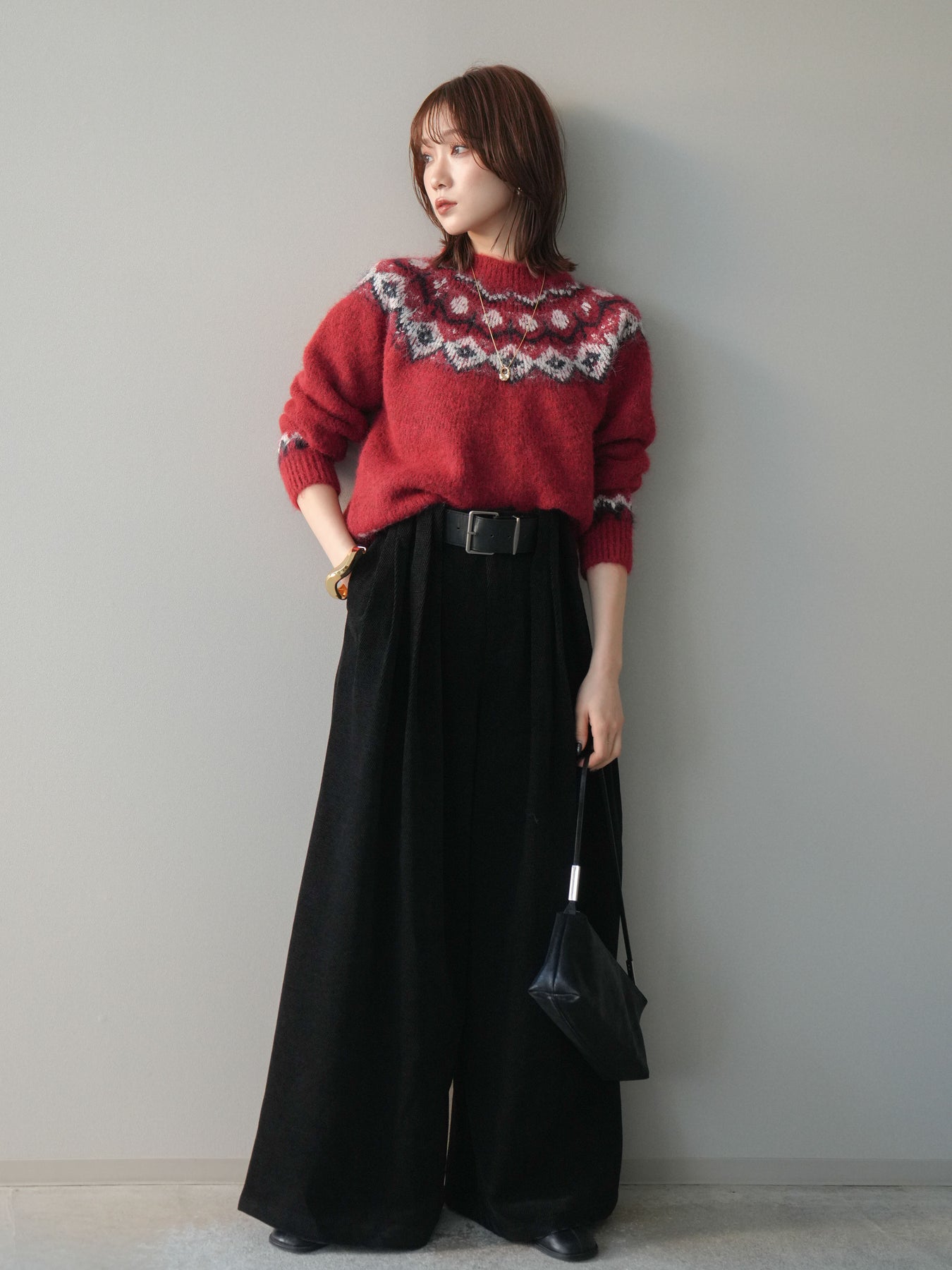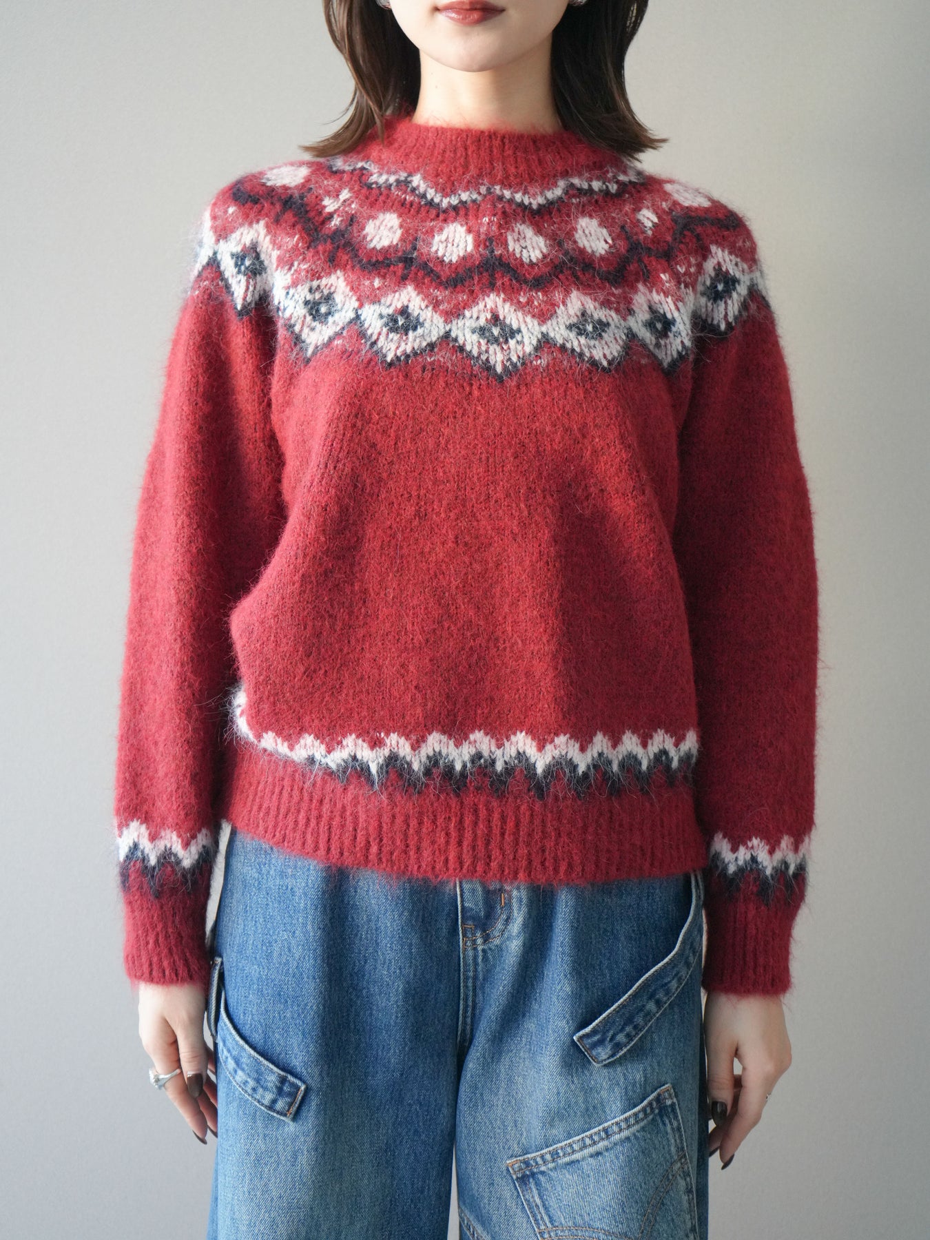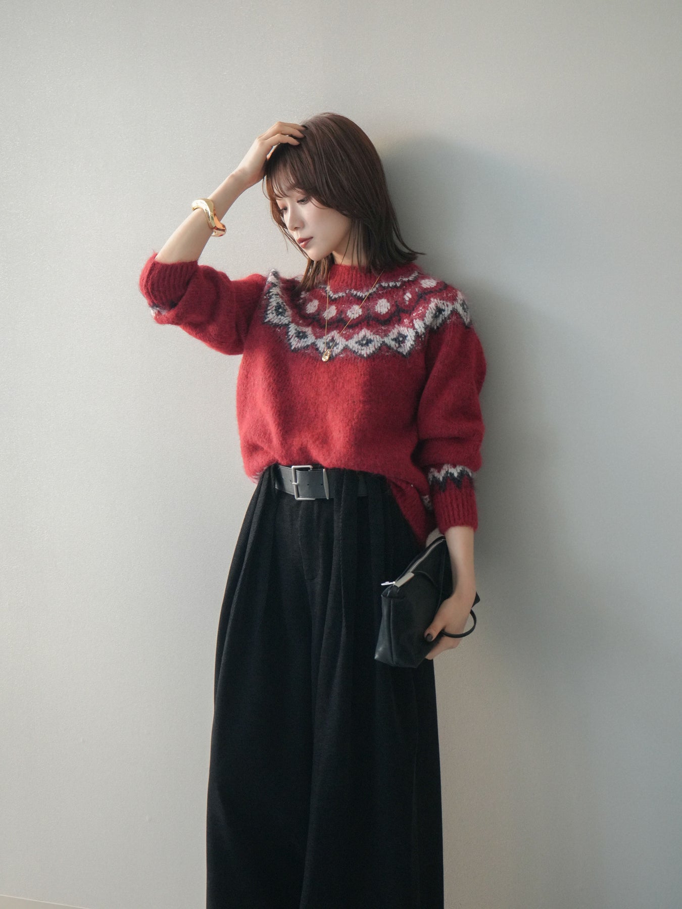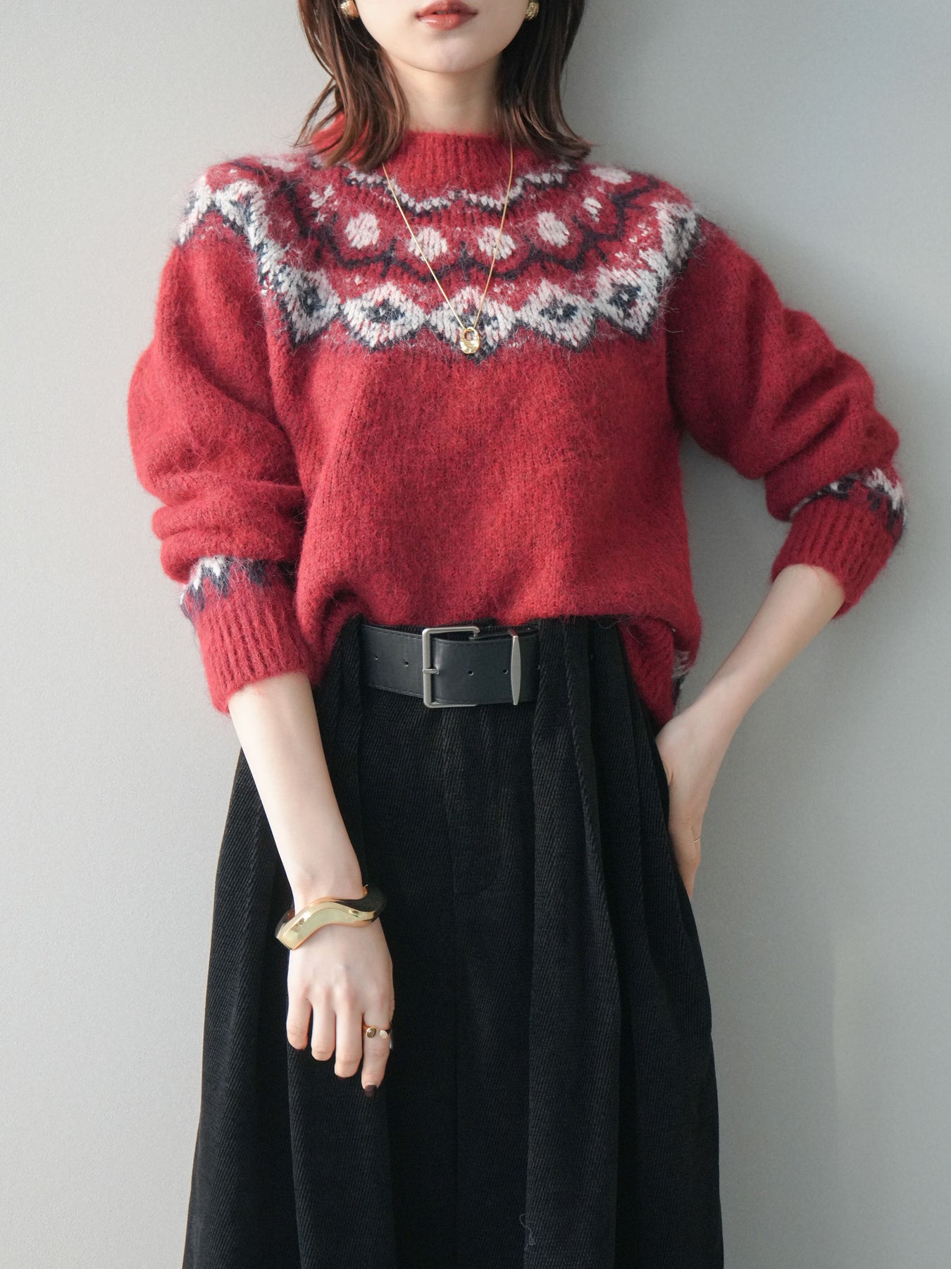 [予約]ソフトタッチ求心柄ニットプルオーバー/red