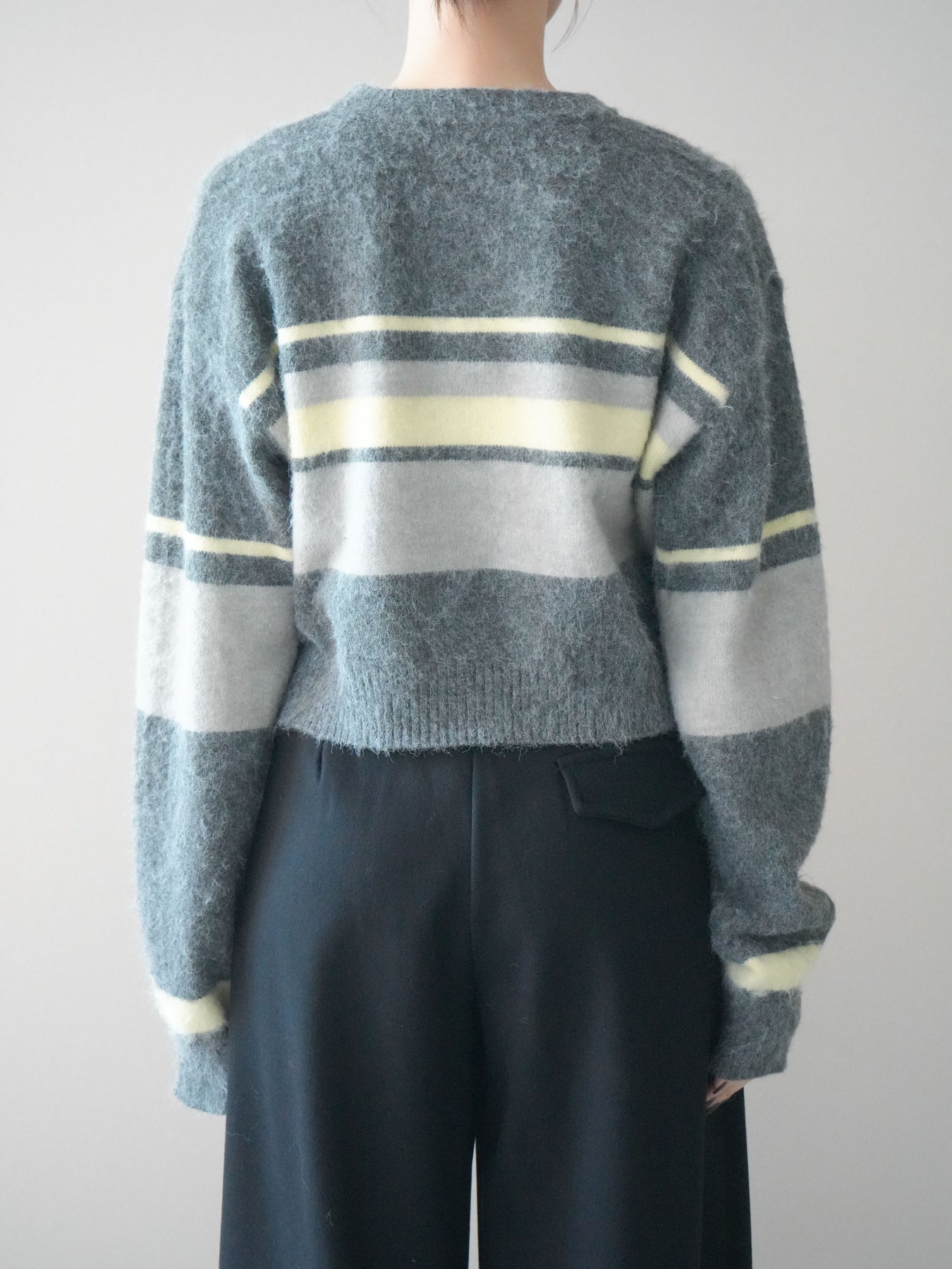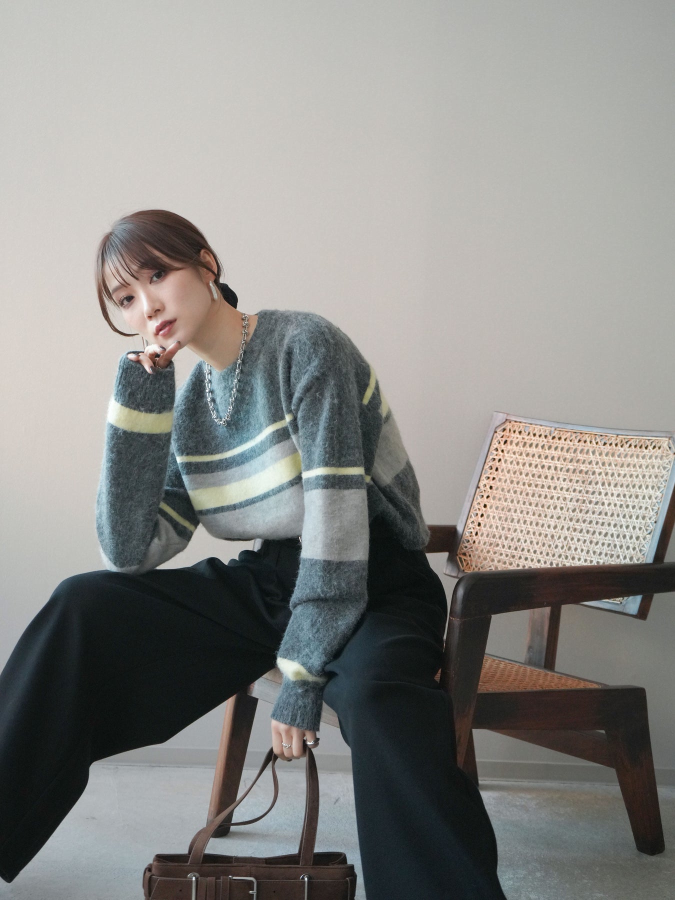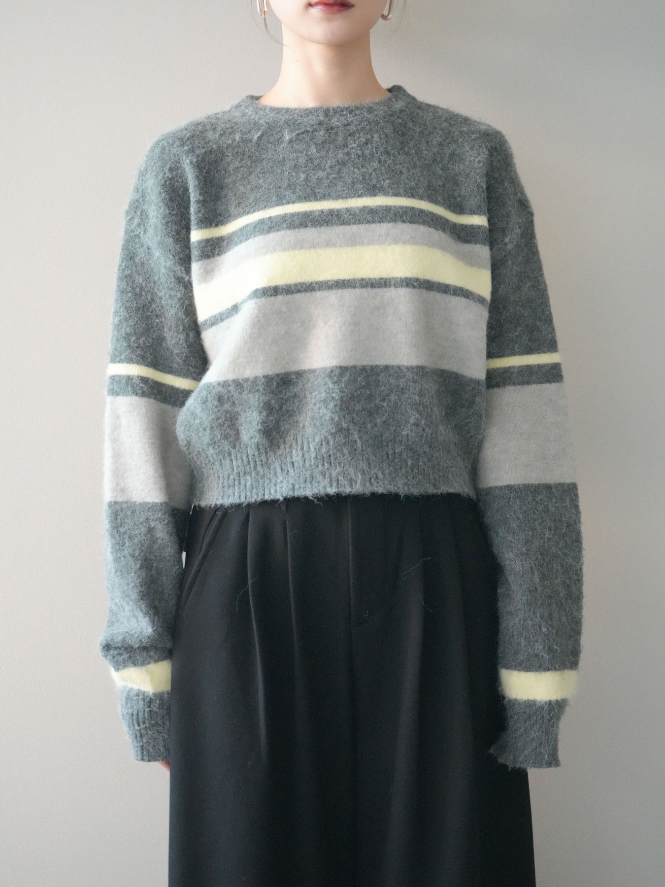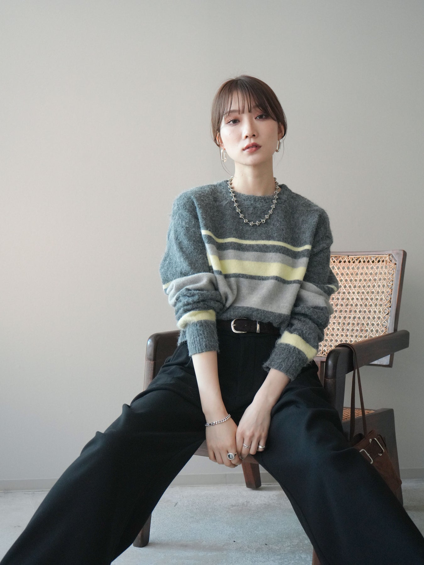 [予約]ソフトタッチボーダークロップドニットプルオーバー/charcoal