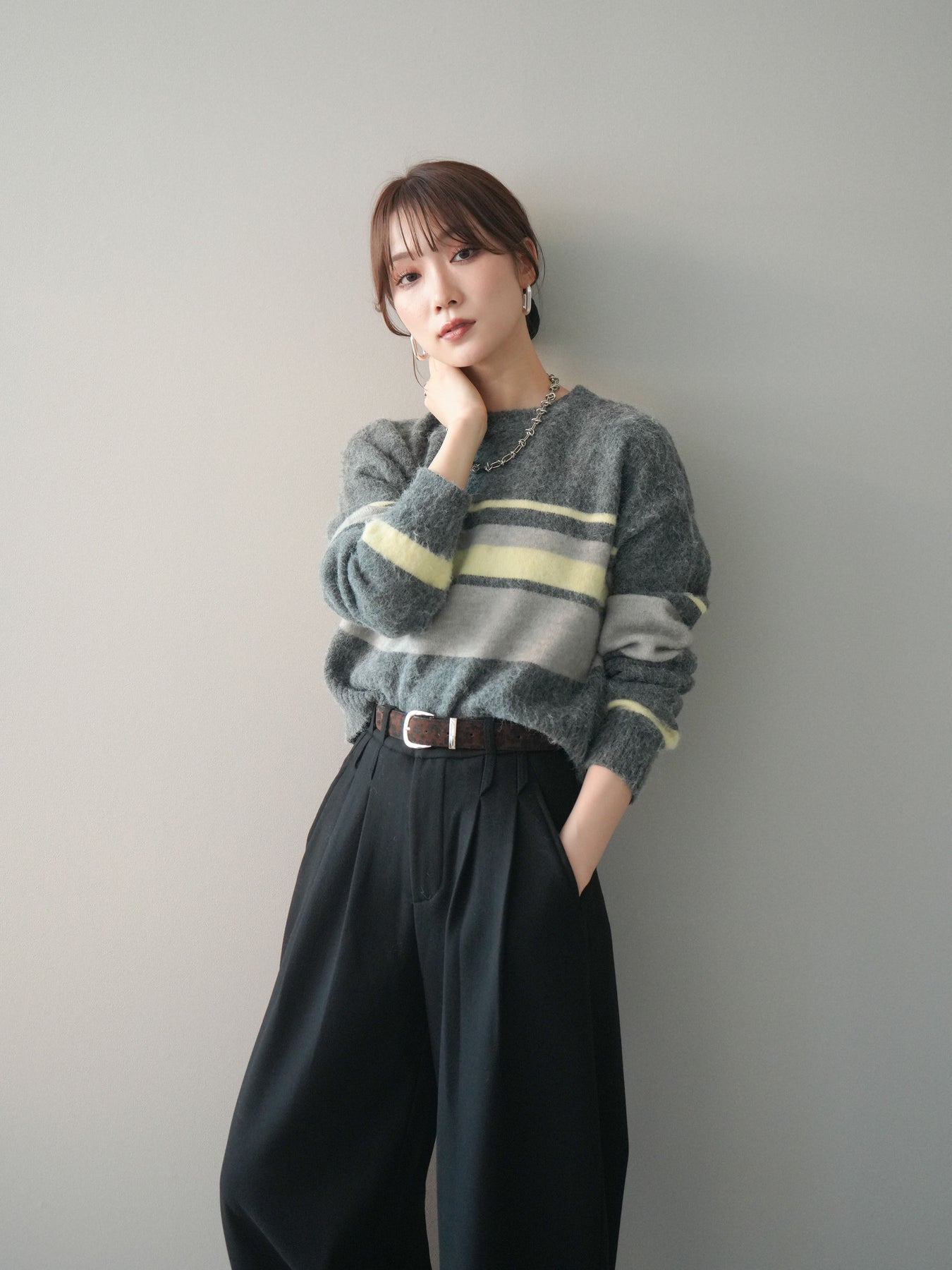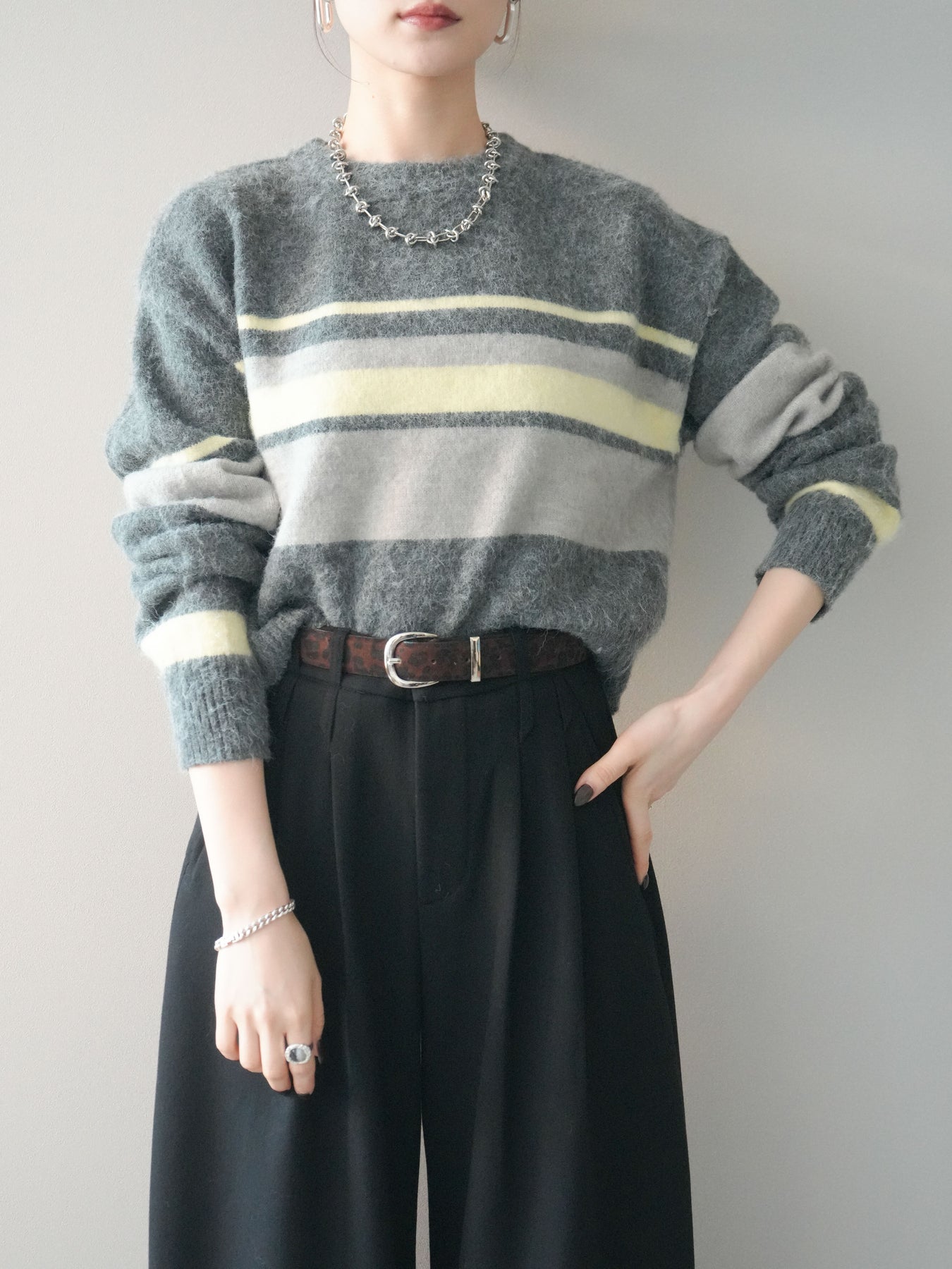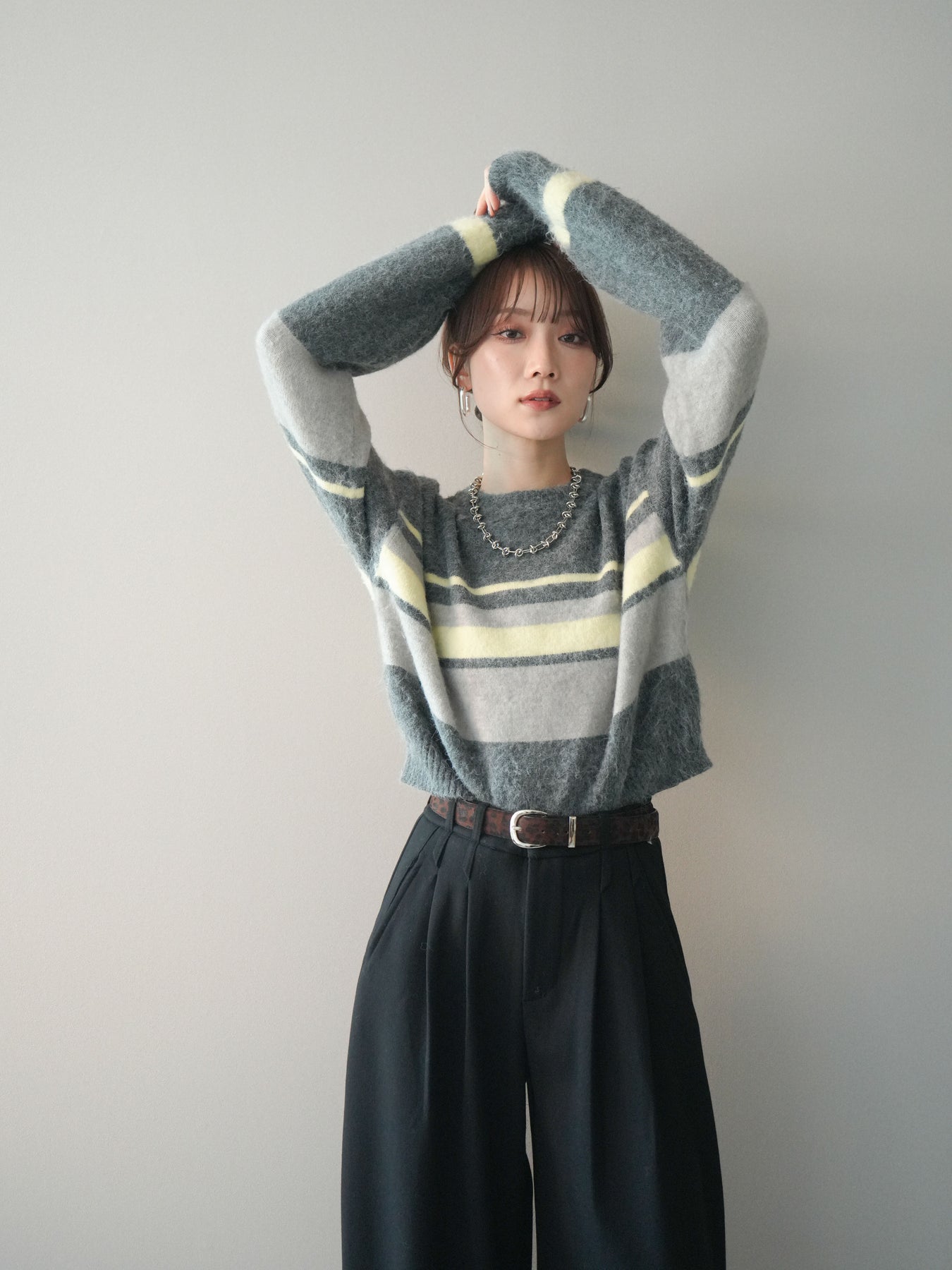 [予約]ソフトタッチボーダークロップドニットプルオーバー/charcoal