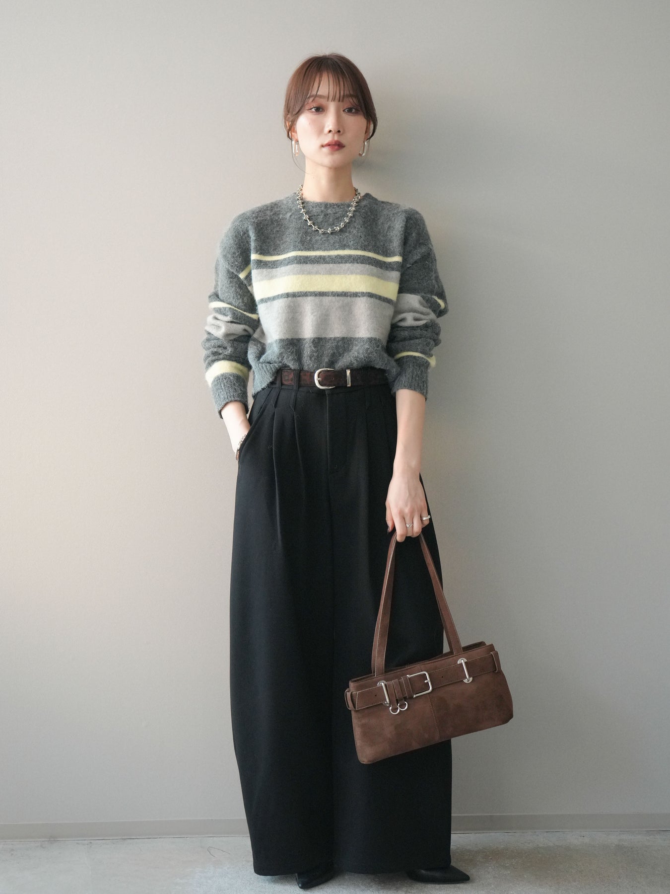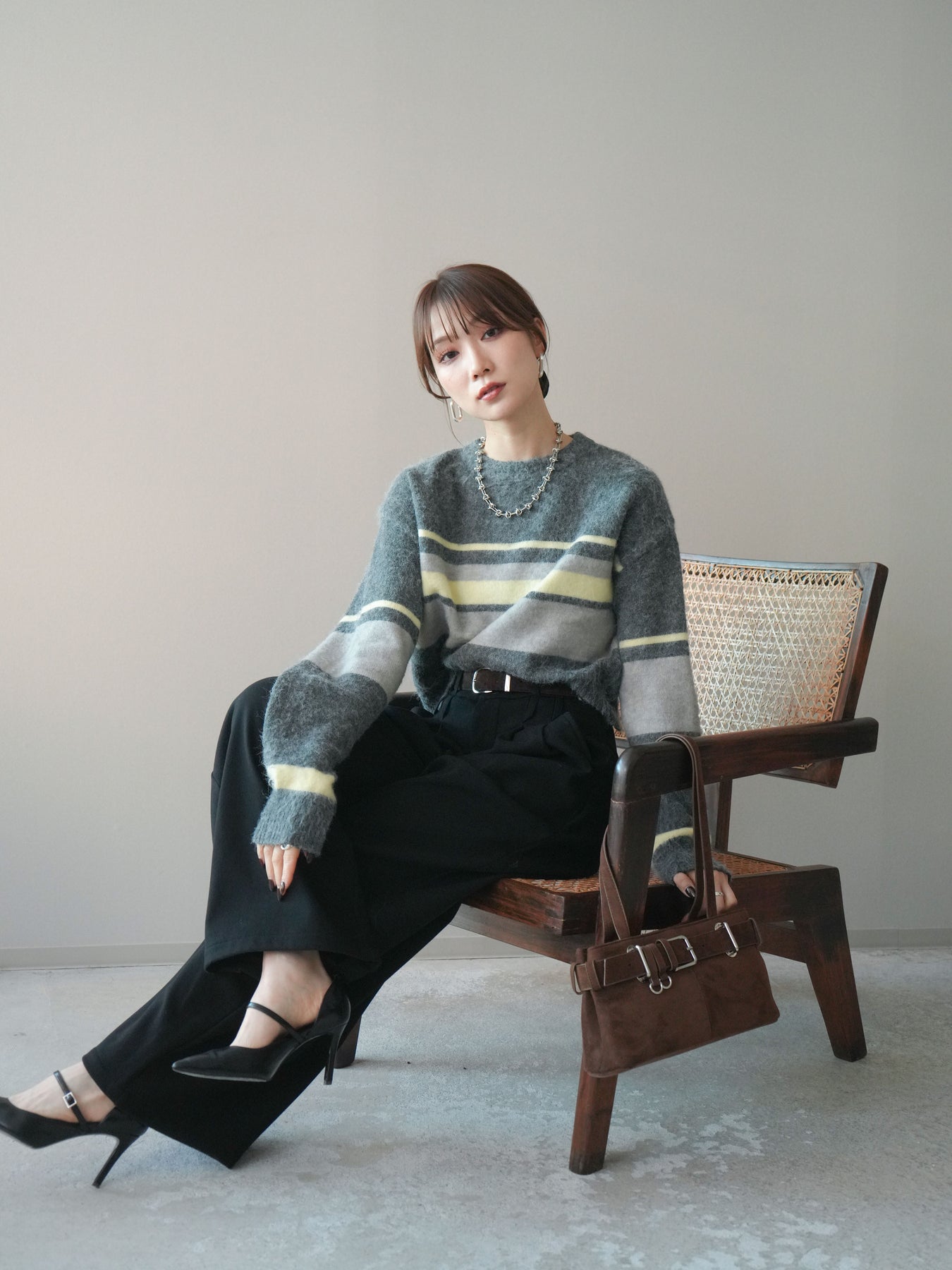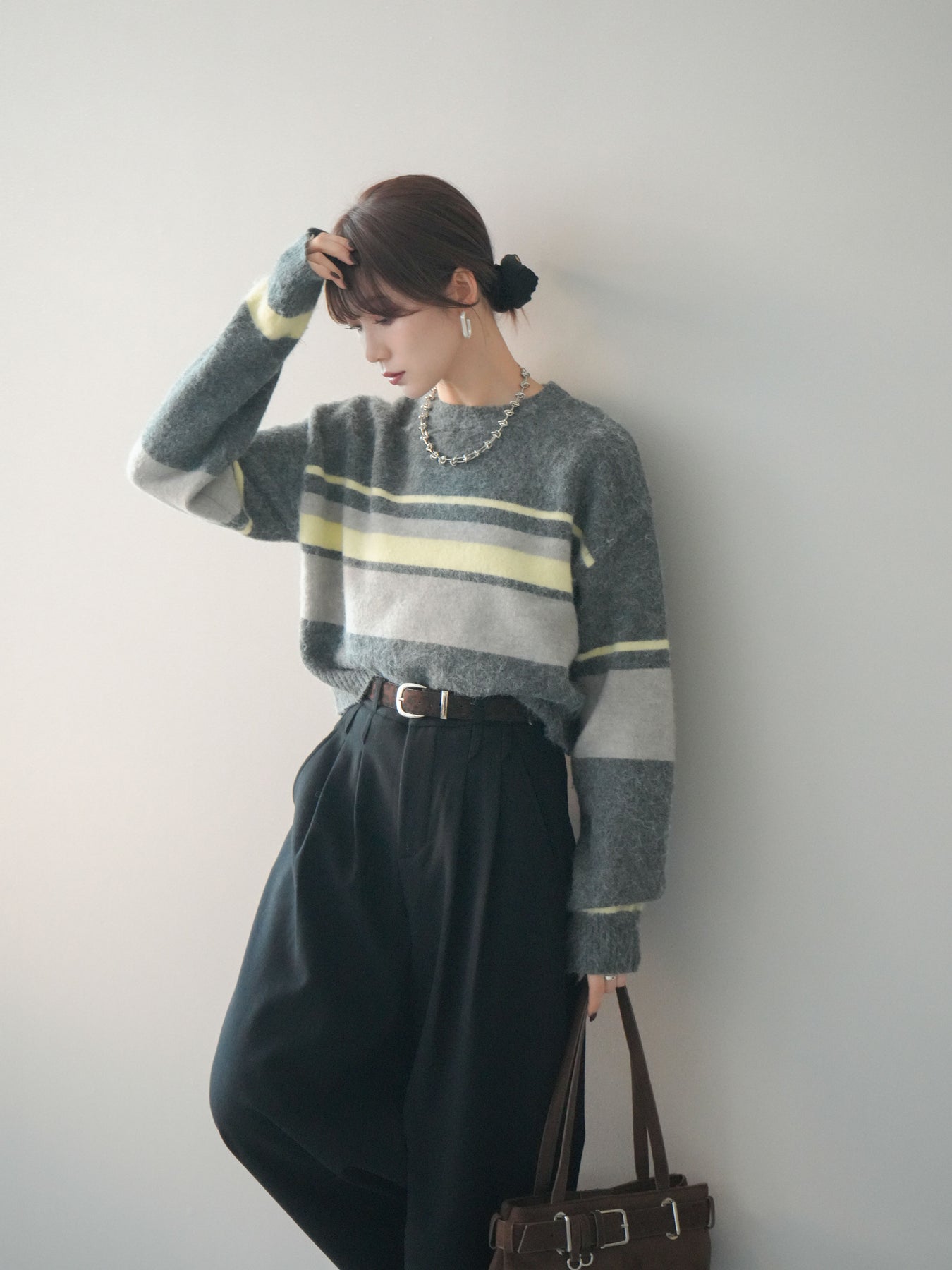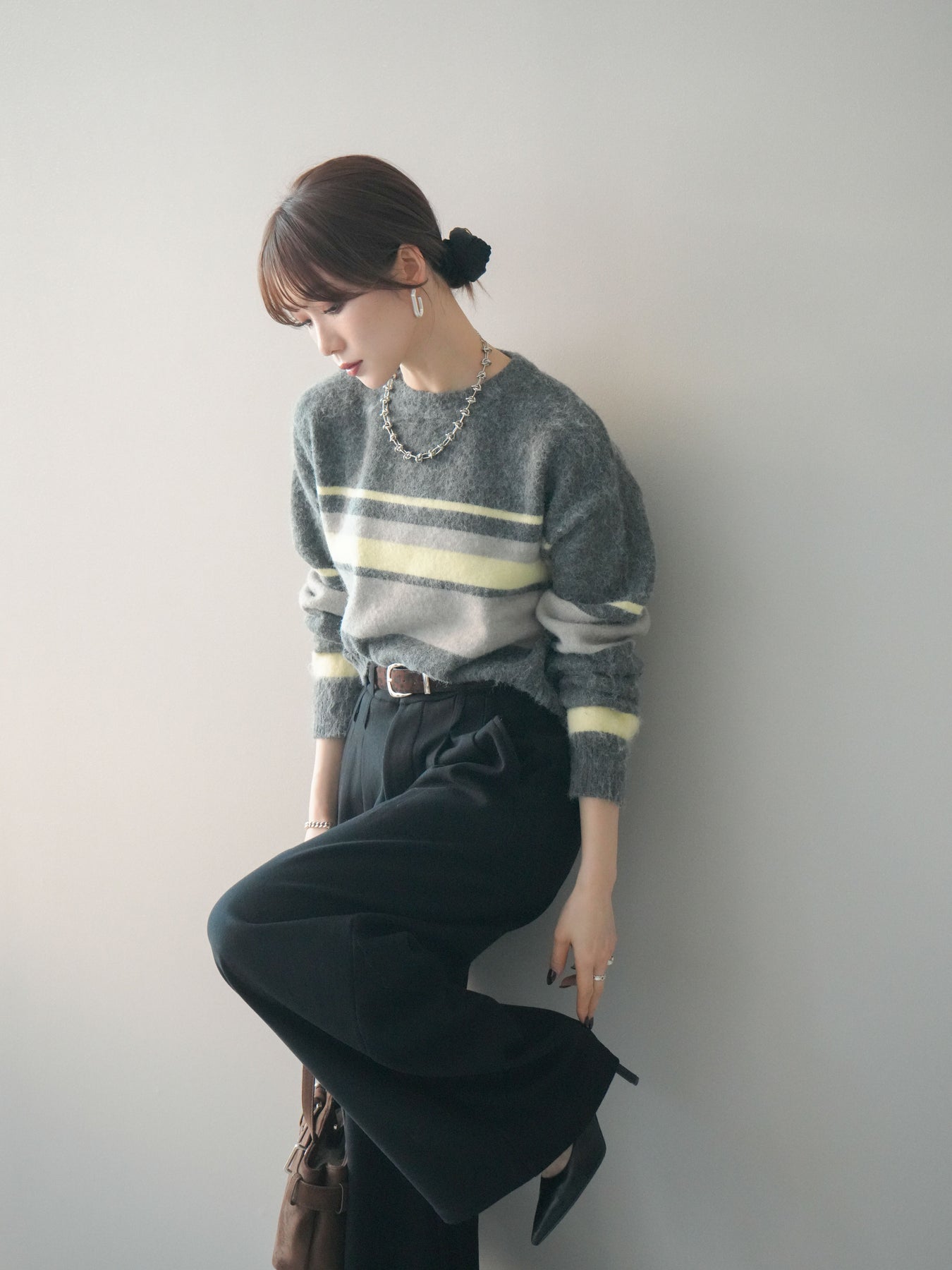 [予約]ソフトタッチボーダークロップドニットプルオーバー/charcoal