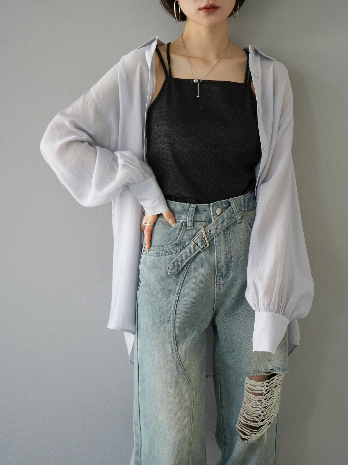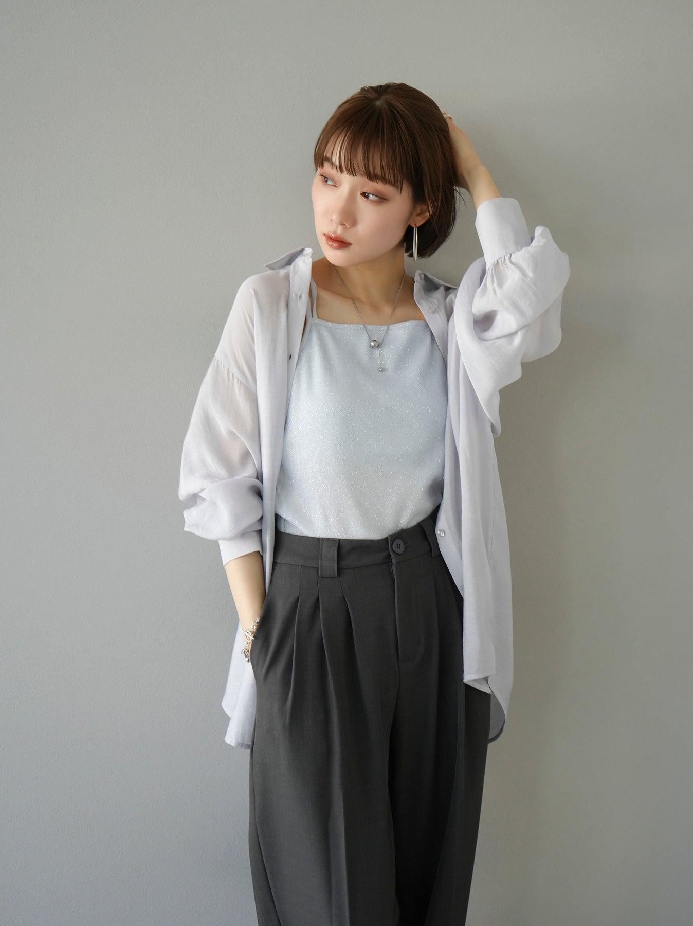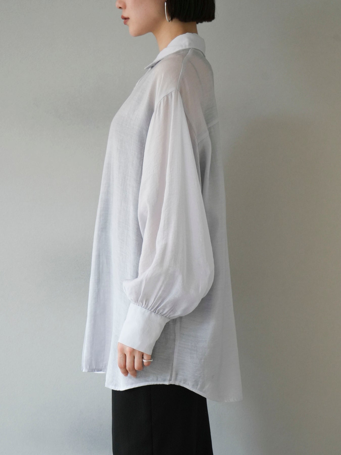 簡單的透明襯衫,寬鬆的袖子,襯托出你的女性氣質。除了舒適貼合肌膚的超大版型外,折返款式也提供舒適貼合感。它是百搭單品,可以整齊地穿著,也可以打開紐扣形成 V 領或拆掉領子,也可以用作罩衫。