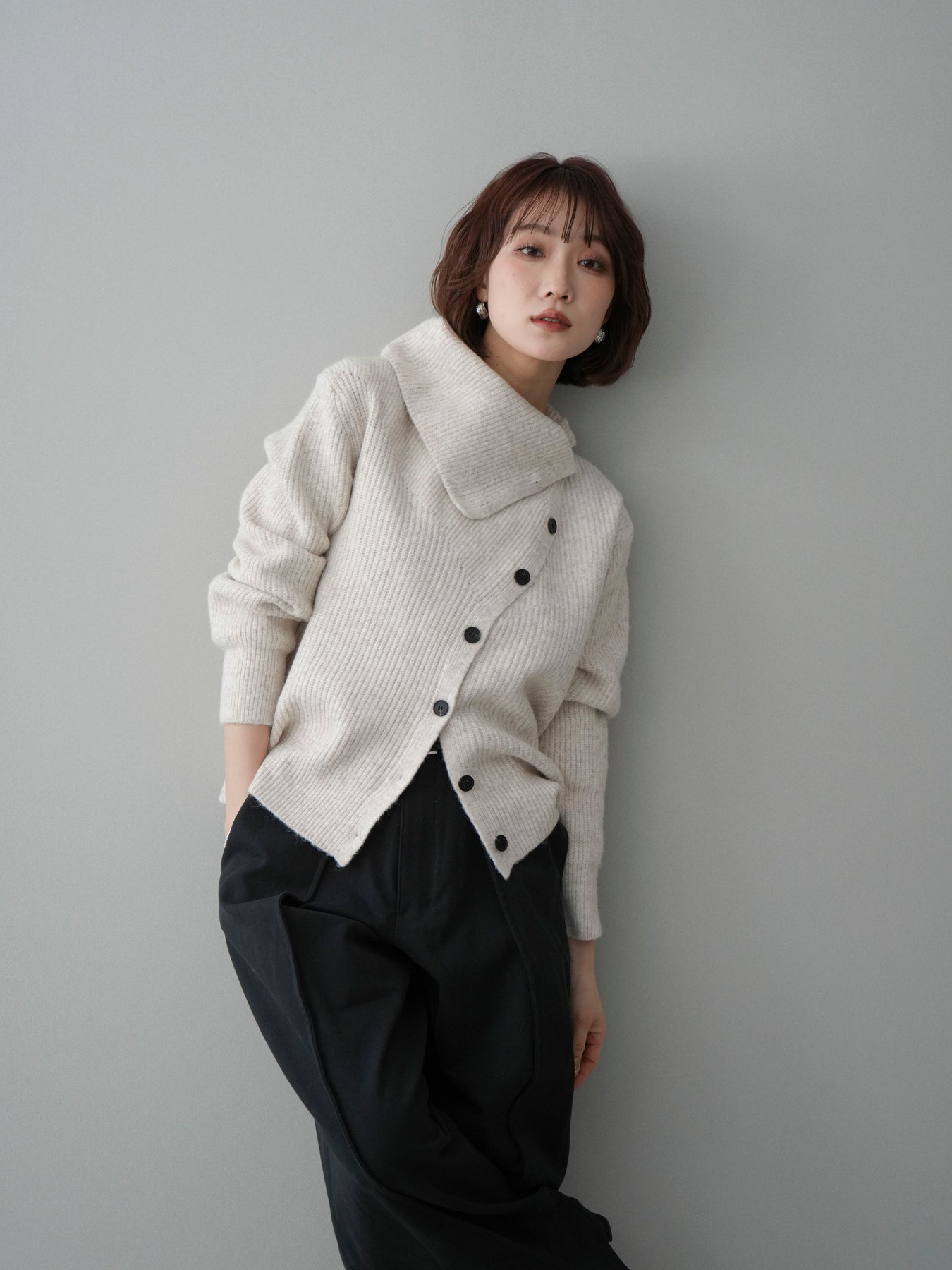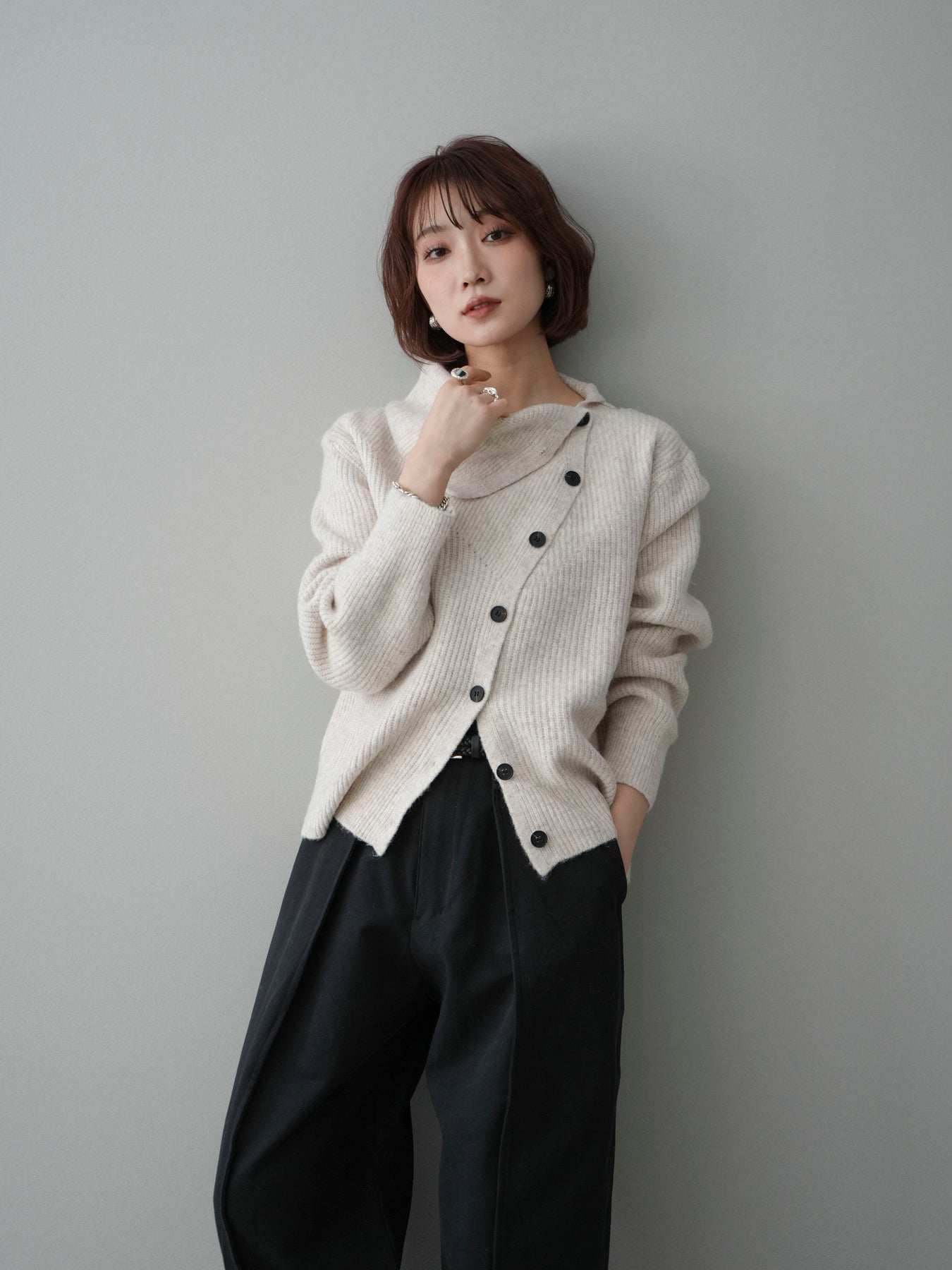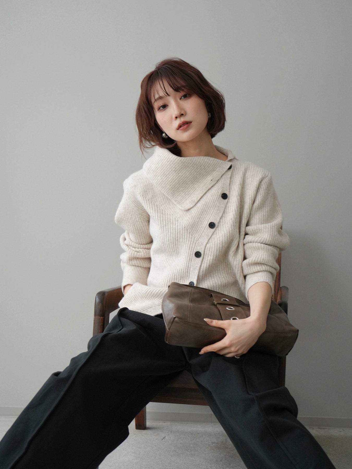 [予約]ハイネックデザインボタンニットカーディガン/ivory