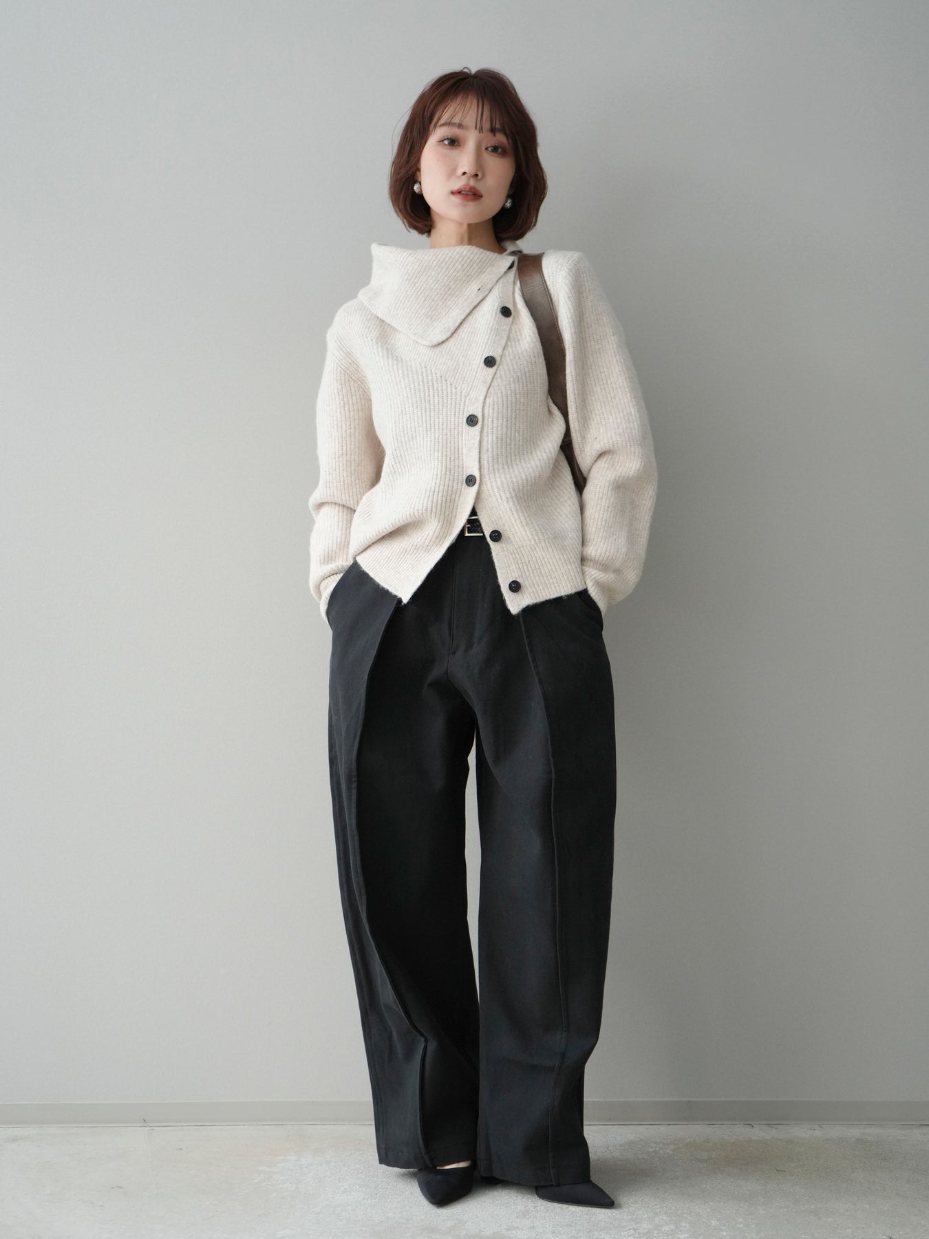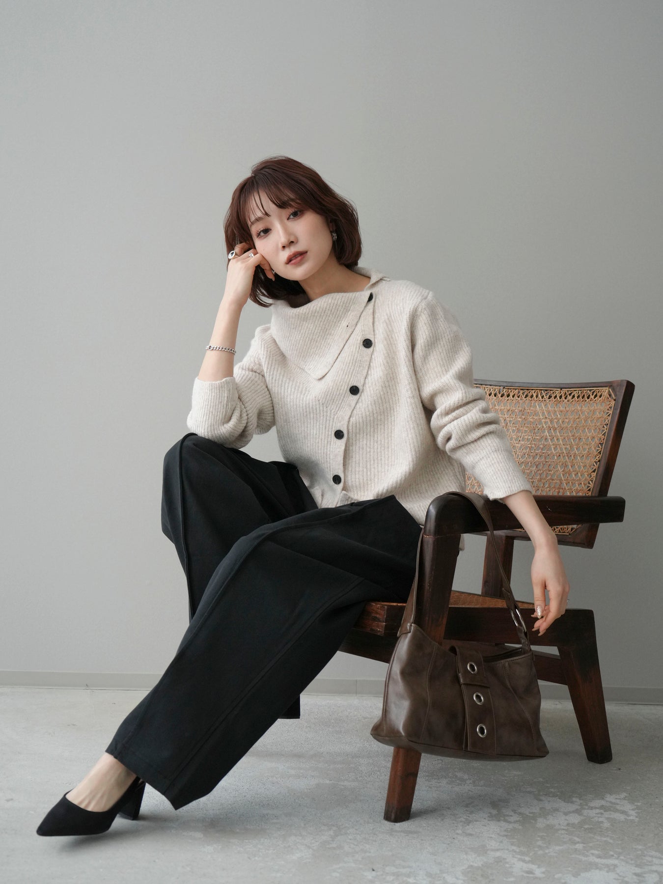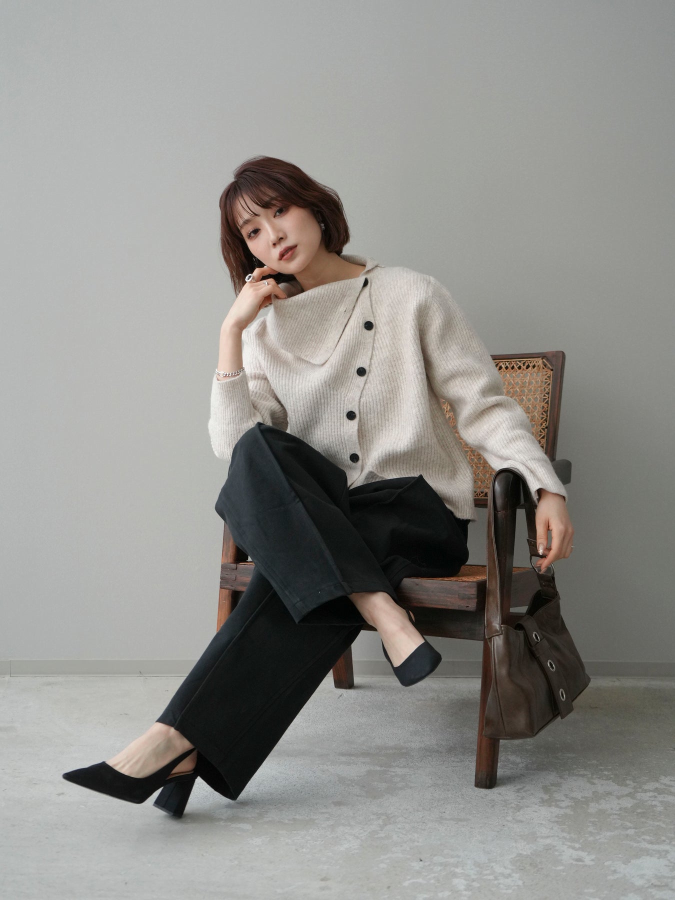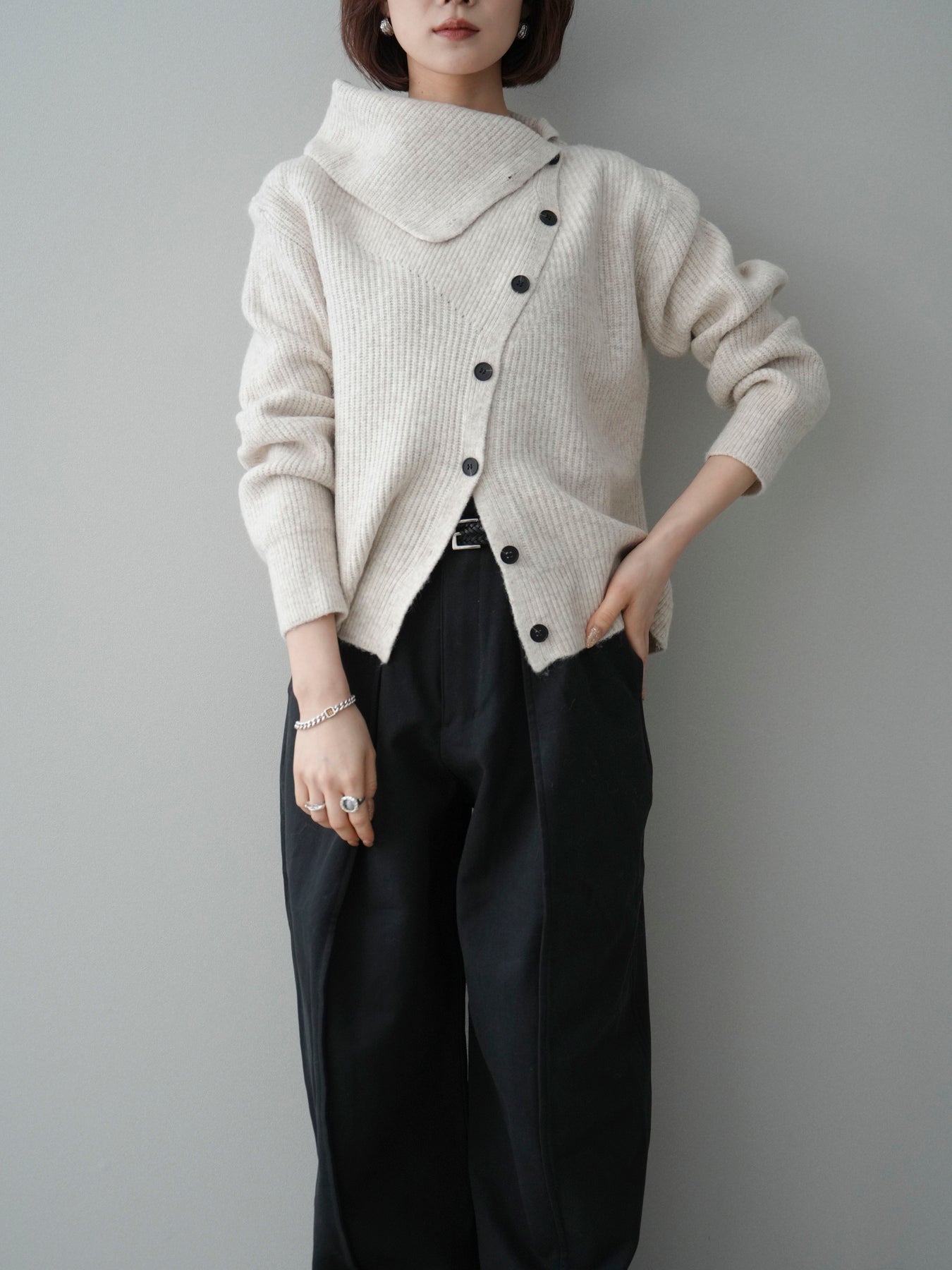 [予約]ハイネックデザインボタンニットカーディガン/ivory