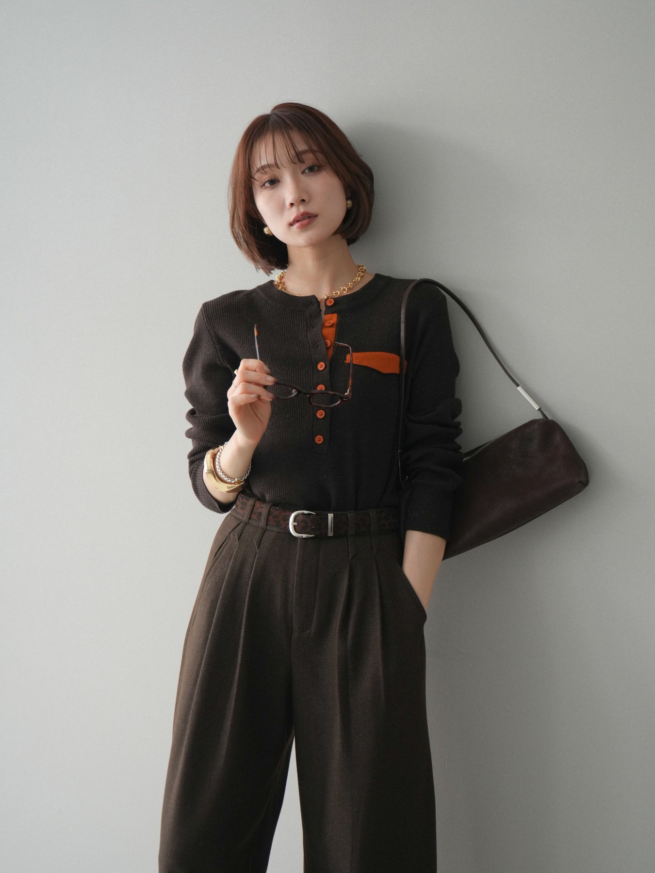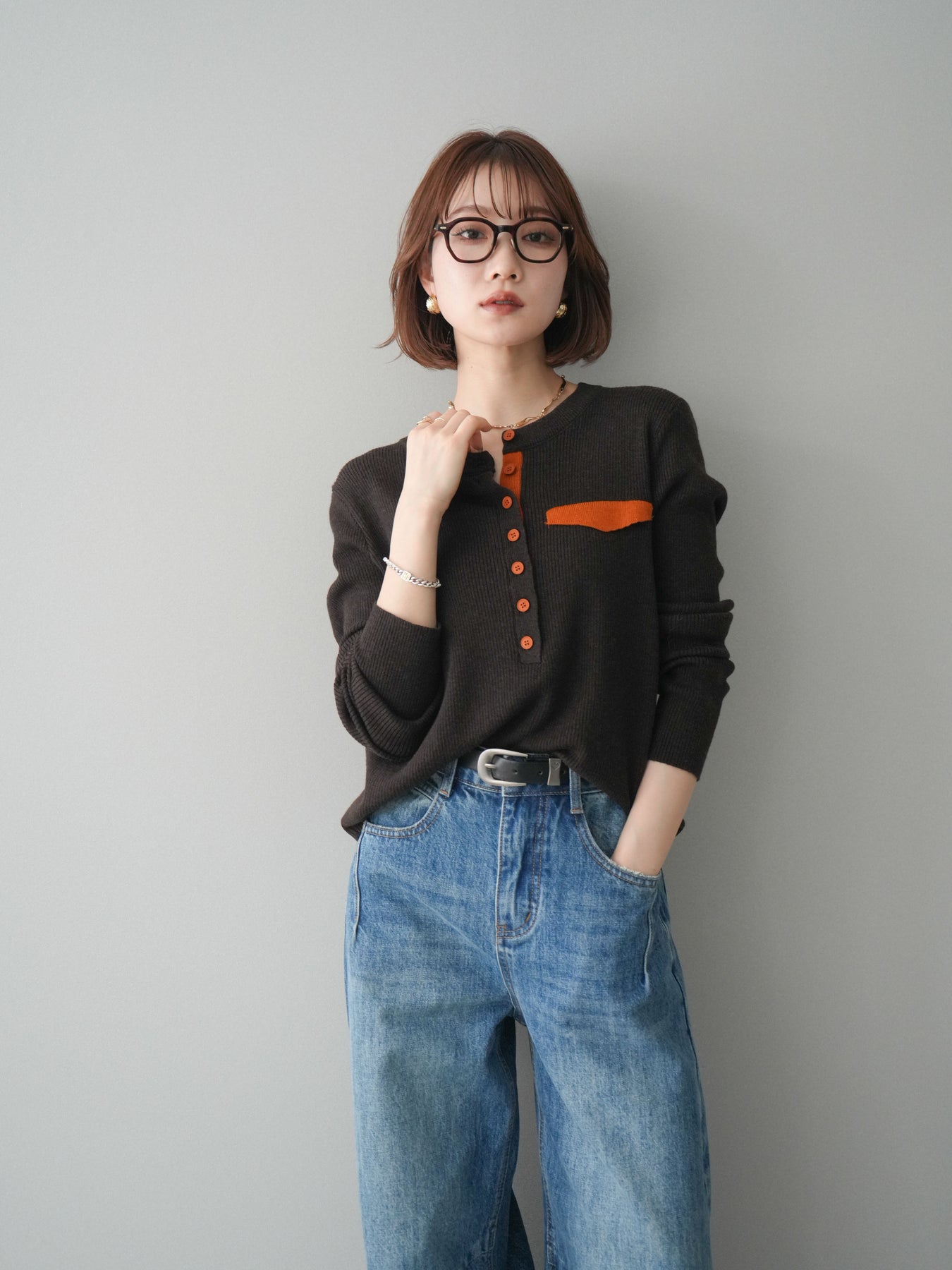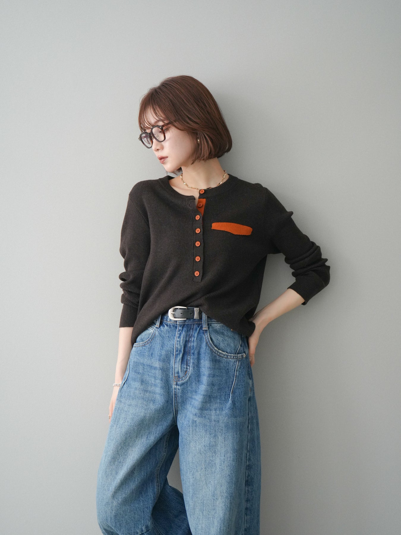 這款亨利領針織衫採用雙色設計,前襟扣環和胸袋均飾以撞色圖案。簡約的羅紋針織布料點綴著俏皮的細節,一件即可打造精緻優雅的造型。版型舒適貼身,展現優雅氣質。它也可作為外套或大衣的內搭,百搭實用,輕鬆融入您的日常穿搭。低調的配色使其成為您造型的點睛之筆,是成人休閒穿搭的理想之選。 *請注意,除下裝和吊帶背心(內衣)外,其他產品均不包含內衣。