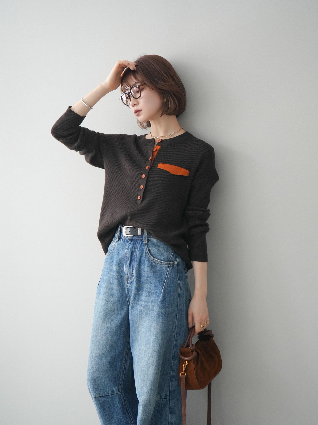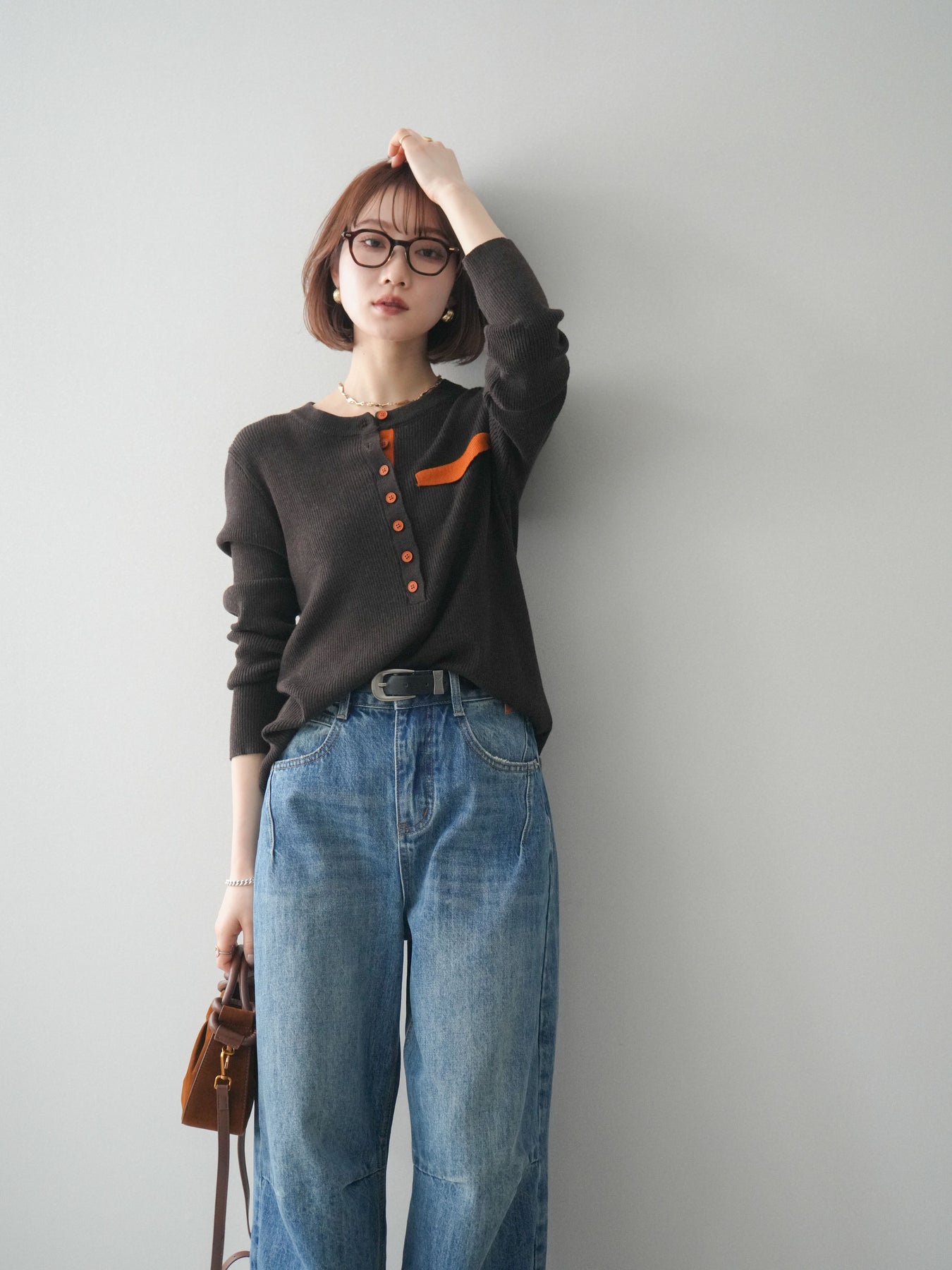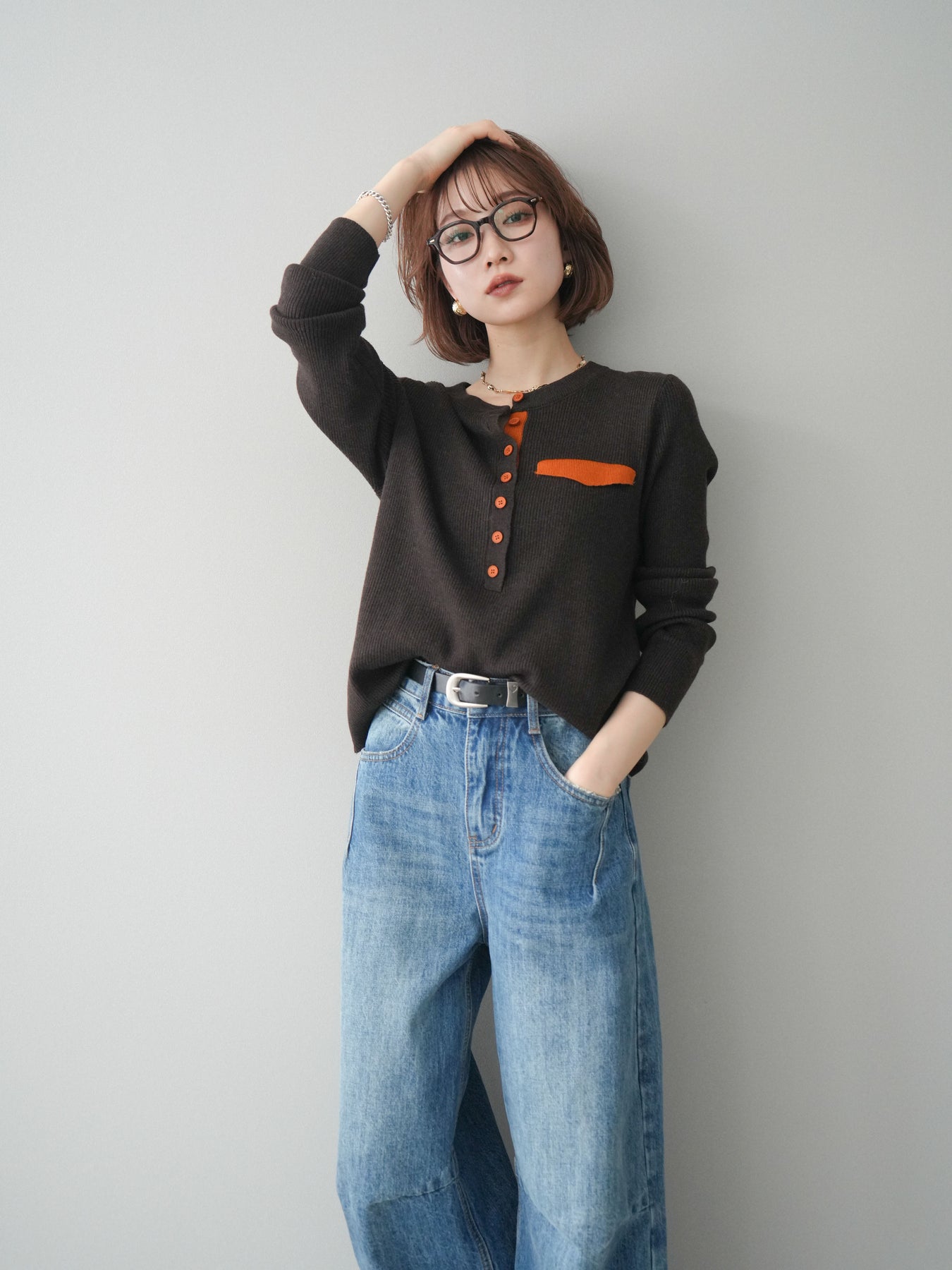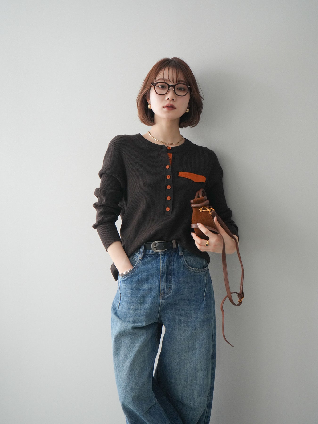 這款亨利領針織衫採用雙色設計,前襟扣環和胸袋均飾以撞色圖案。簡約的羅紋針織布料點綴著俏皮的細節,一件即可打造精緻優雅的造型。版型舒適貼身,展現優雅氣質。它也可作為外套或大衣的內搭,百搭實用,輕鬆融入您的日常穿搭。低調的配色使其成為您造型的點睛之筆,是成人休閒穿搭的理想之選。 *請注意,除下裝和吊帶背心(內衣)外,其他產品均不包含內衣。
