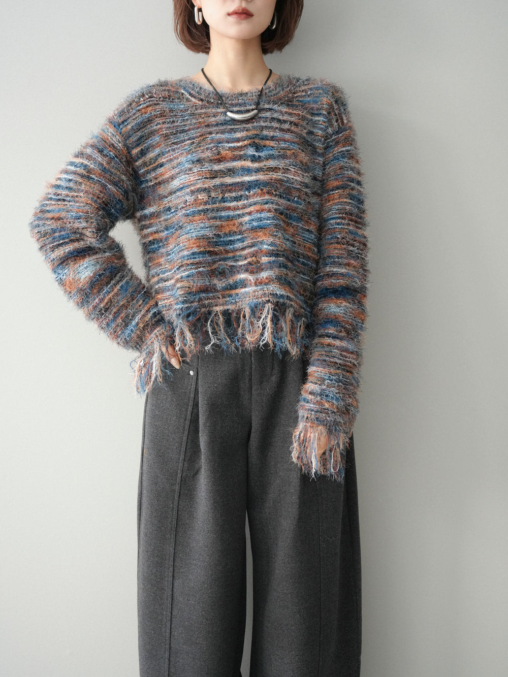 [予約]裾フリンジミックスヤーンシャギープルオーバー/blue