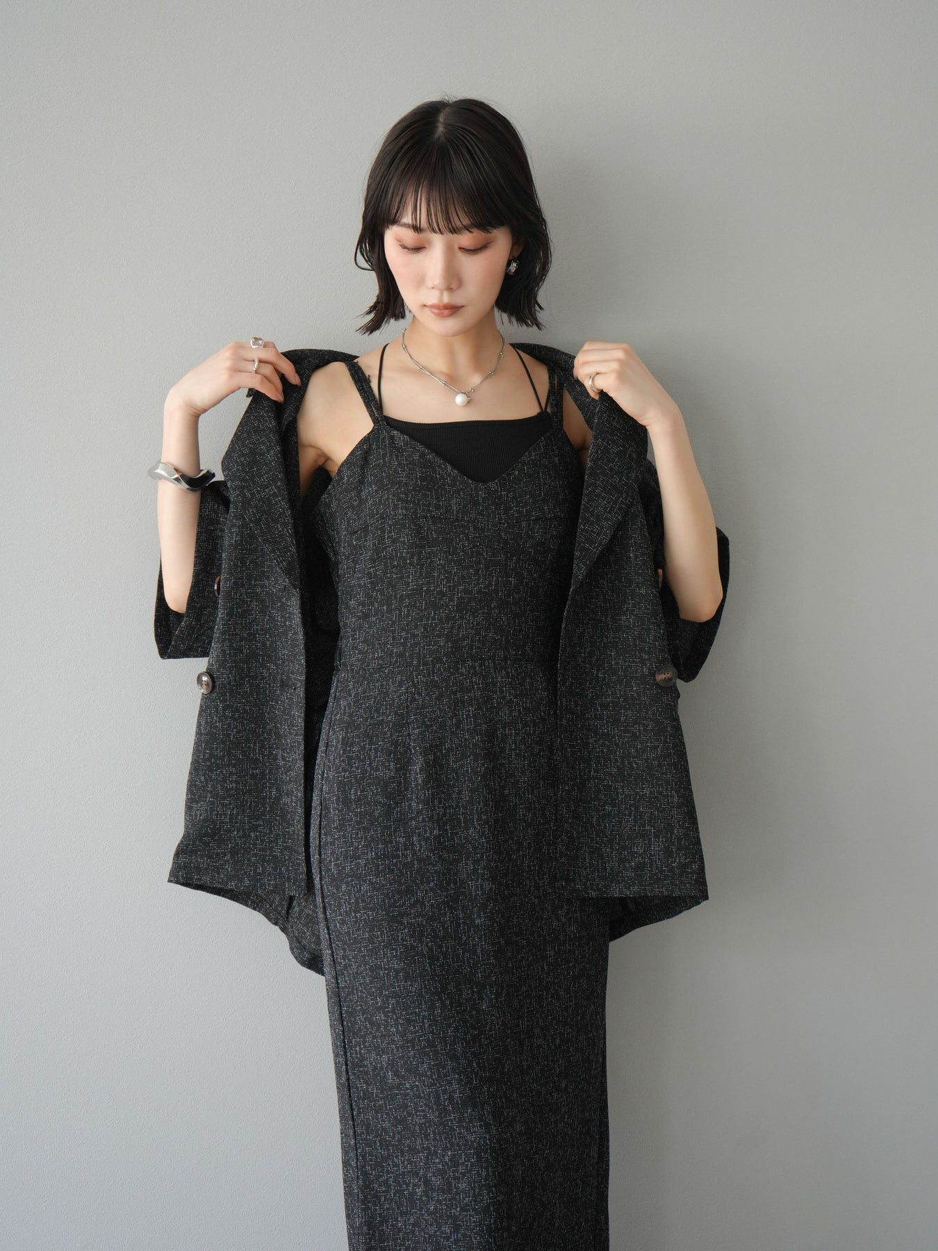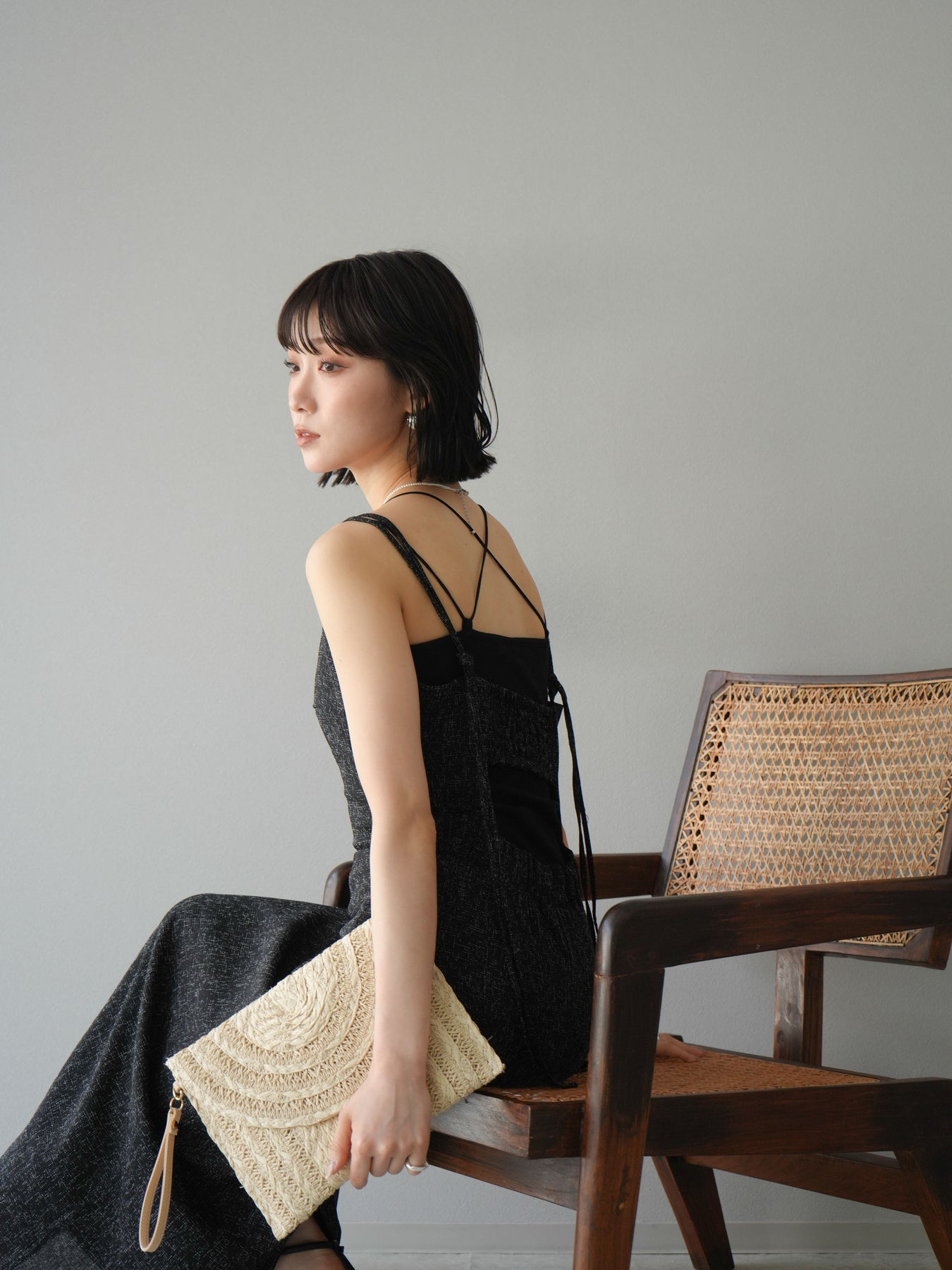 [預購] 夏季粗花呢露背吊帶洋裝/黑色