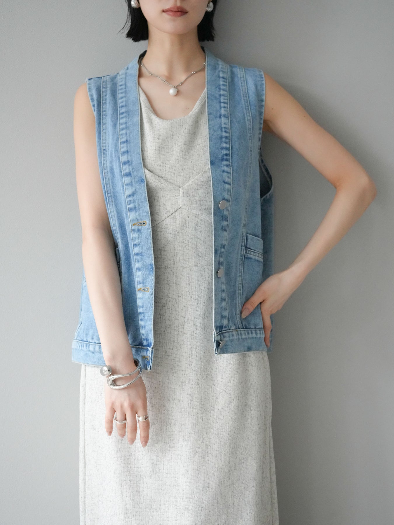 這款吊帶背心洋裝採用清涼的夏季粗花呢布料製成。優雅的外觀和輕盈的舒適感,讓它成為一件簡約卻又吸睛的單品。其設計讓您盡情享受層疊穿搭的樂趣,搭配夾克或開襟衫既能打造幹練的造型,又能打造輕鬆隨興的休閒造型。這是一款百搭單品,能為季節增添活力。 ※除下裝、吊帶背心(內衣)以外的商品均為標準品,不含內衣。
