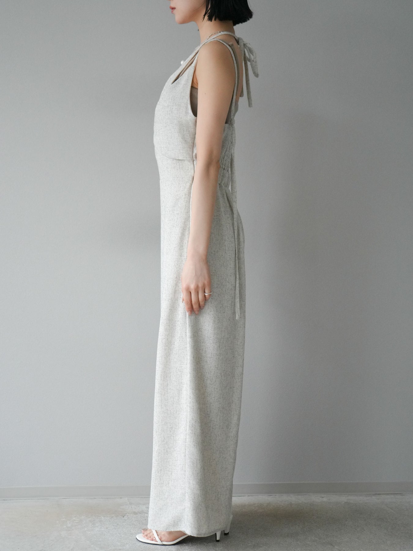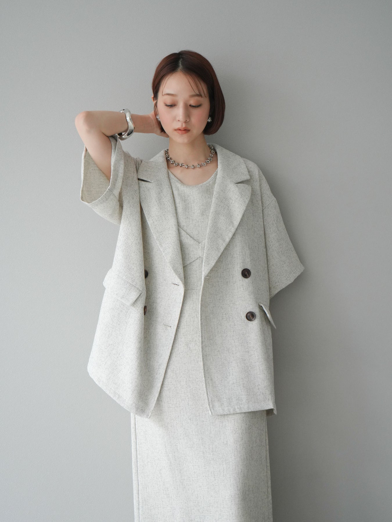 [預購] 夏季粗花呢層疊吊帶洋裝/象牙白