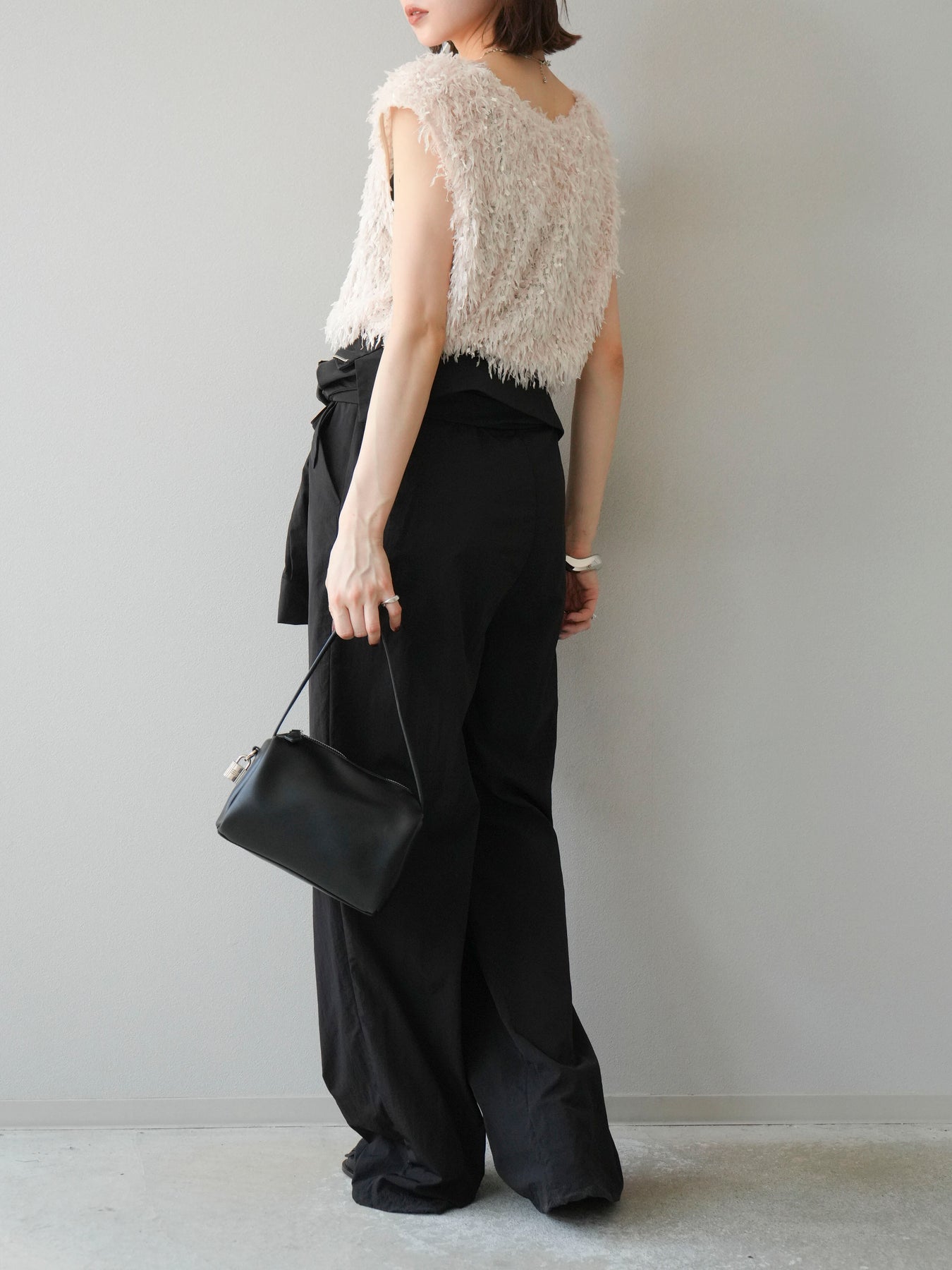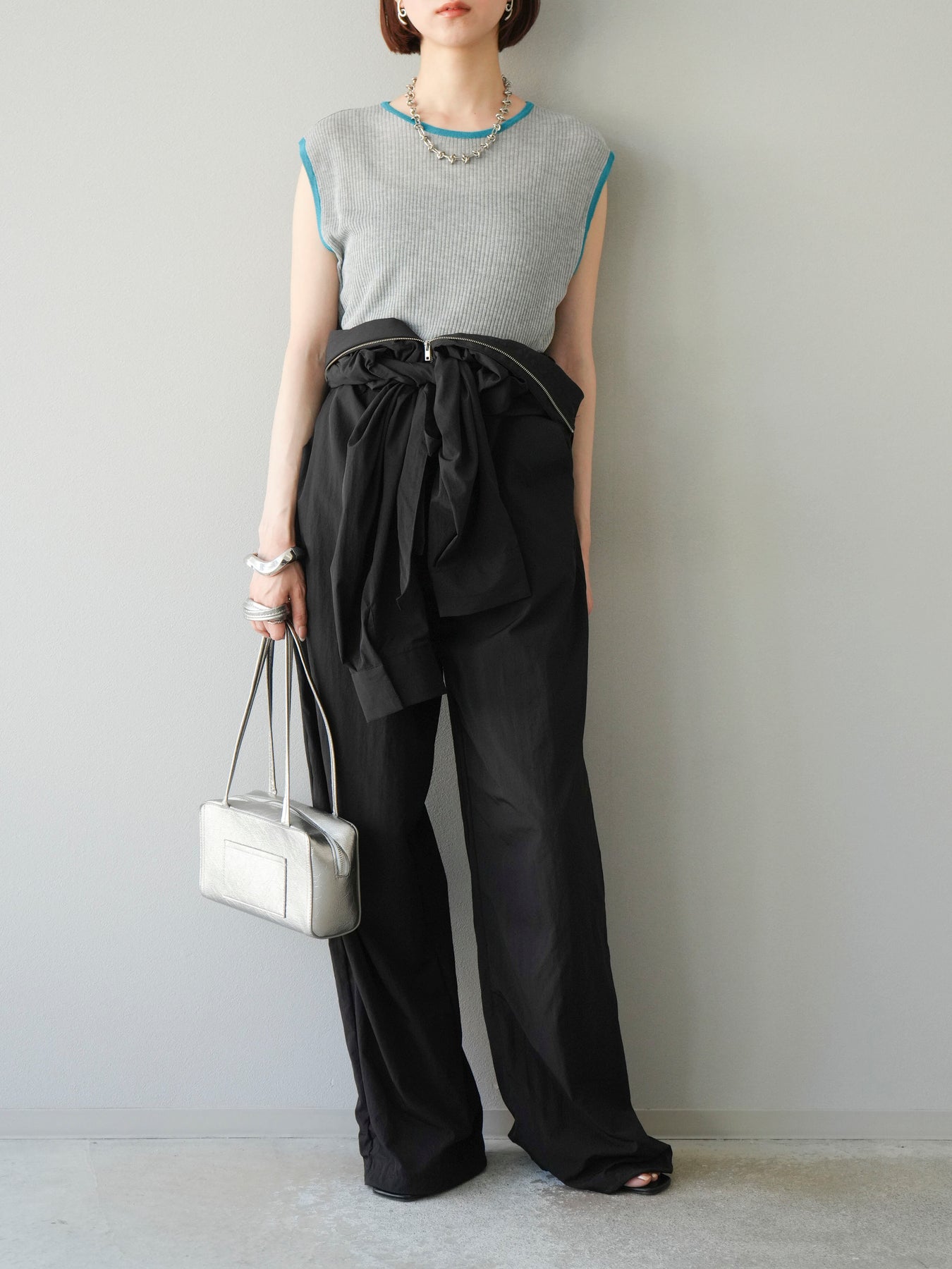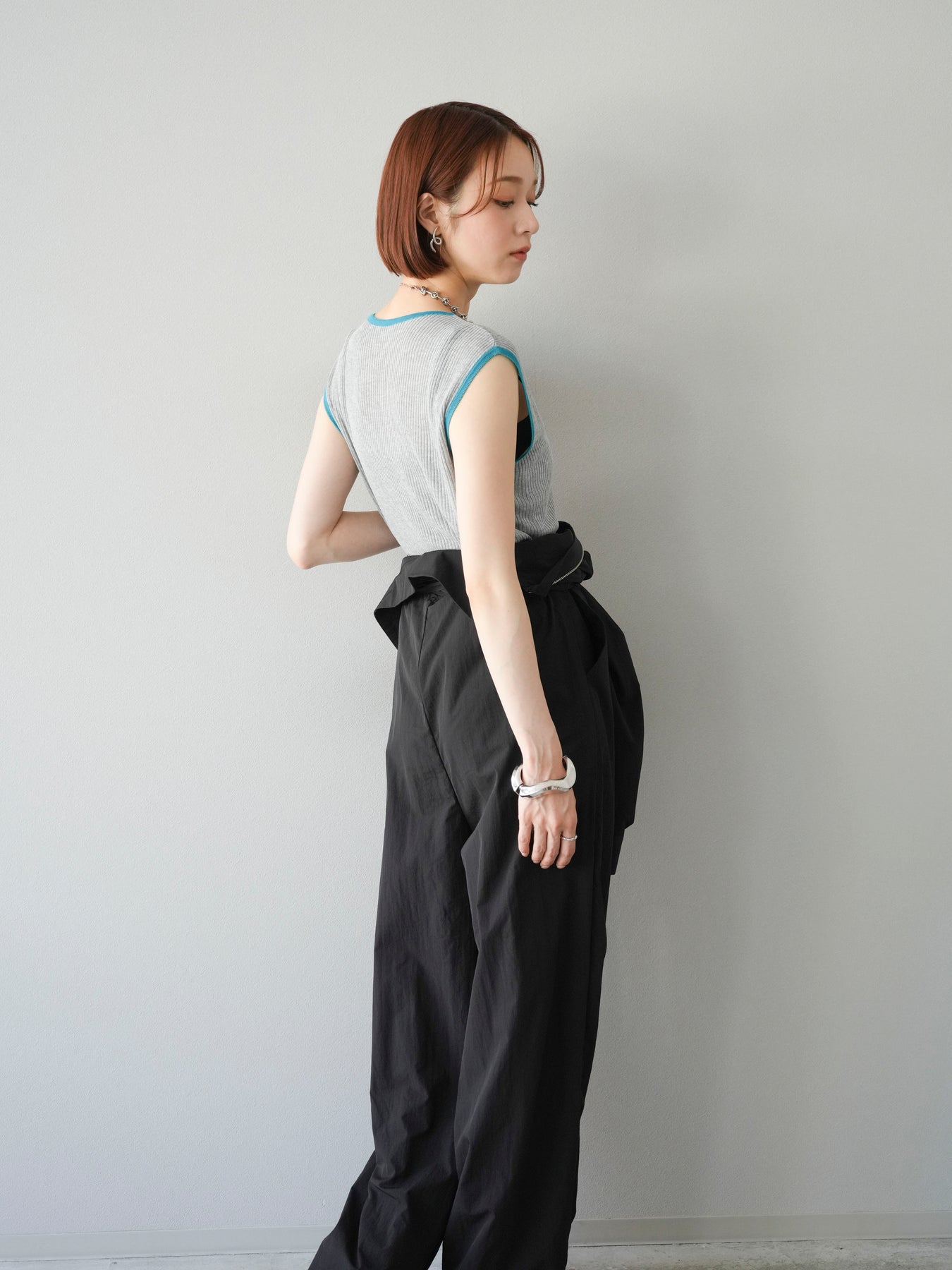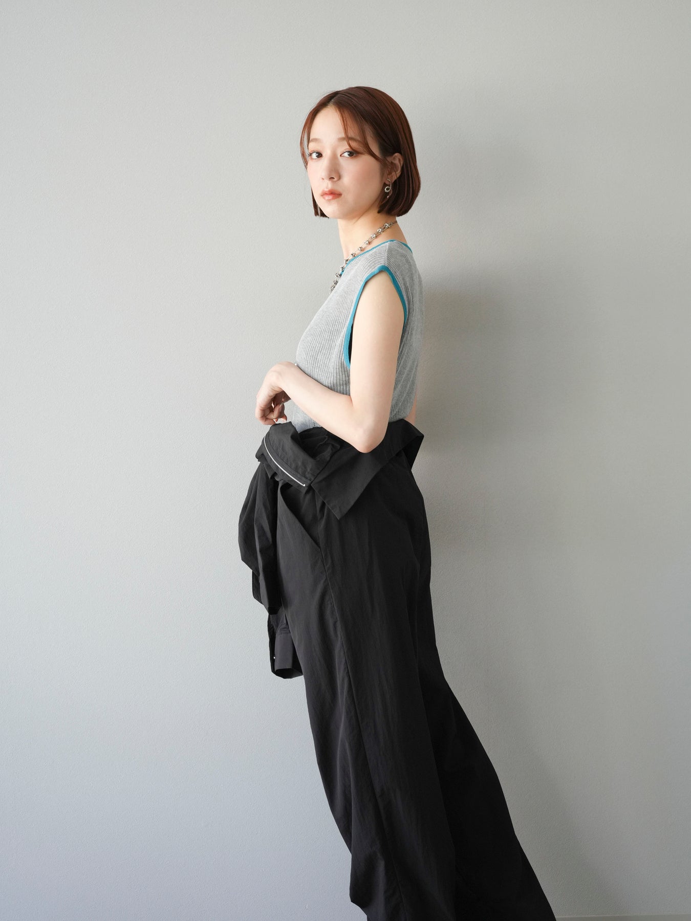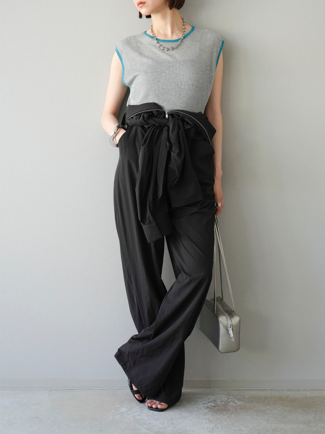 ミニマルなデザインとモード感を兼ね備えたナイロン素材のジャンプスーツ。 軽くしなやかな風合いで、ワイドなシルエットがこなれた印象を与えてくれます。 ウエストの共布ベルトでシルエットの調整も可能。 1枚でサマになる主役アイテムとして、デイリーにも旅行やお出かけにも活躍します。