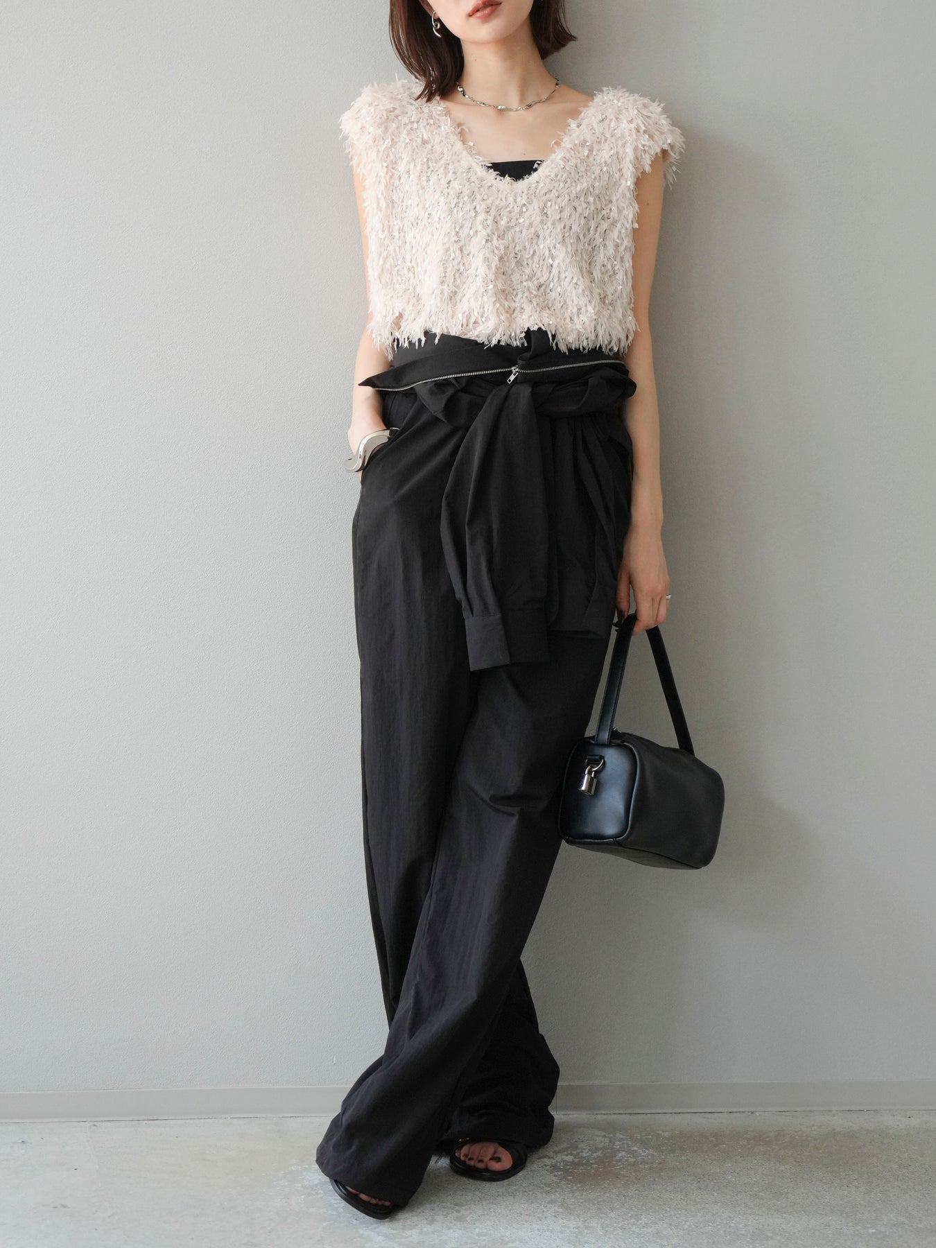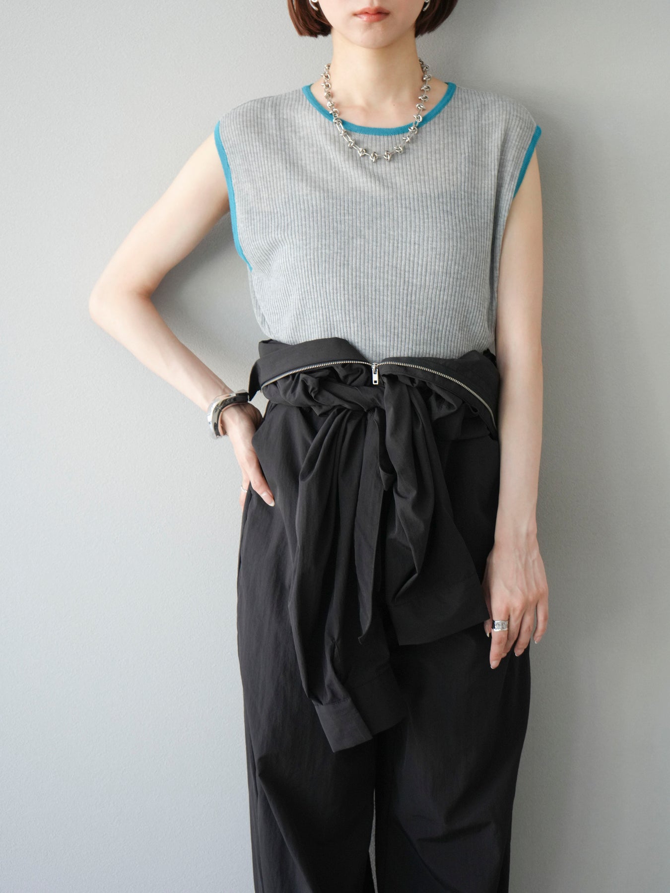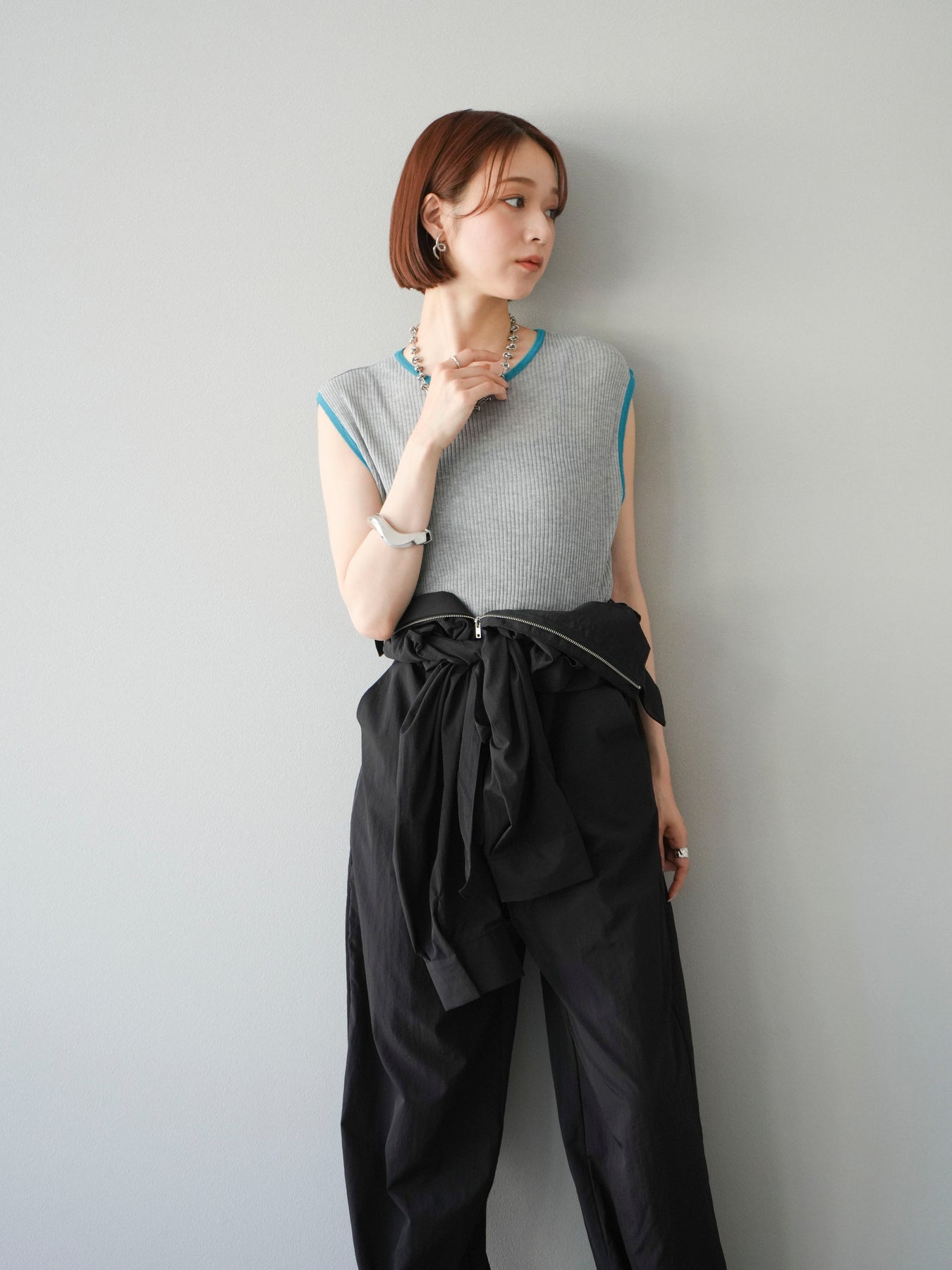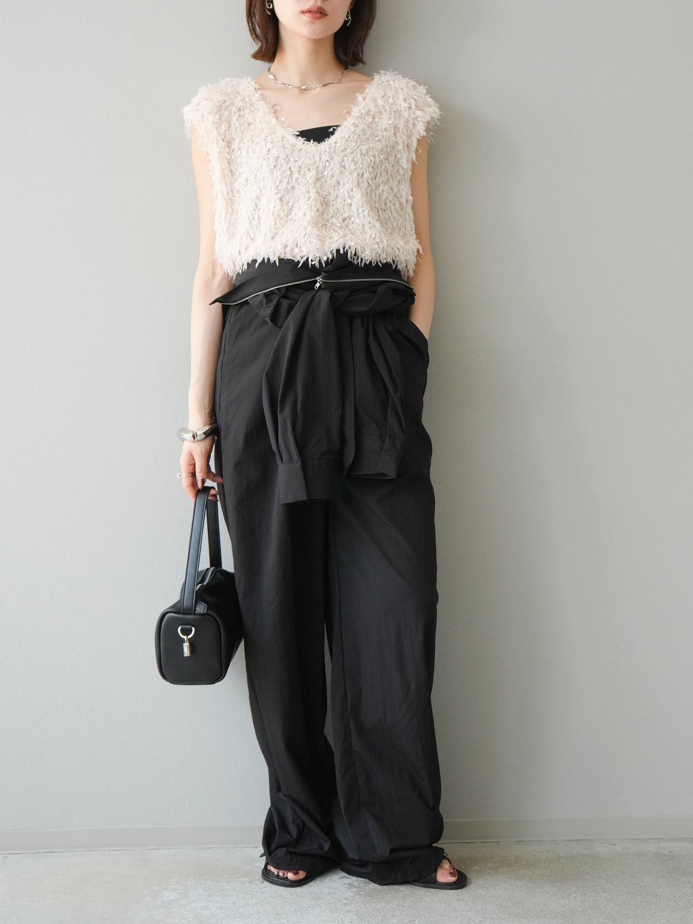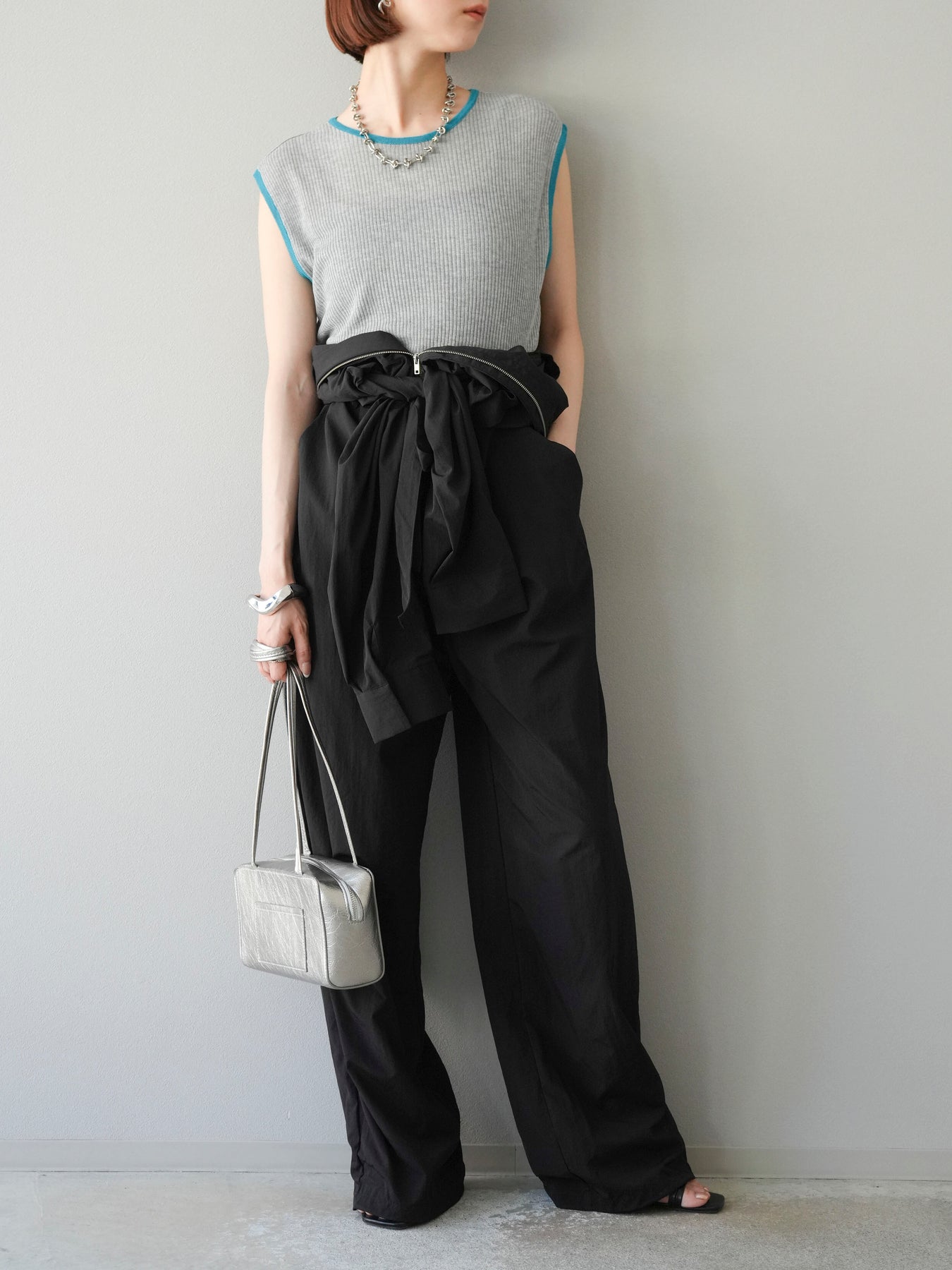 ミニマルなデザインとモード感を兼ね備えたナイロン素材のジャンプスーツ。 軽くしなやかな風合いで、ワイドなシルエットがこなれた印象を与えてくれます。 ウエストの共布ベルトでシルエットの調整も可能。 1枚でサマになる主役アイテムとして、デイリーにも旅行やお出かけにも活躍します。